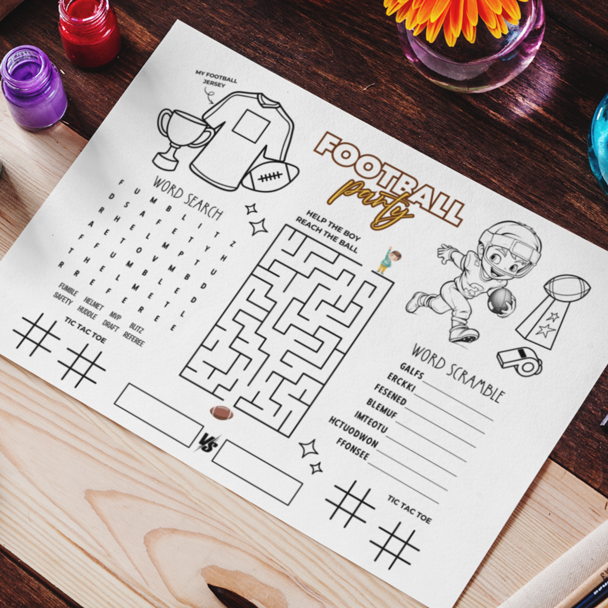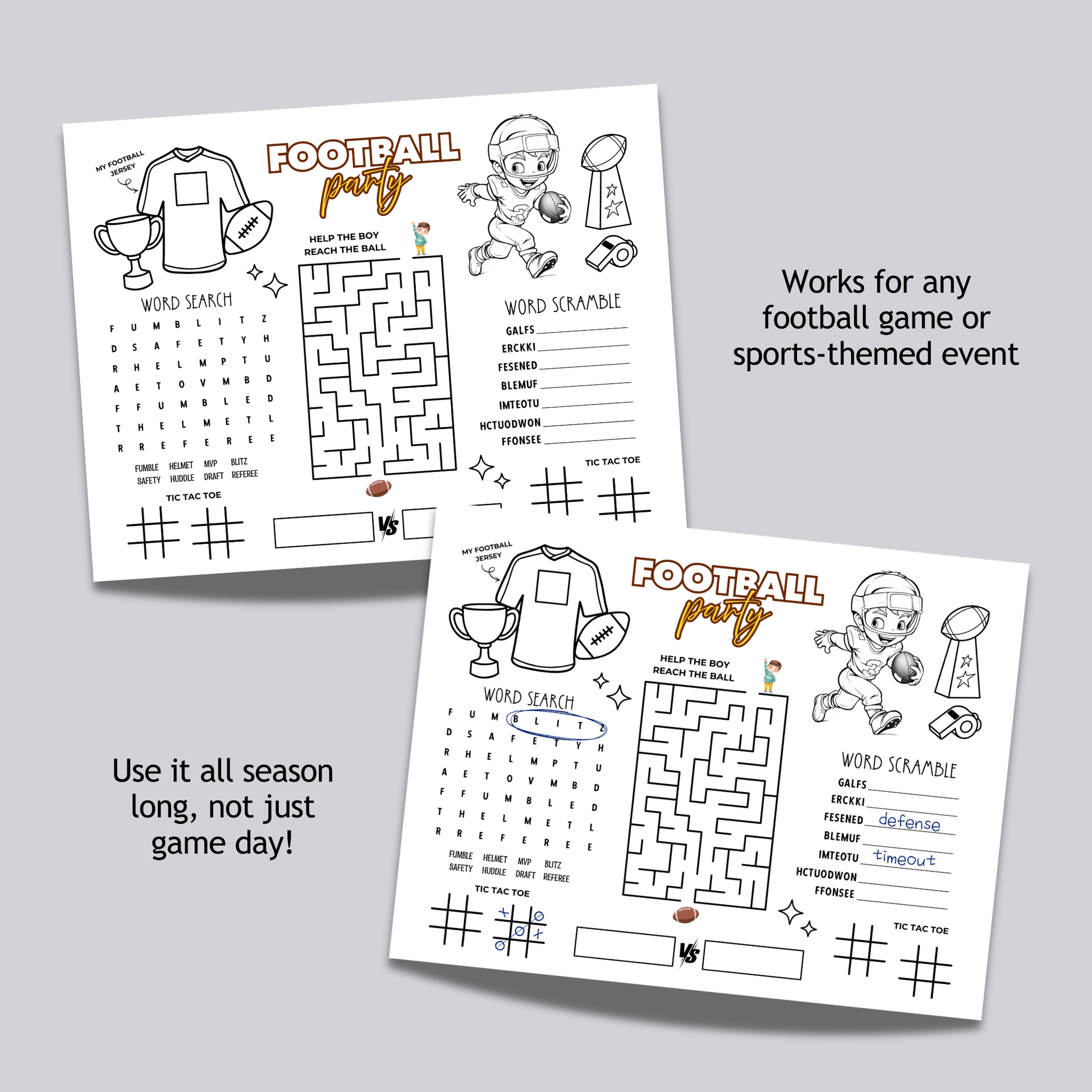 Perfect for kidsâ football parties, classroom activities, birthday celebrations, team parties, or family game day, this printable also makes a great party favor or table activity. Instant download means you can print as many as you need, simple, affordable, and stress-free. âš