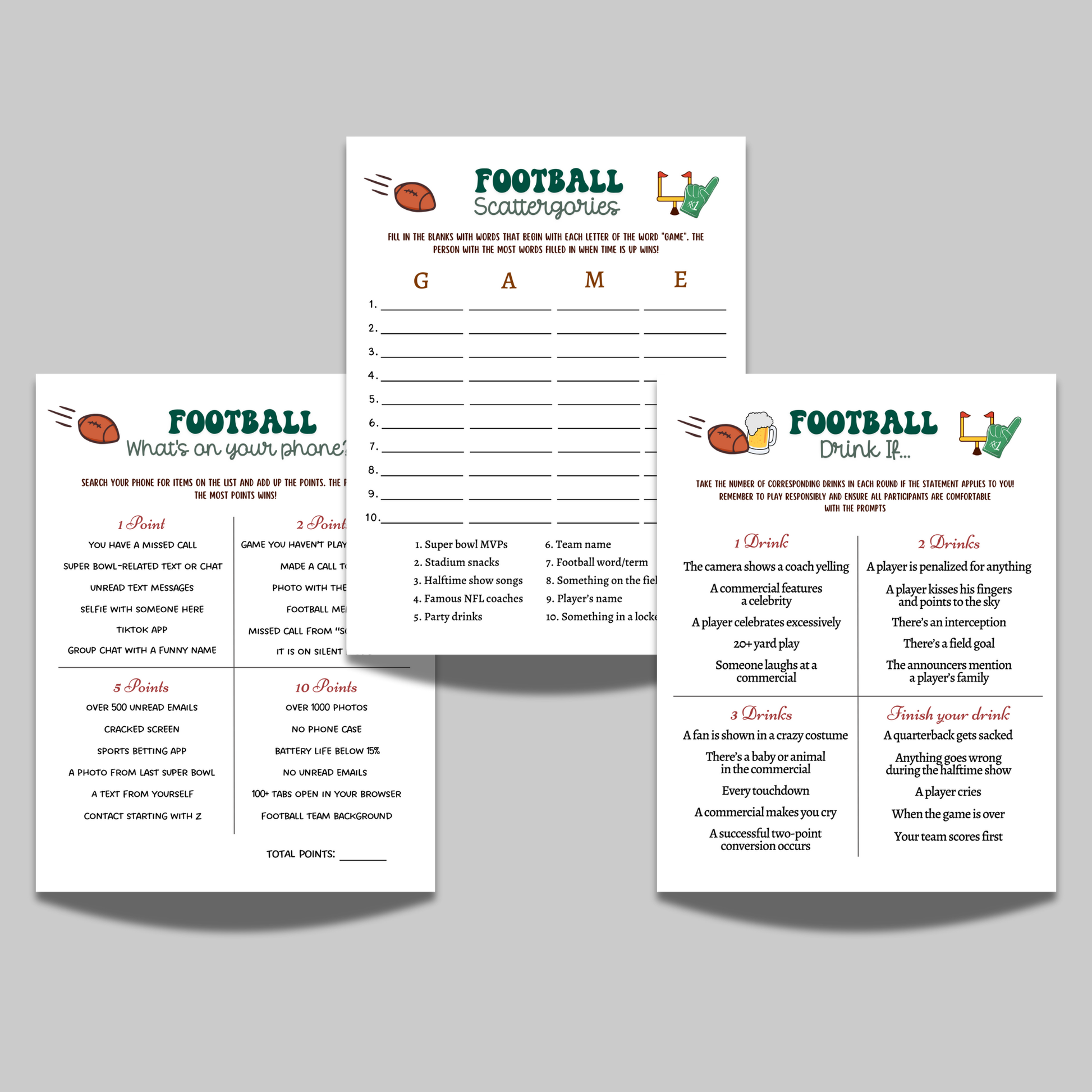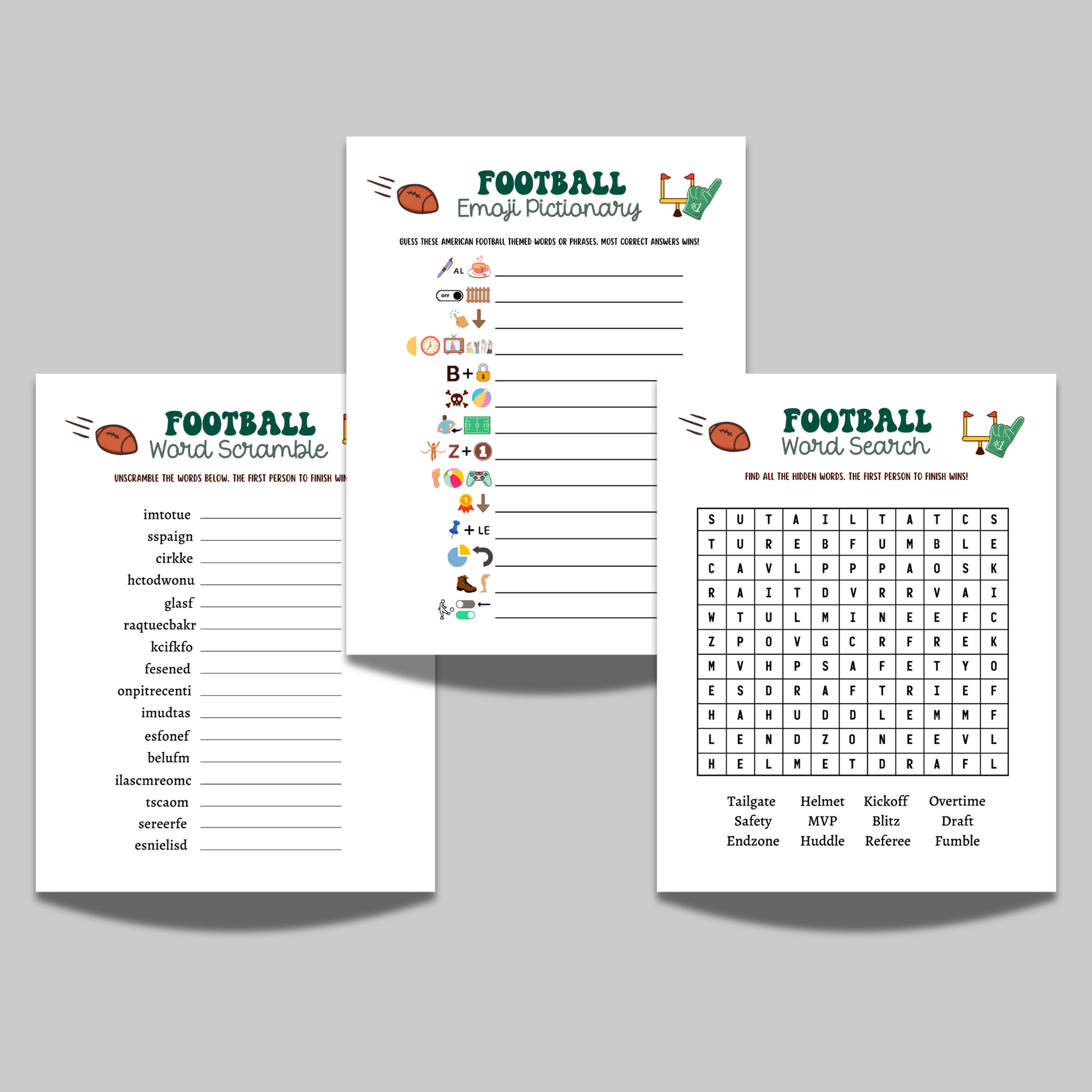 Football Party Games Bundle | 2025 Super Bowl Printable Games | The Big Game Tailgate Family Ideas Group Fantasy Fun Activities for Kids & Adults