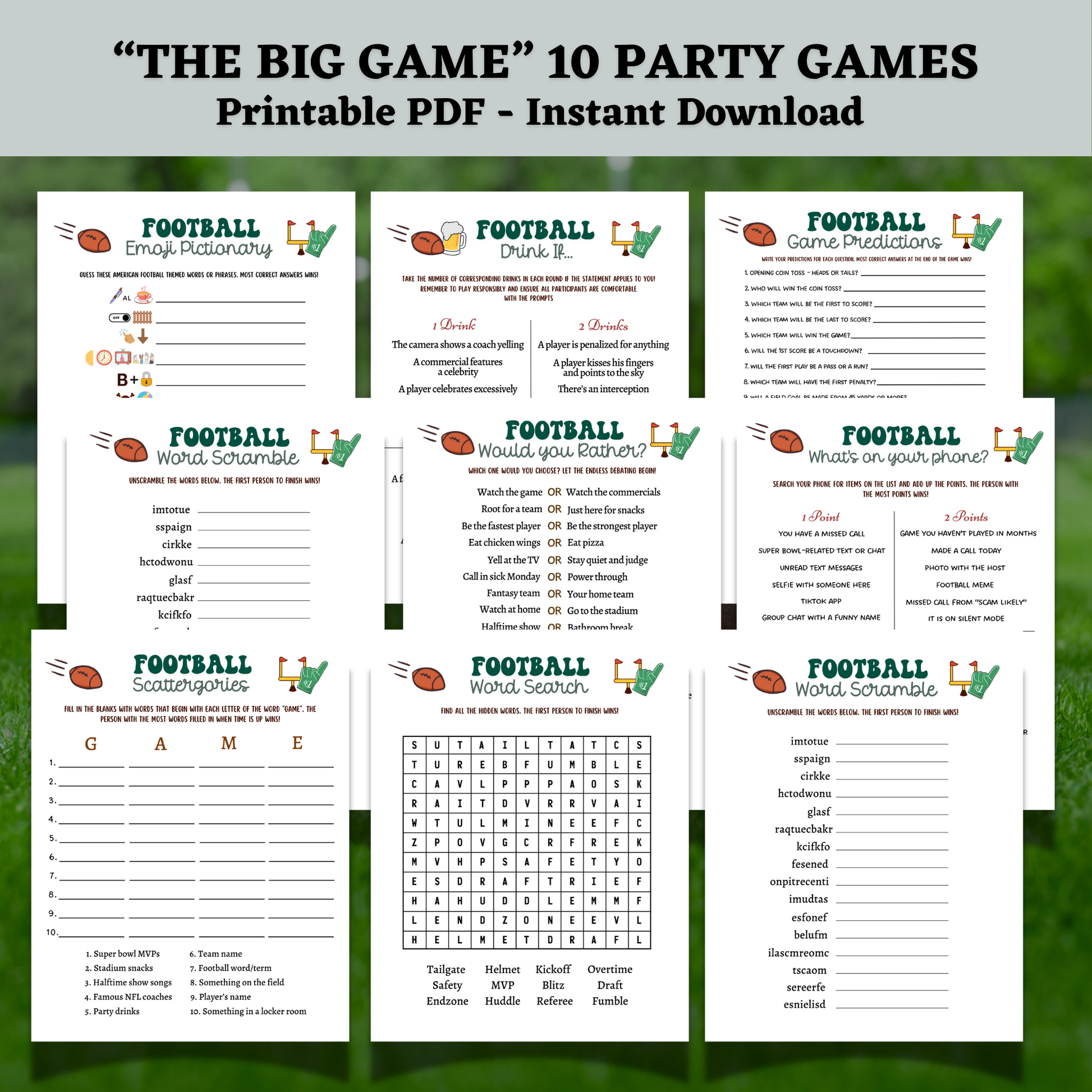 Football Party Games Bundle Printable, 2025 Big Game Super Sunday Activity