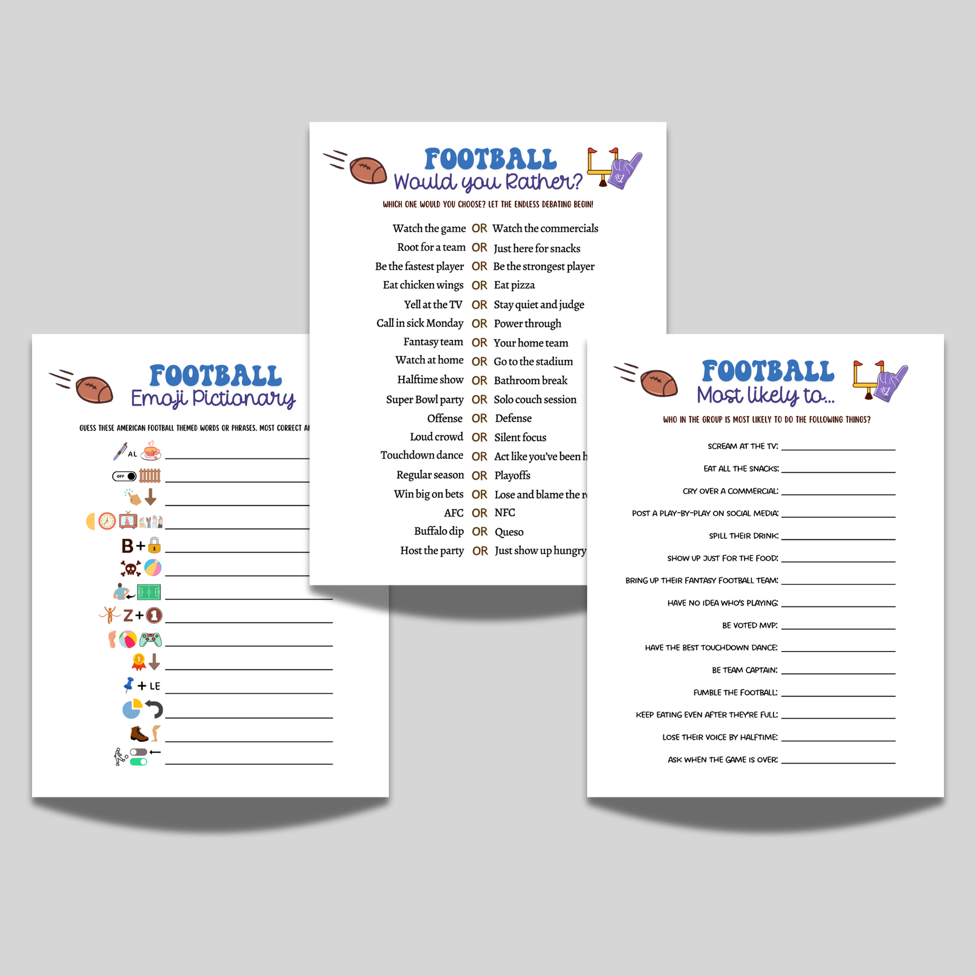 Football Party Games Bundle | 2026 Super Bowl Fun Printable Games | Big Game Tailgate Activities for Kids & Adults