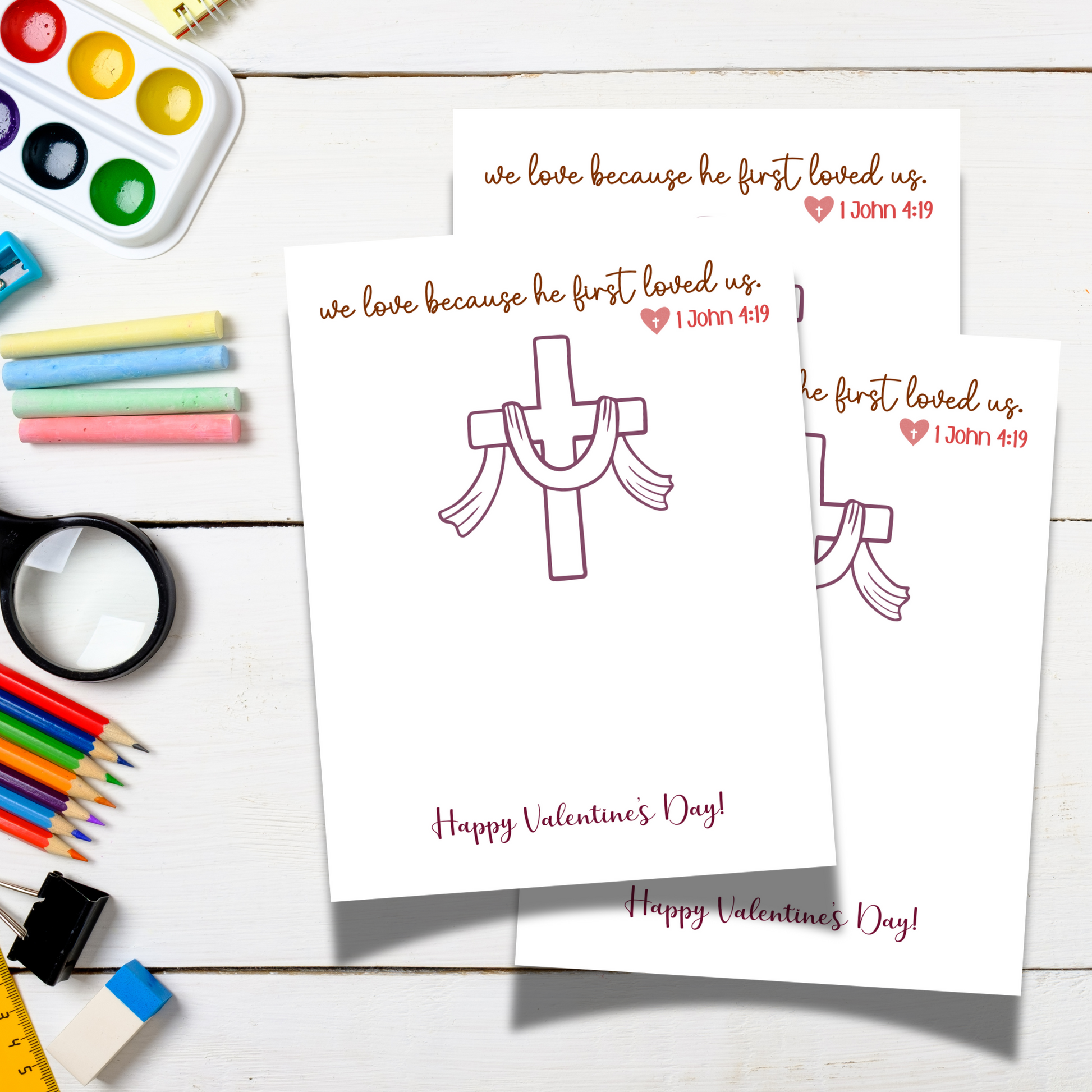 Featuring the Bible verse “We love because He first loved us" 1 John 4:19, it creates a meaningful keepsake and adorable piece of art. Write the child’s name at the bottom or back for a personal keepsake.