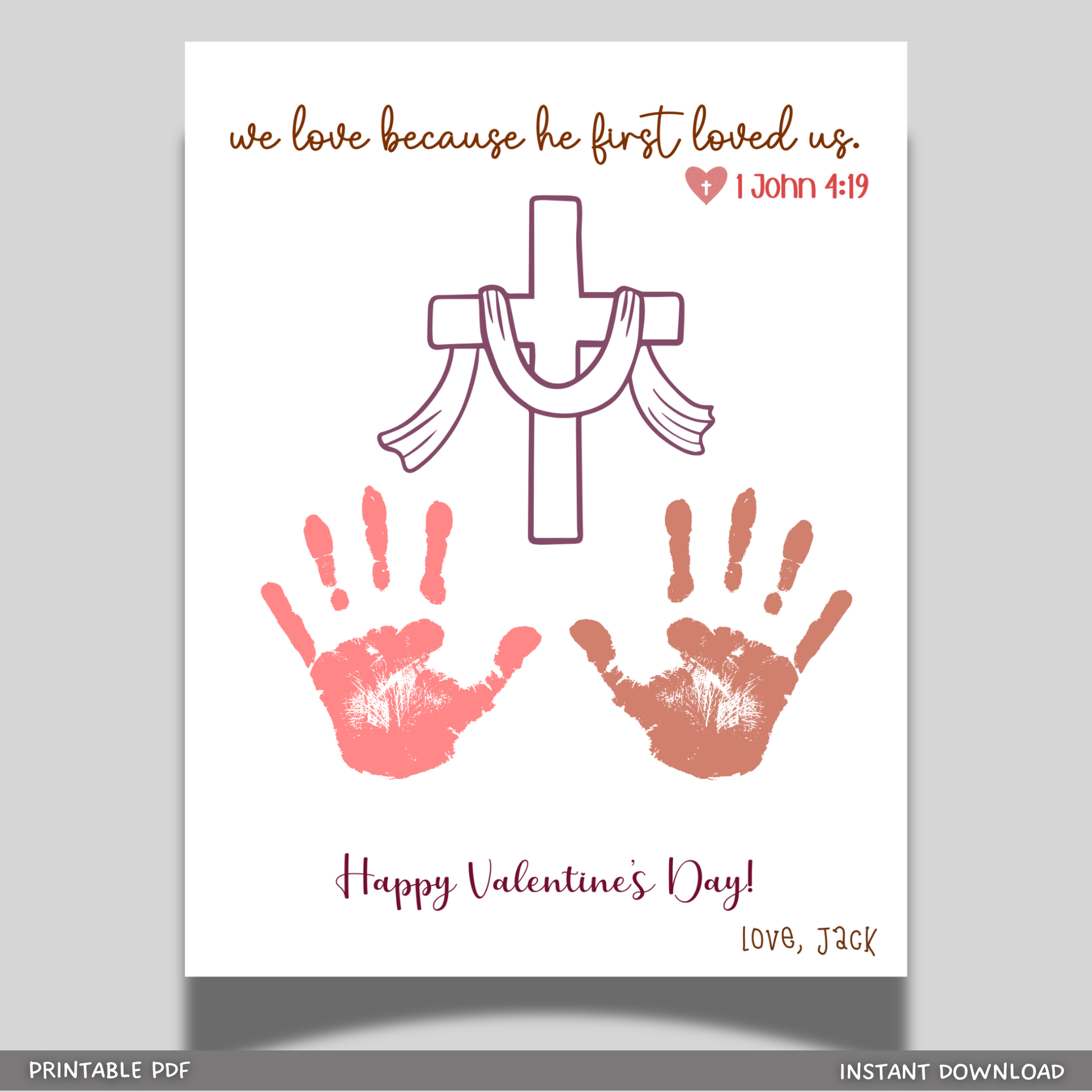 Handprint Bible Verse Craft Printable | Valentine’s Day Christian Art for Sunday School Baby Toddler Child Nursery DIY Activity Preschool