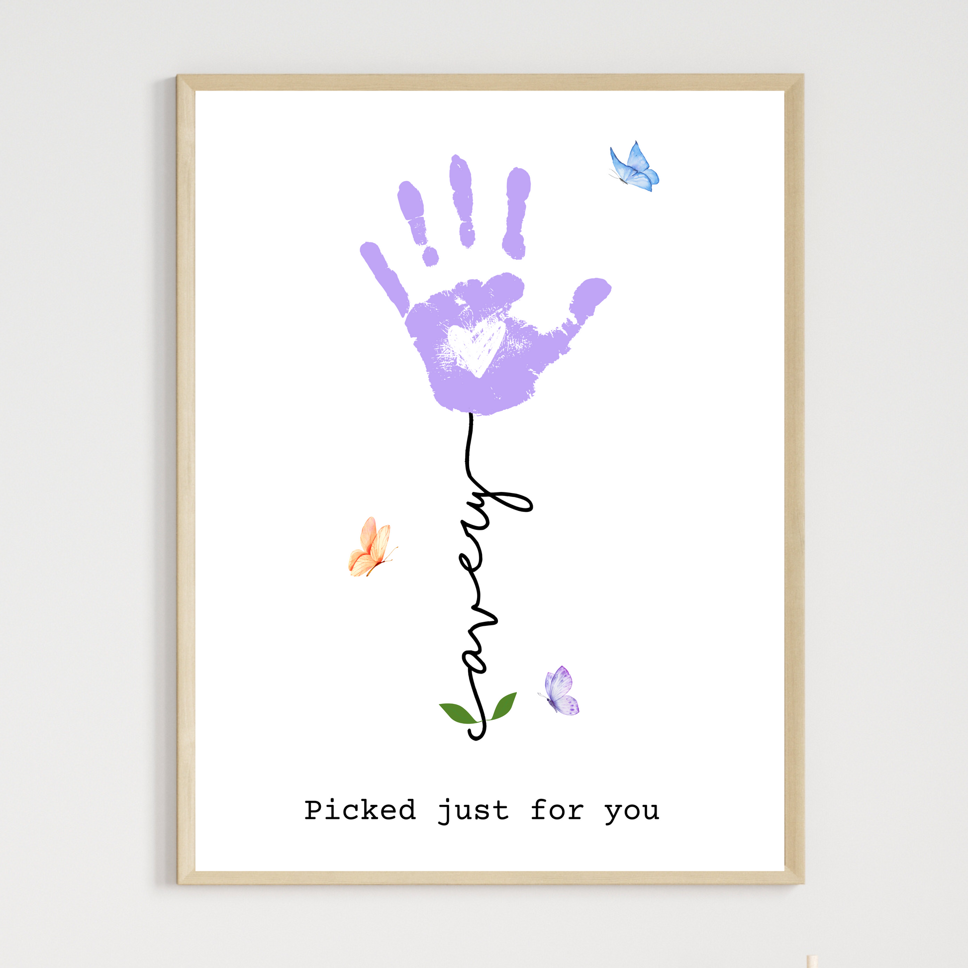 Featuring a sweet name stem, this elegant design turns your child’s handprint into a personalized piece of art. Add your own custom message and names to make it truly unique. It’s more than just a gift—it’s a lasting memory she’ll treasure forever.