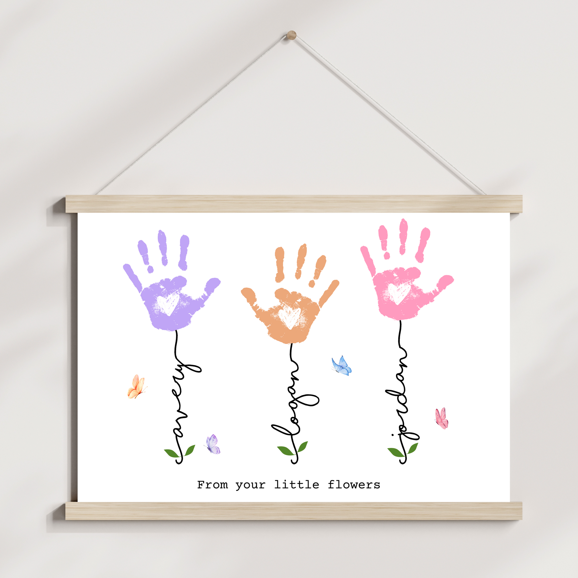 This custom handprint art is the perfect way to say “I love you” through creativity and tiny fingers. Create a one-of-a-kind memory that grows more special each year! ✨