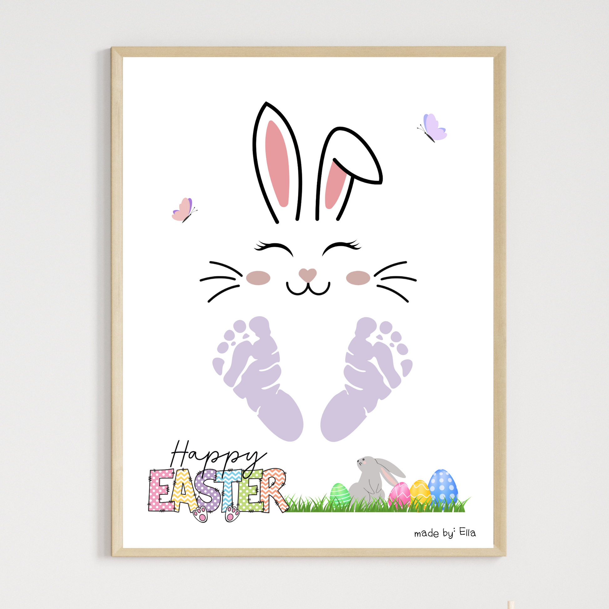 Happy Easter Bunny Footprint Craft for Kids Printable, DIY Art Keepsake Activity