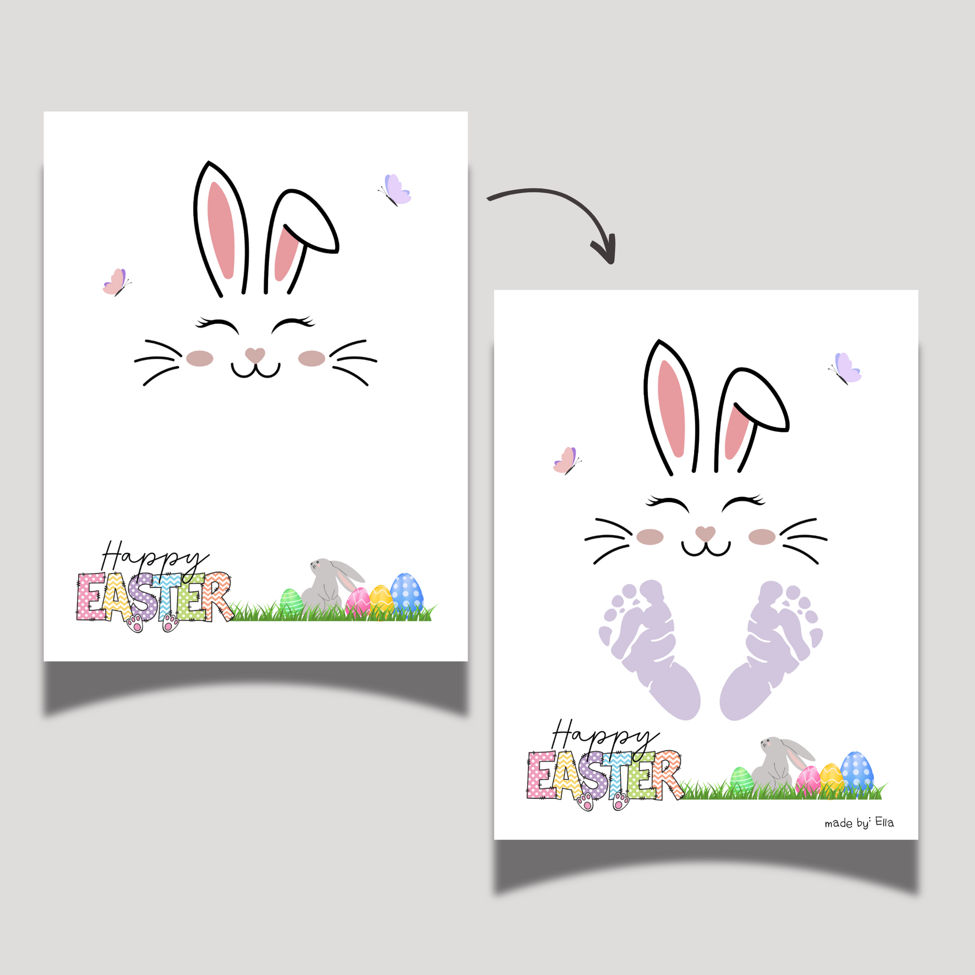 Easter footprint craft, handprint footprint bunny craft, Easter DIY art for kids, printable baby footprint art, toddler Easter craft, preschool Easter printable, daycare classroom activity, homeschool Easter project, non-toxic paint footprint idea, Easter bunny craft template, parent teacher spring activity, Easter greeting card from kids