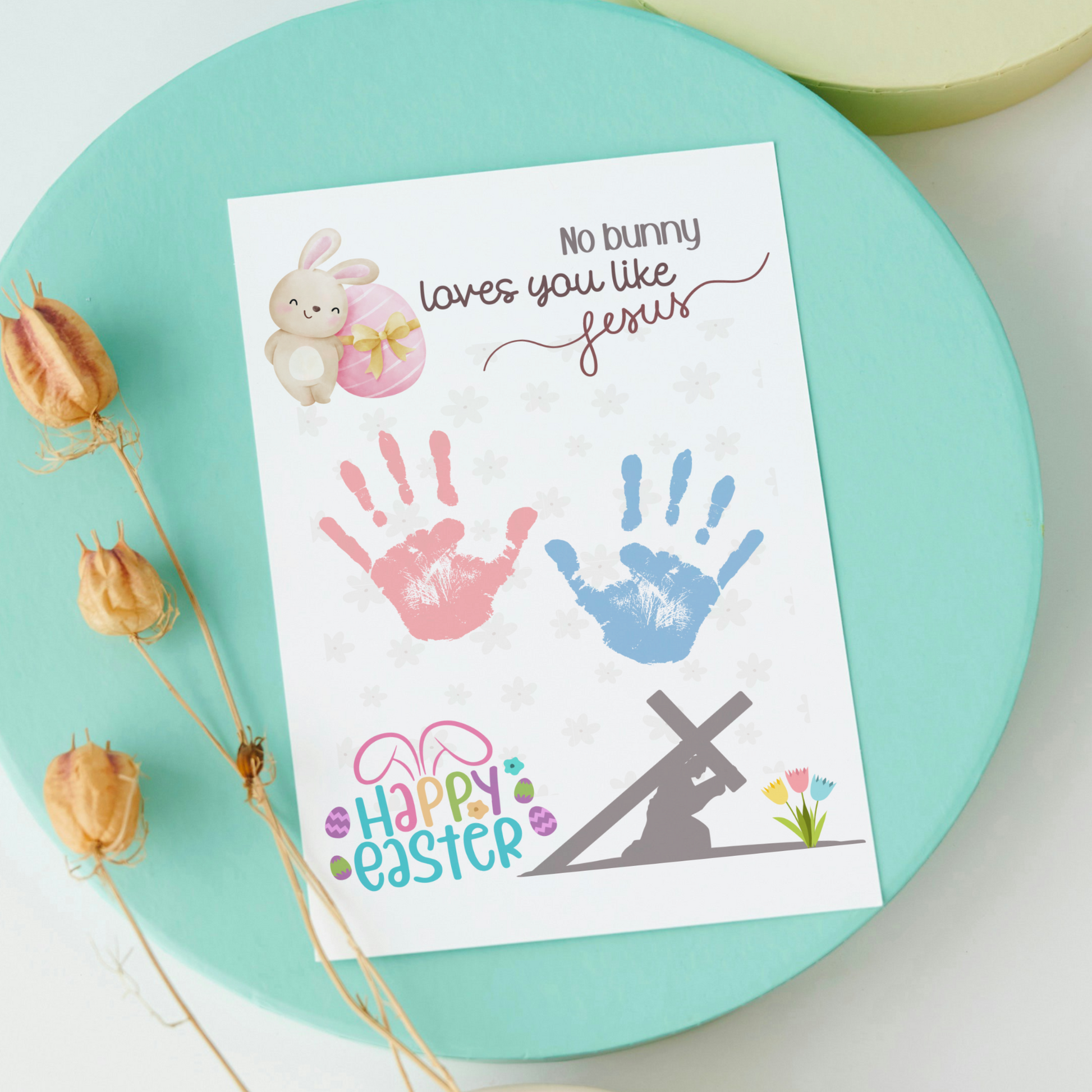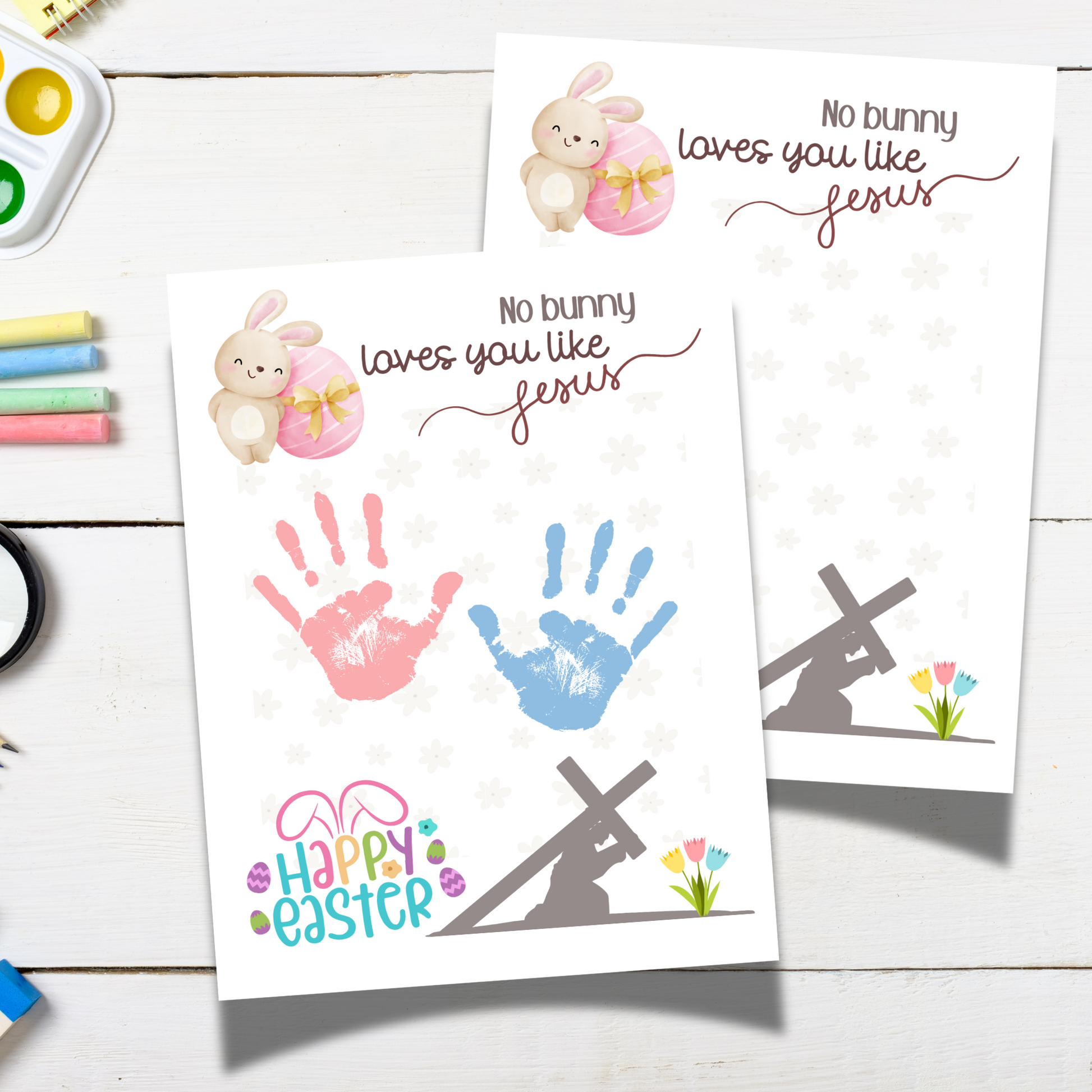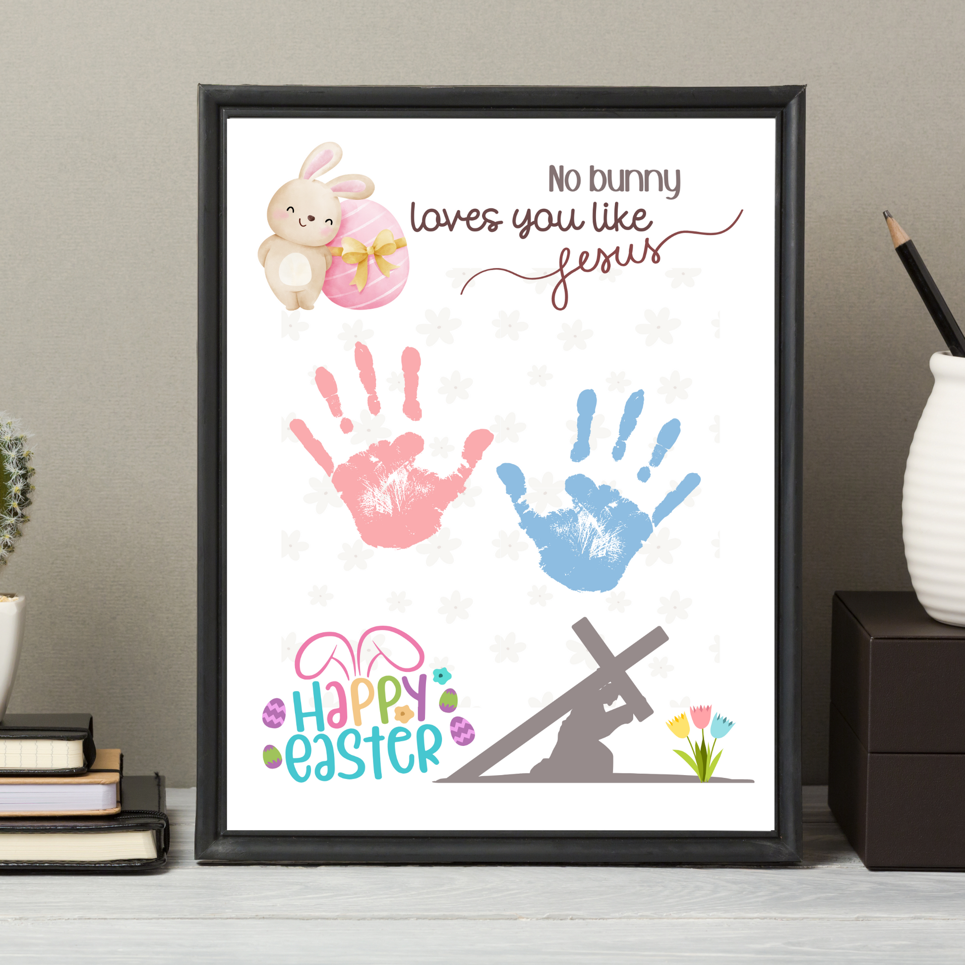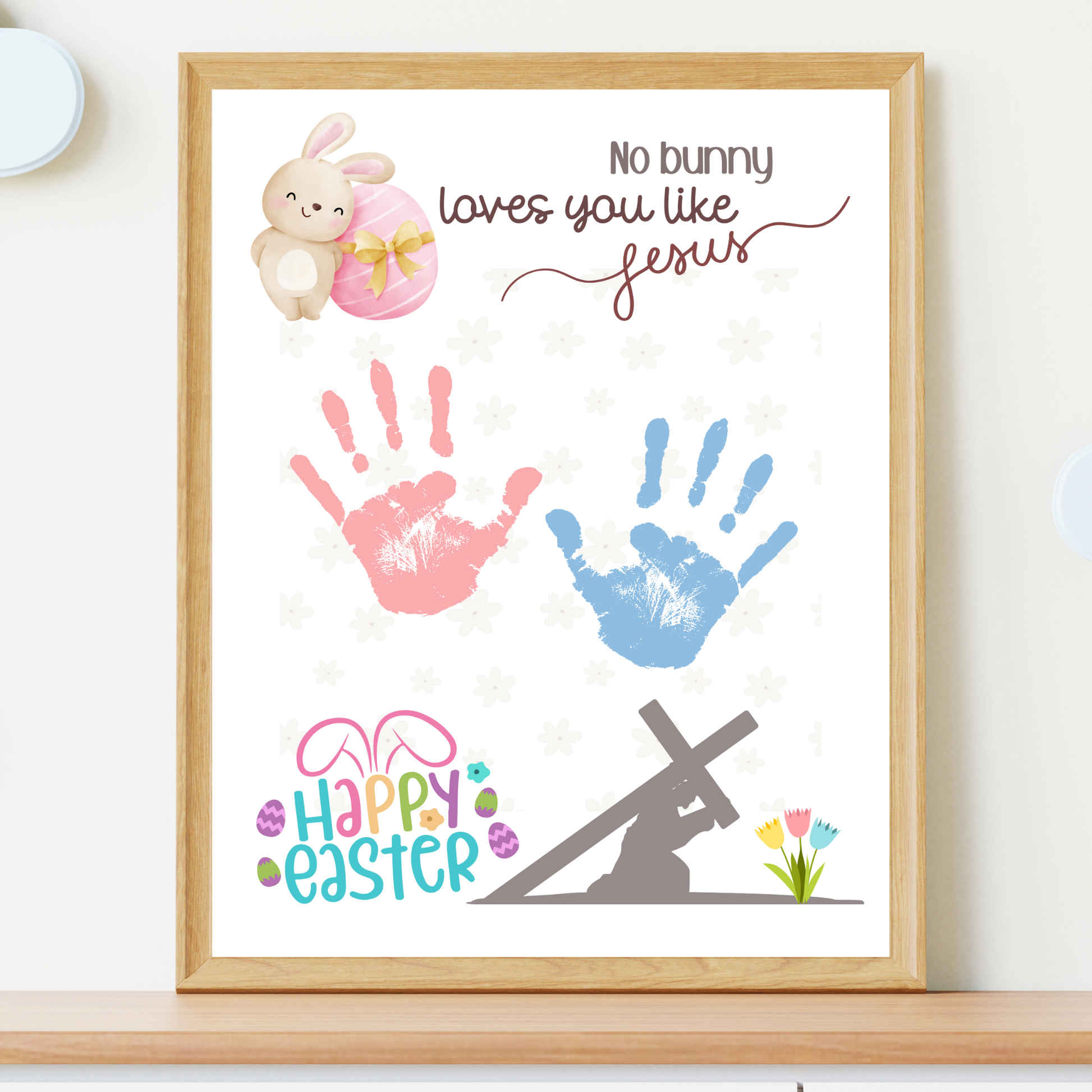 Christian Easter craft, No Bunny Loves You Like Jesus printable, Easter handprint keepsake, Bible verse handprint art, toddler Easter gift, religious Easter activity, preschool Christian craft, homeschool Bible lesson, Sunday school Easter project, newborn footprint art, personalized Easter gift, church classroom craft, scripture handprint printable, Easter bunny Christian craft, Jesus loves you art, faith-based Easter keepsake, Holy Week activity for kids, Palm Sunday craft, Christian baby footprint keepsake