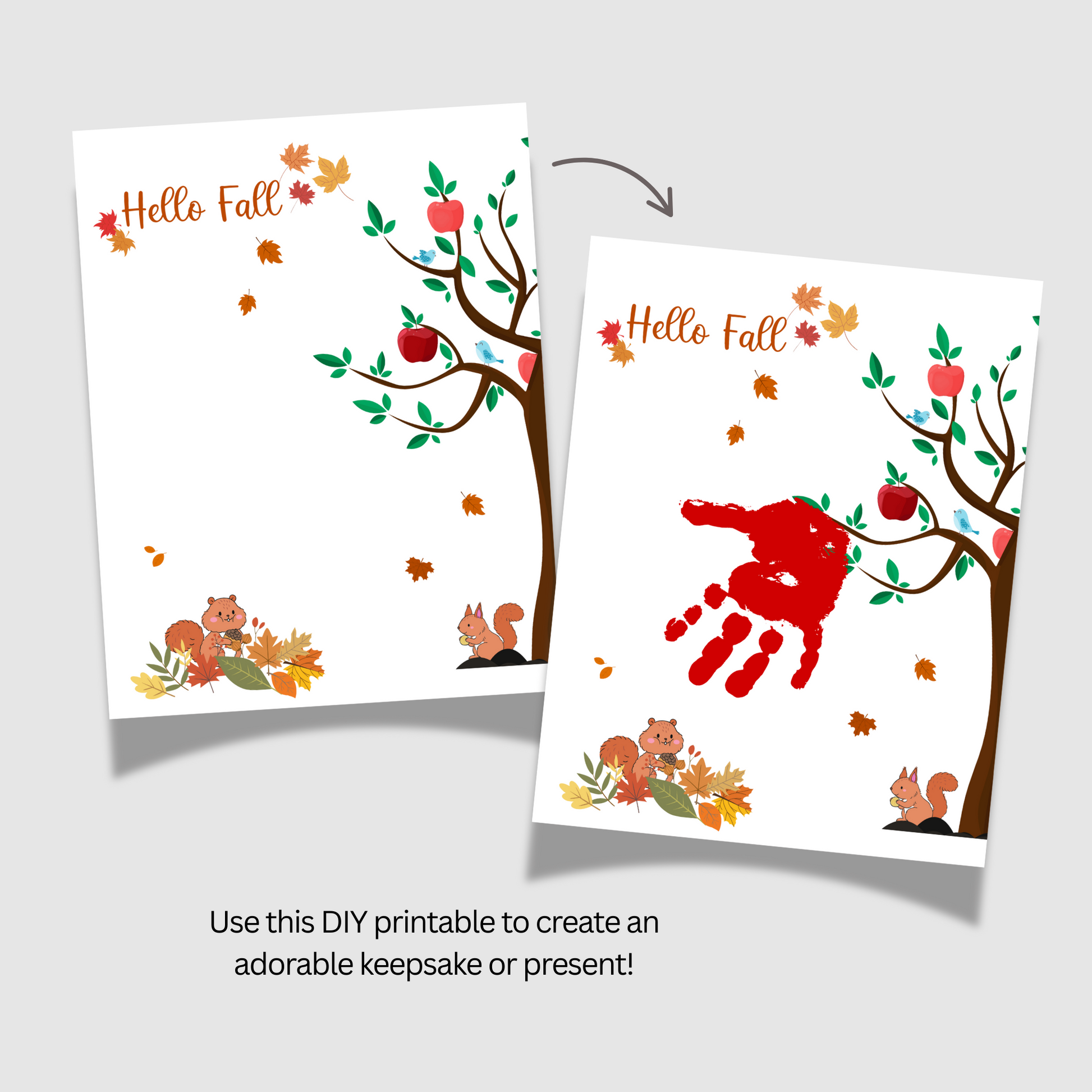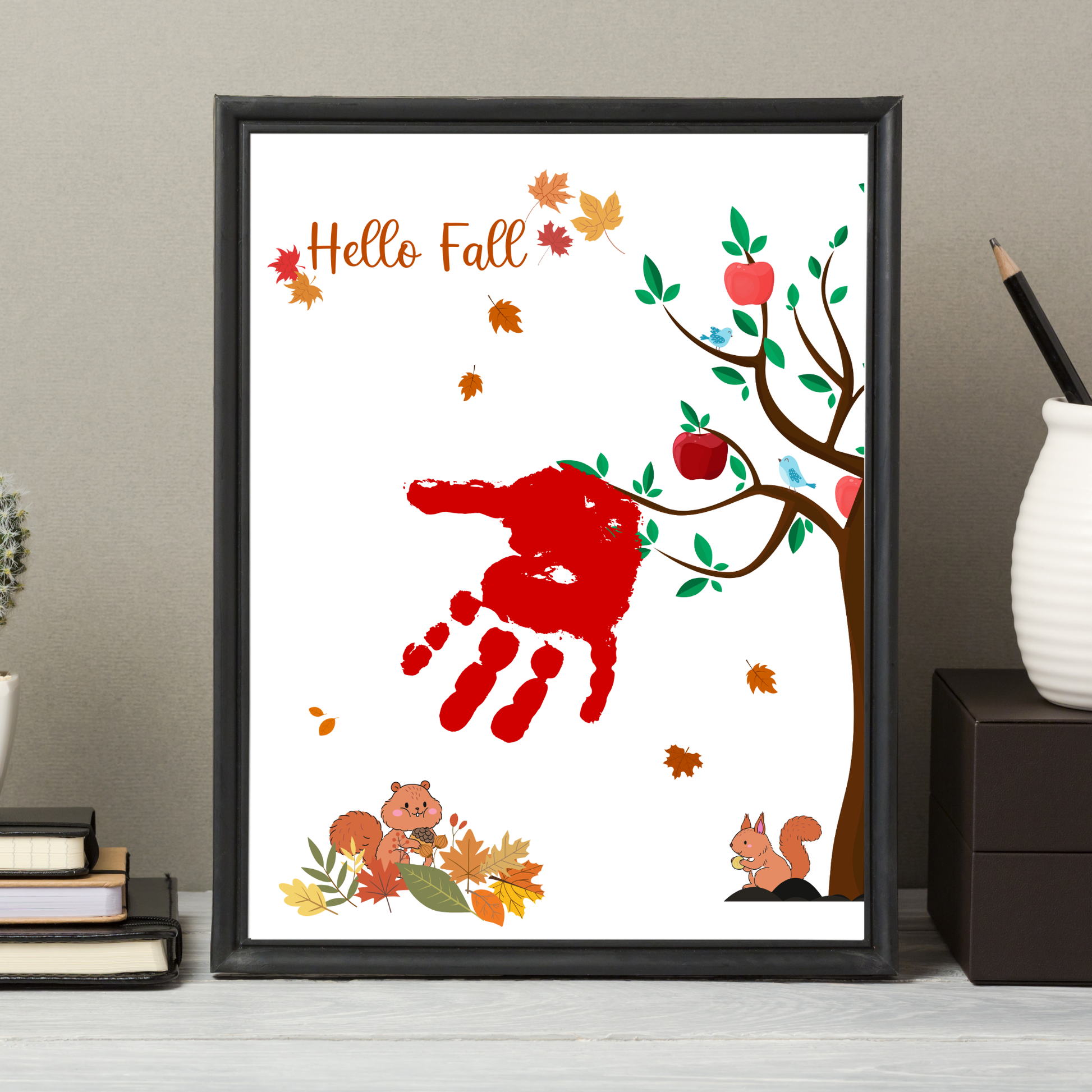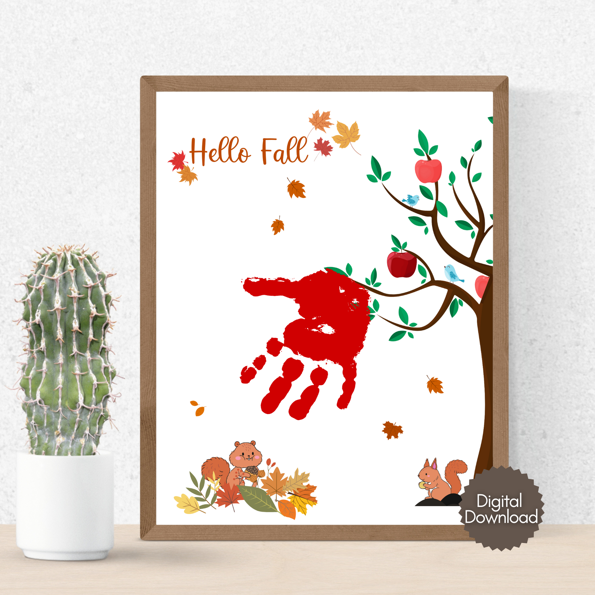 Hello Fall Handprint Craft Printable – Seasonal Autumn Activity for Kids, Baby, Toddler, Preschool Homeschool Project Keepsake Wall Art 🍂