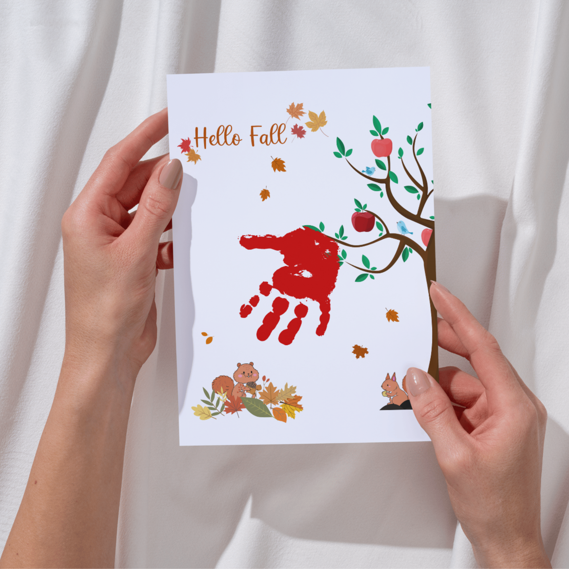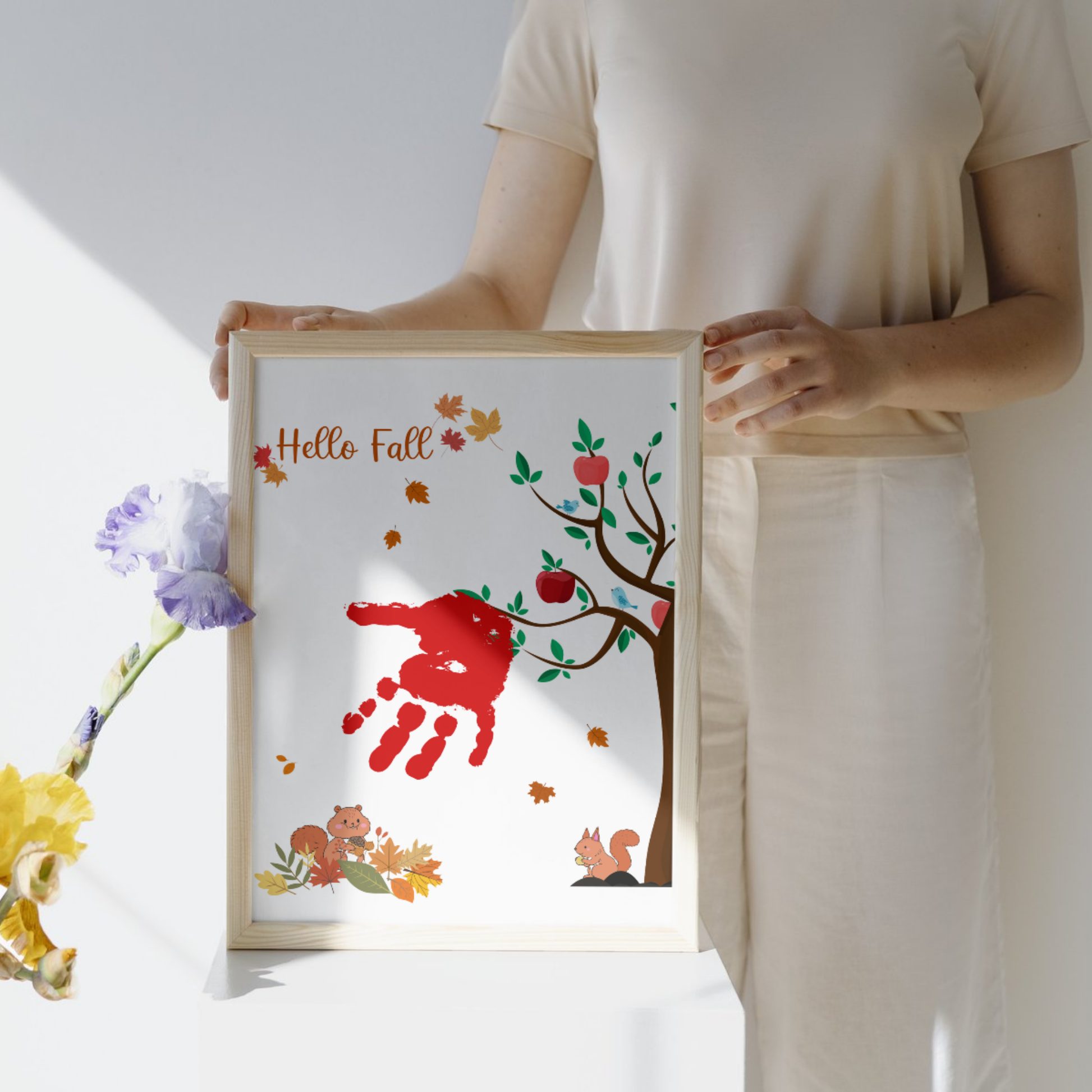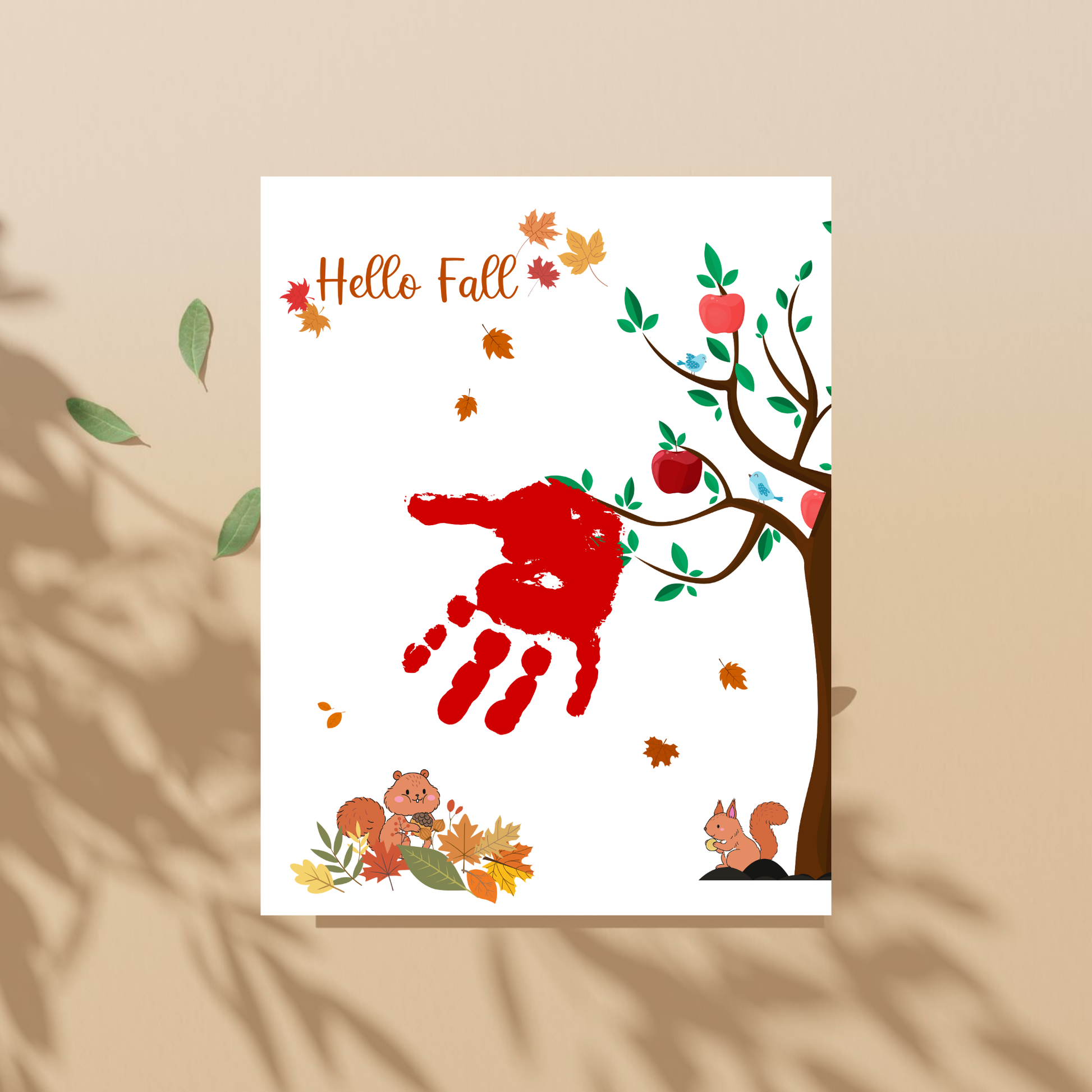 Hello Fall Handprint Craft Printable – Seasonal Autumn Activity for Kids, Baby, Toddler, Preschool Homeschool Project Keepsake Wall Art 🍂