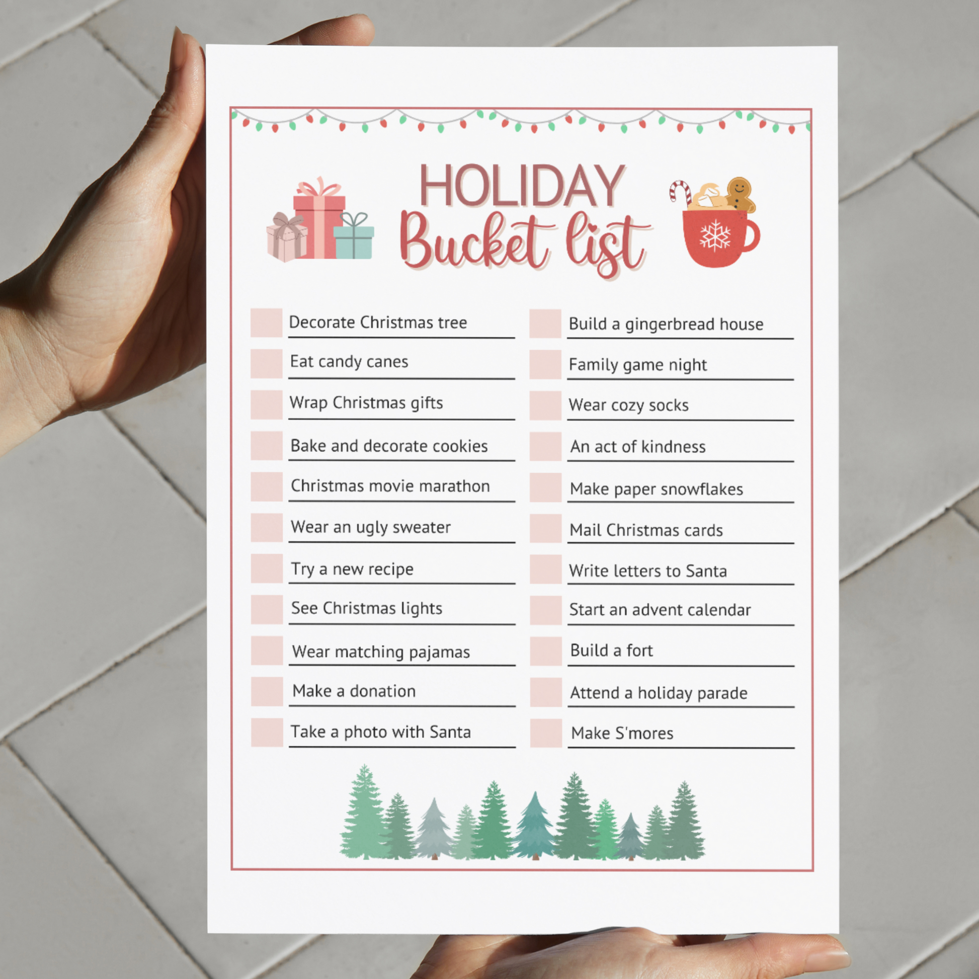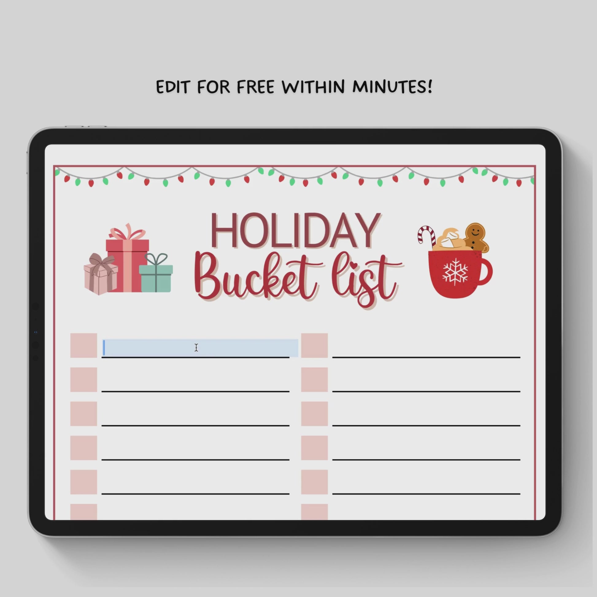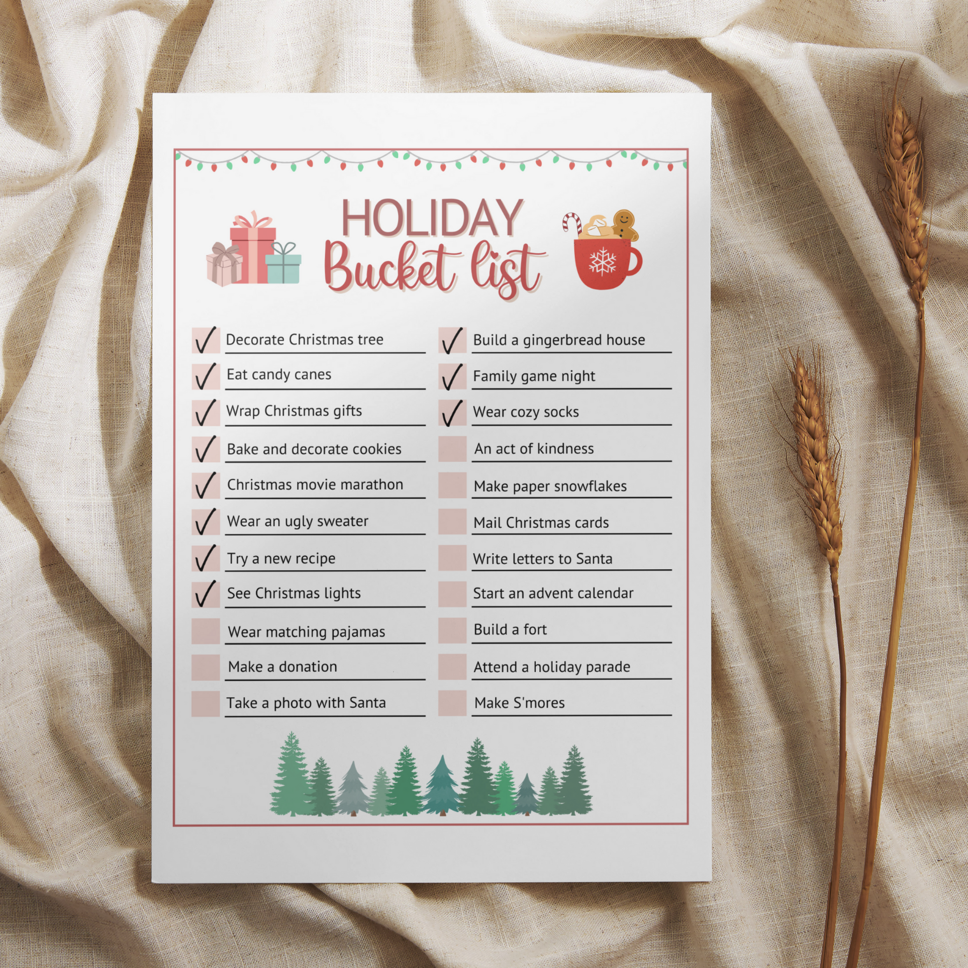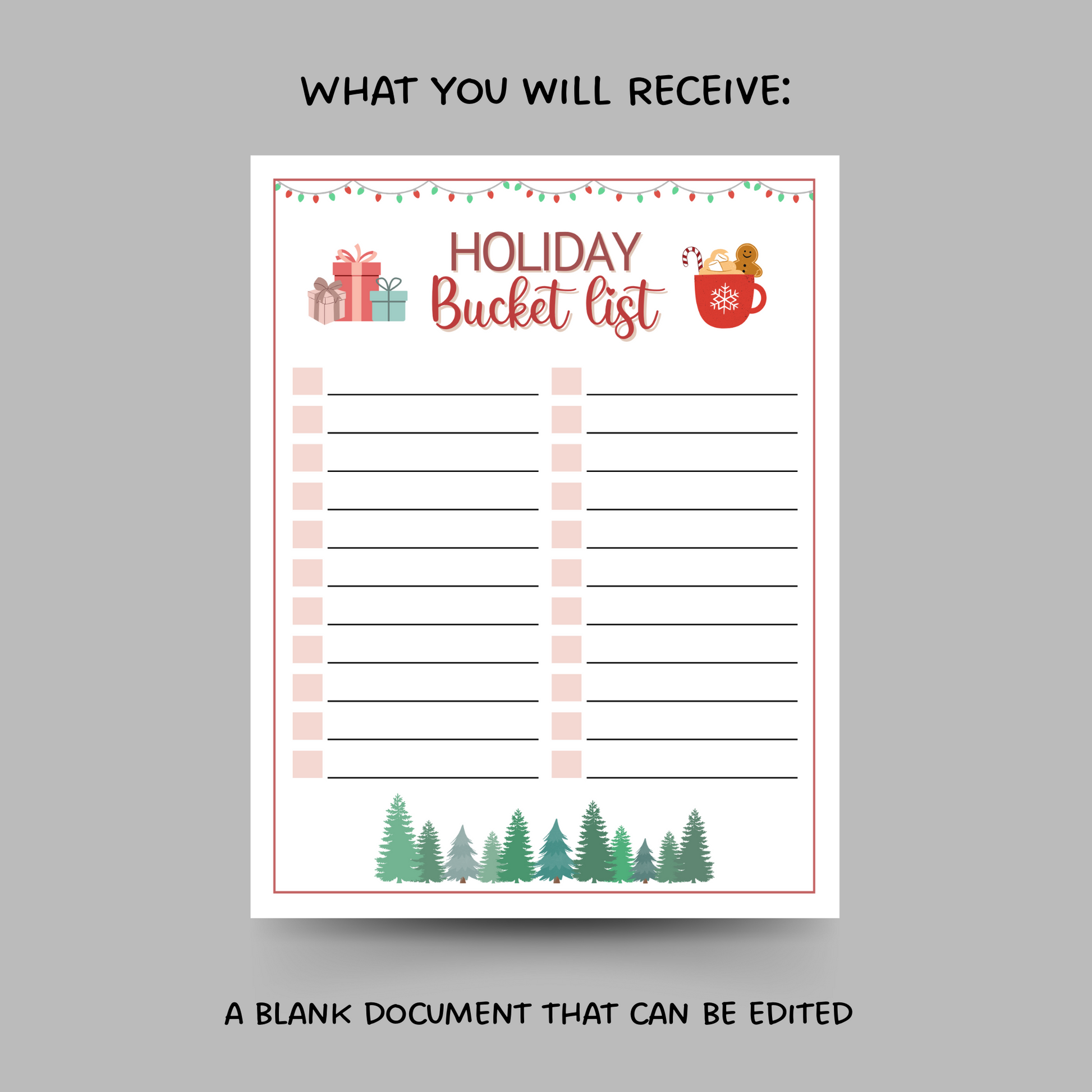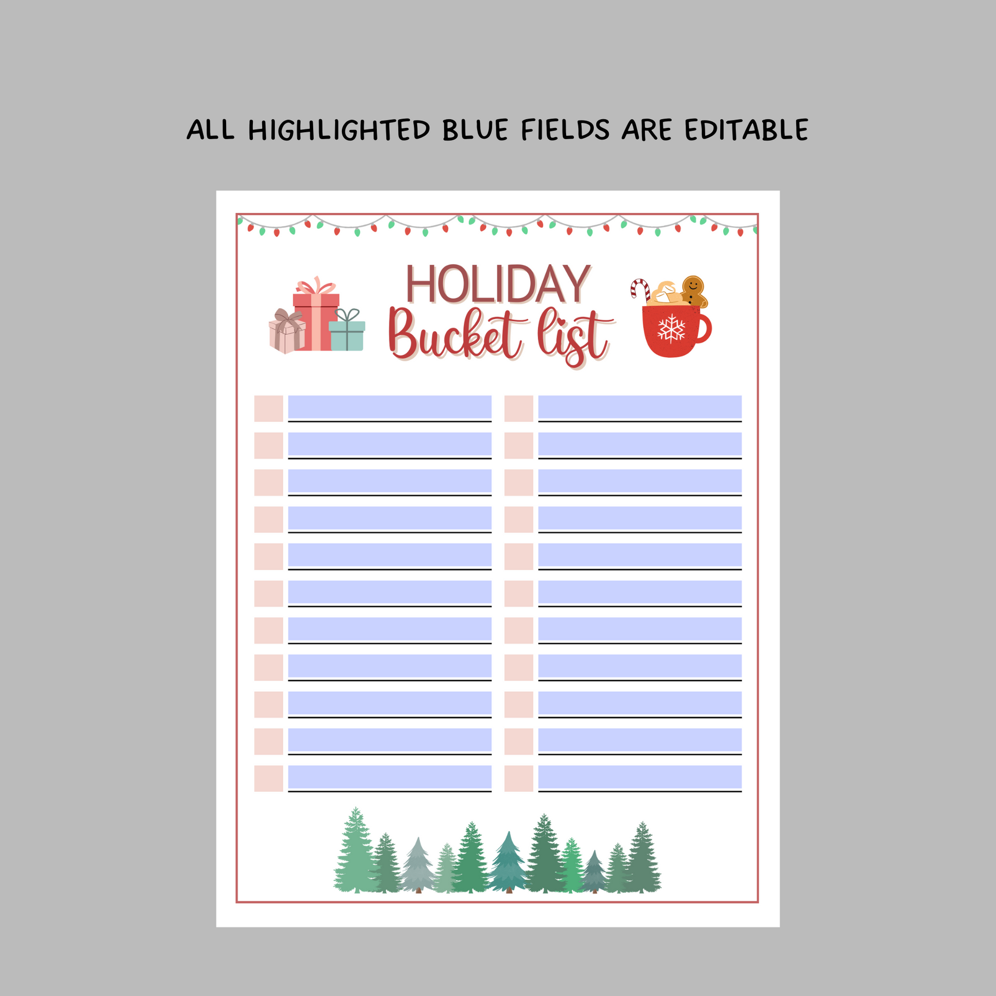 Holiday Bucket List Printable, Editable Christmas Activity Checklist