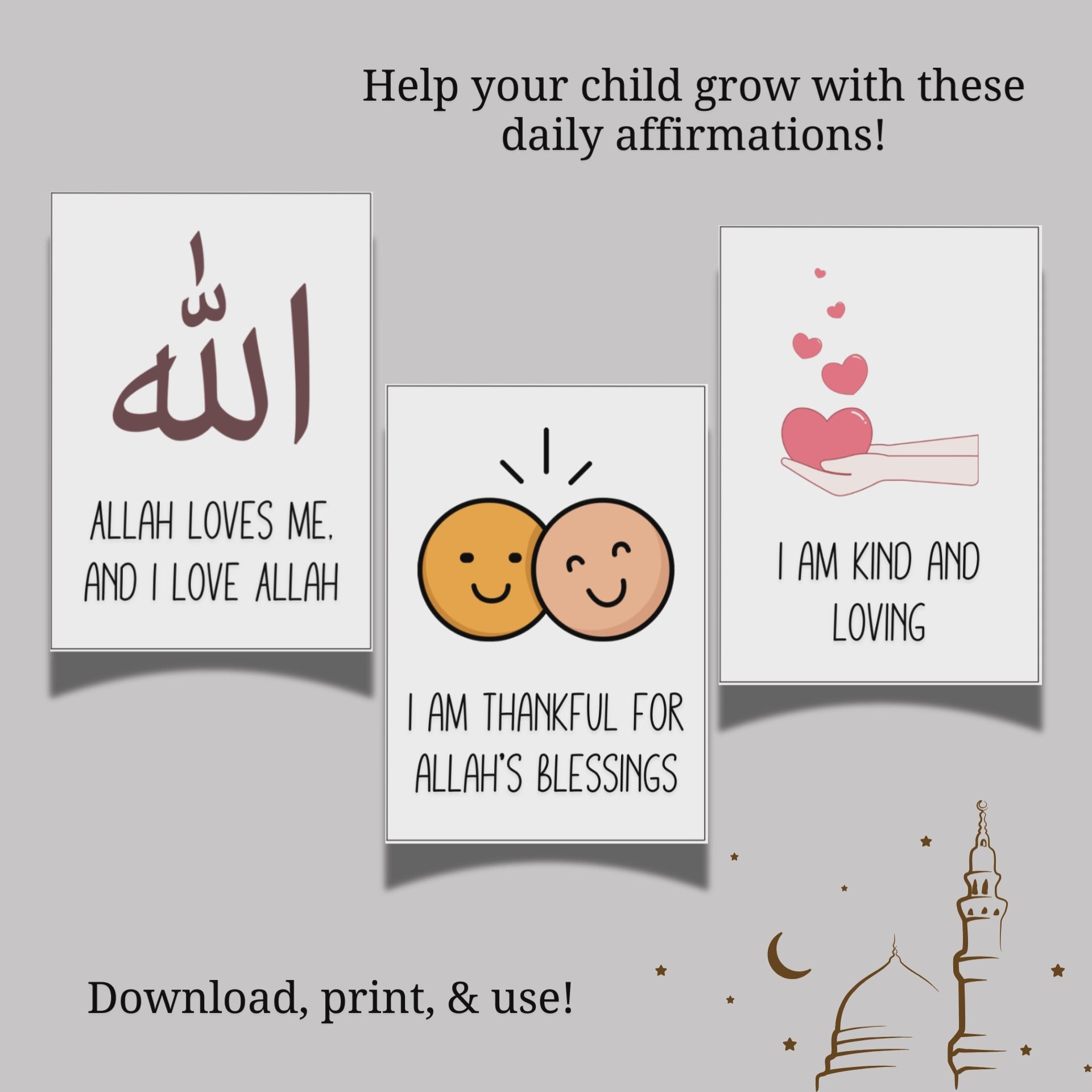 Islamic Affirmations for Kids Printable Cards, Daily Muslim Reminders
