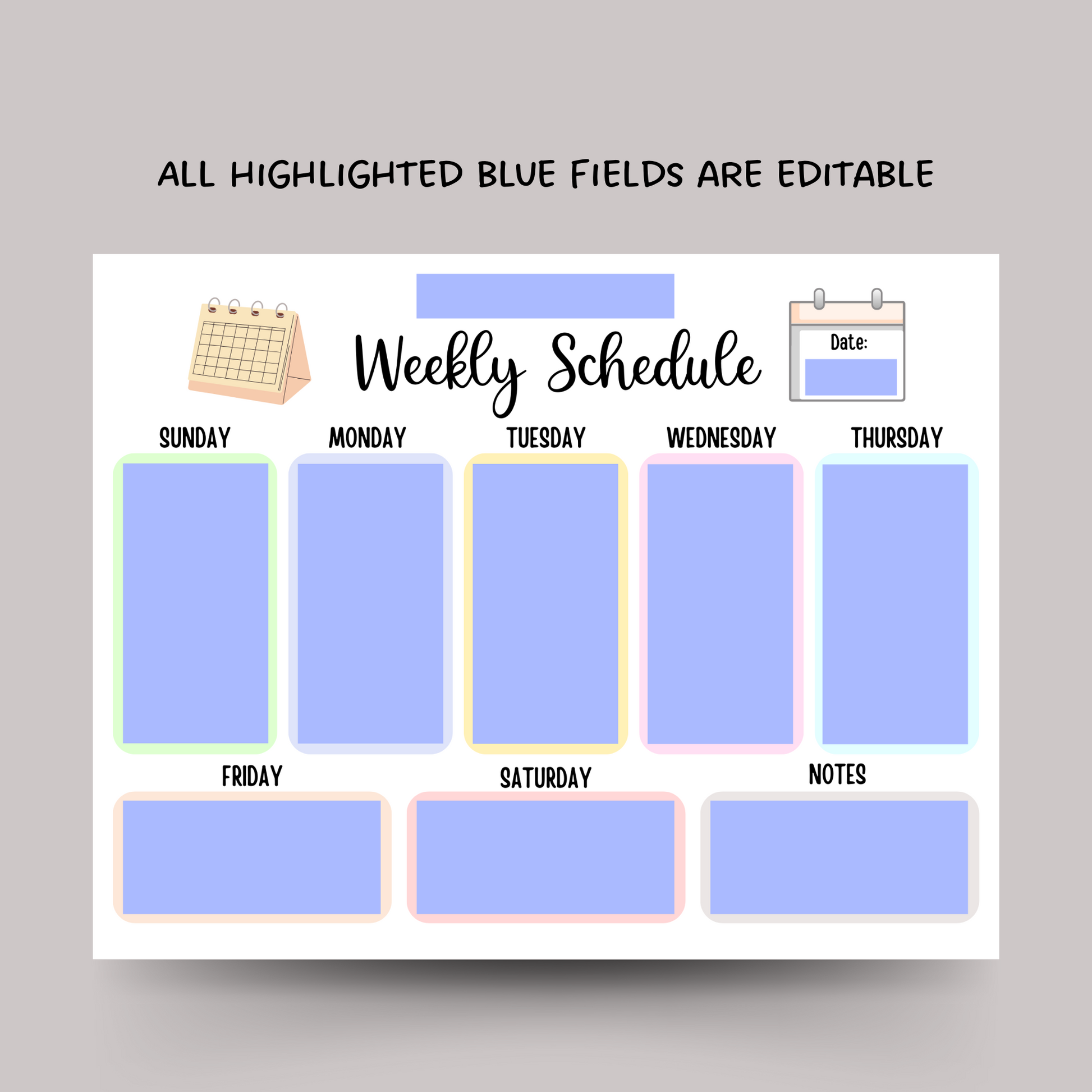 Kids Weekly Planner Printable, Editable Weekly Schedule Chart