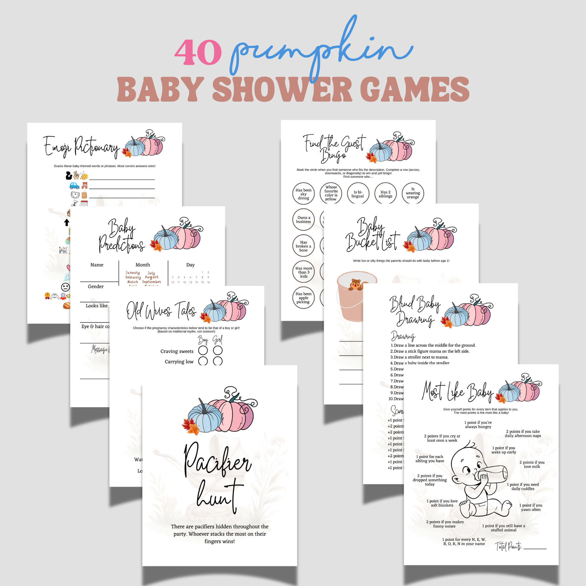 Easy to print and play, this bundle includes 40 cute and engaging baby shower activities designed to keep both adults and families entertained. With a pumpkin theme that doubles as fall party décor, it’s a stylish and affordable way to create lasting memories for mom-to-be and guests alike. 🍂