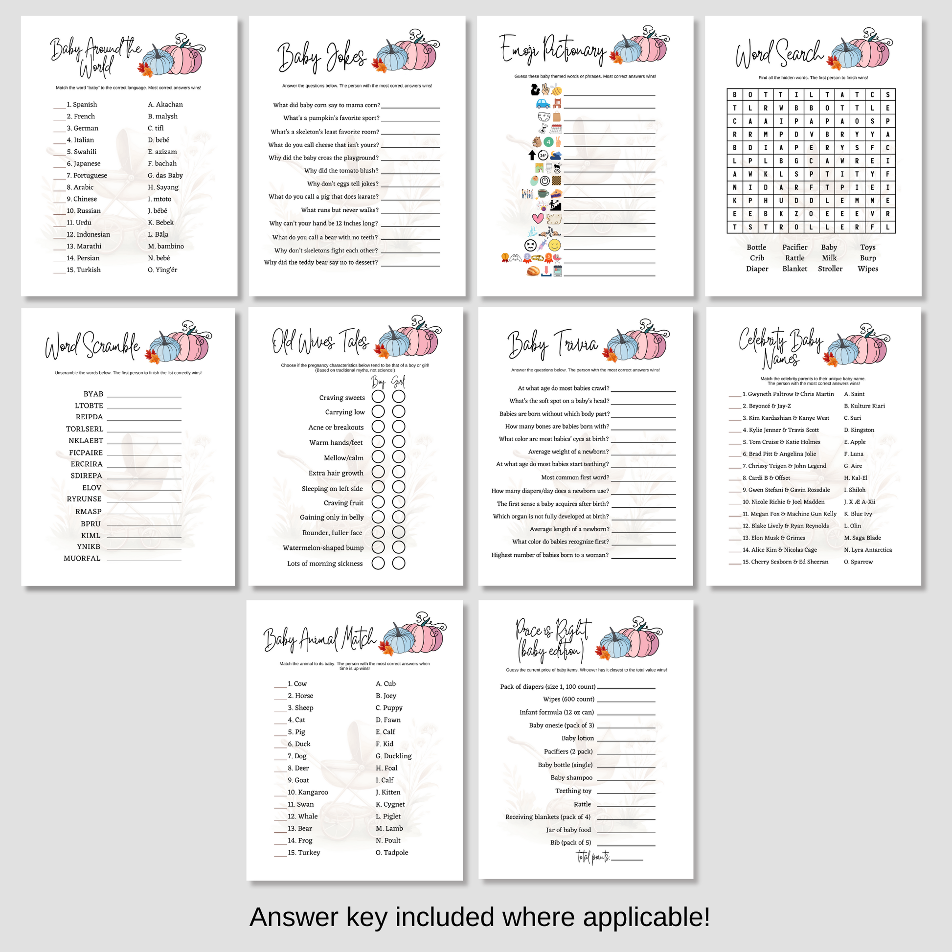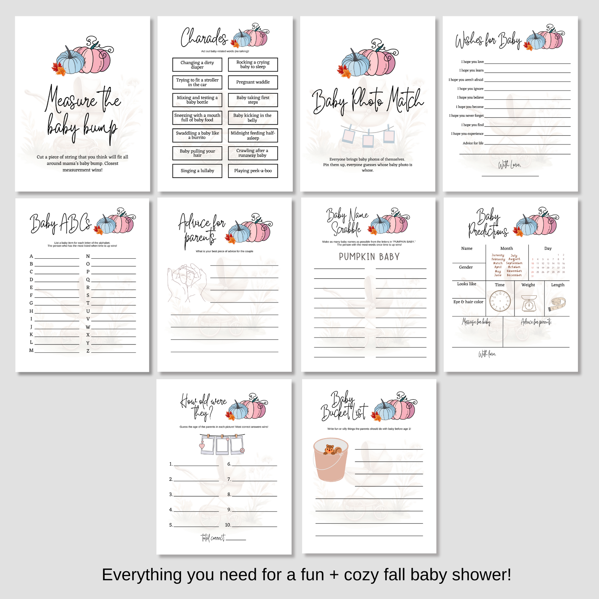 Make your celebration extra special with this Pumpkin Baby Shower Games Printable Bundle, the perfect set of fall-themed party activities for guests of all ages. Whether you’re hosting a cozy autumn baby shower, a festive family gathering, or a friends’ celebration, these fun printable games bring laughter, connection, and seasonal charm.