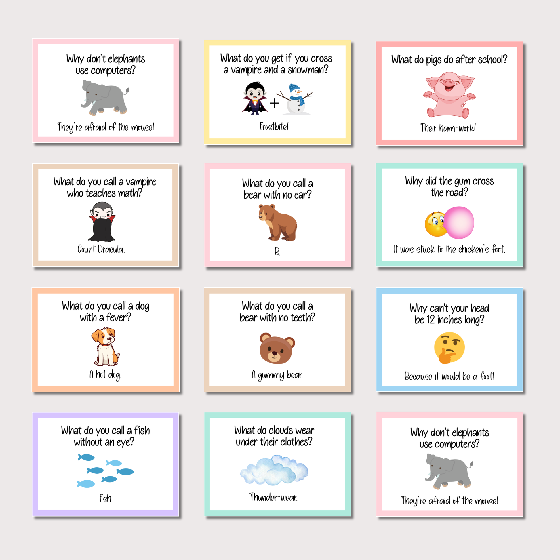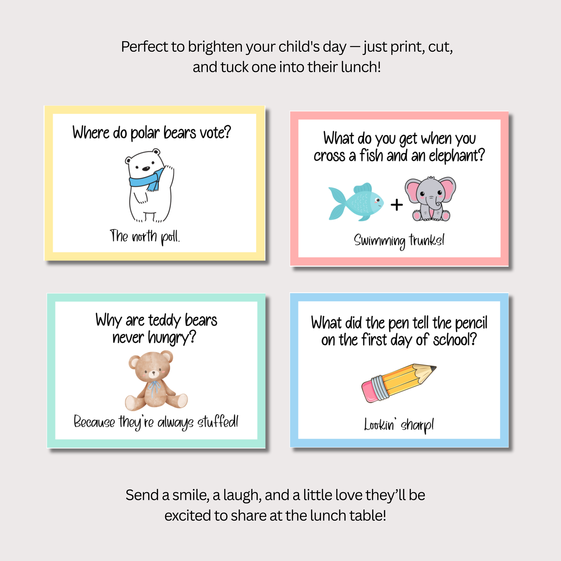 Lunchbox Jokes Cards for Kids Printable, Back to School Lunch Box Notes, Funny Riddles & Dad Jokes PDF for Moms, Teachers & Parents đź’Ś