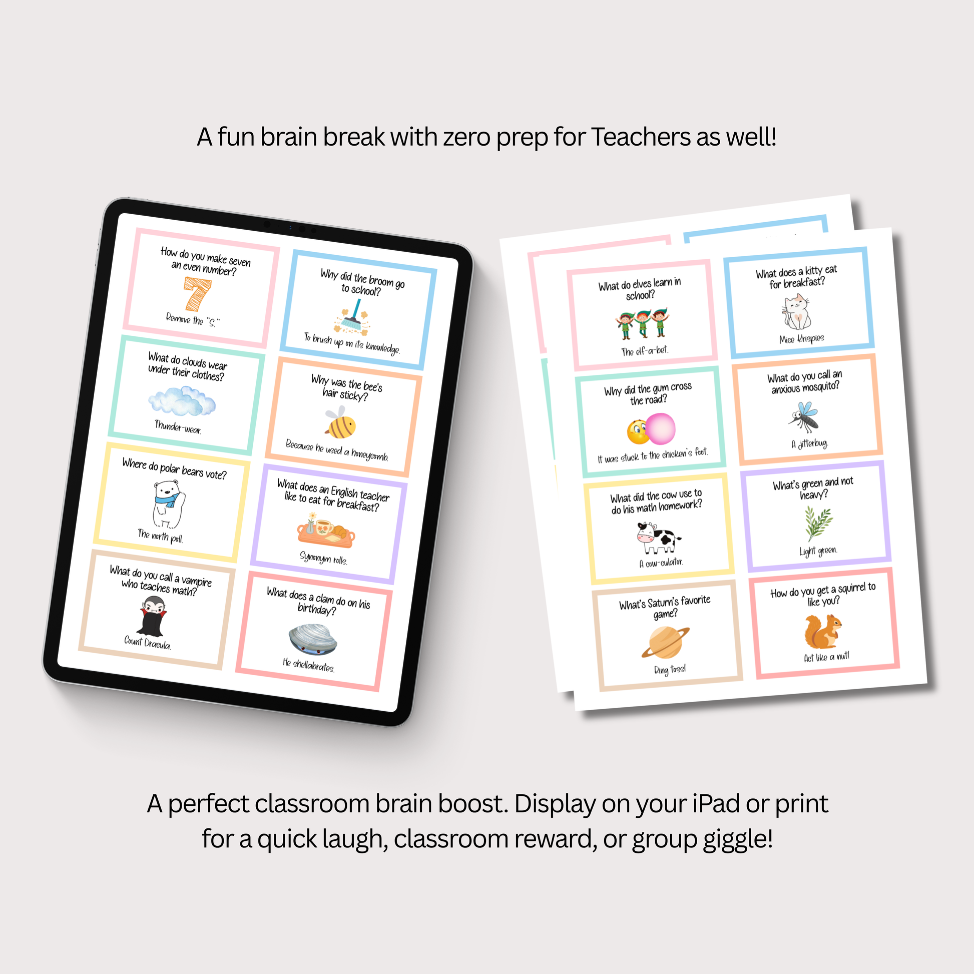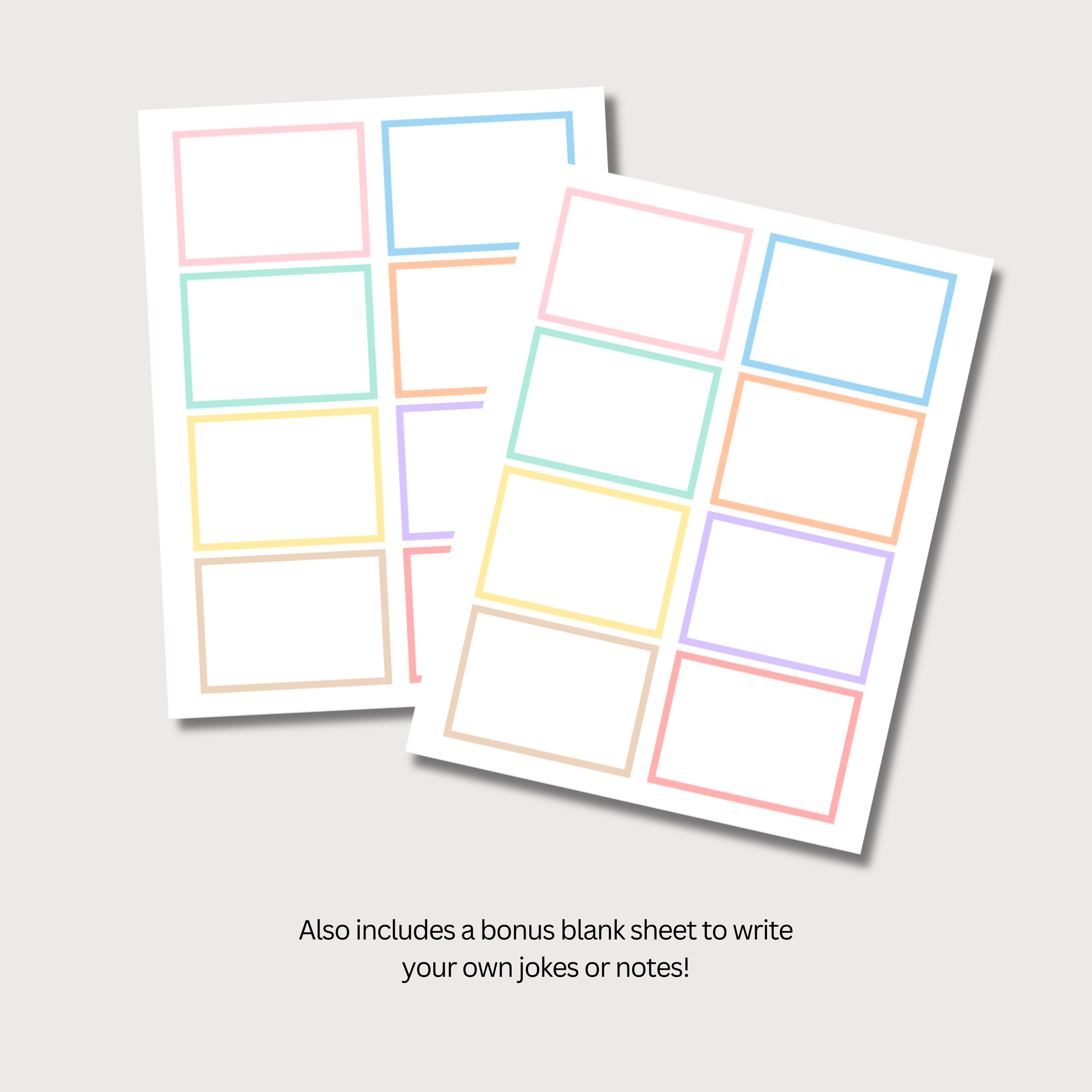 Write a sweet note or personal message on the back for an extra touch of love. Teachers can also use these as brain breaks, icebreakers, or fun rewards in class. Bonus blank templates included so you can create your own jokes or notes—print as many as you like!