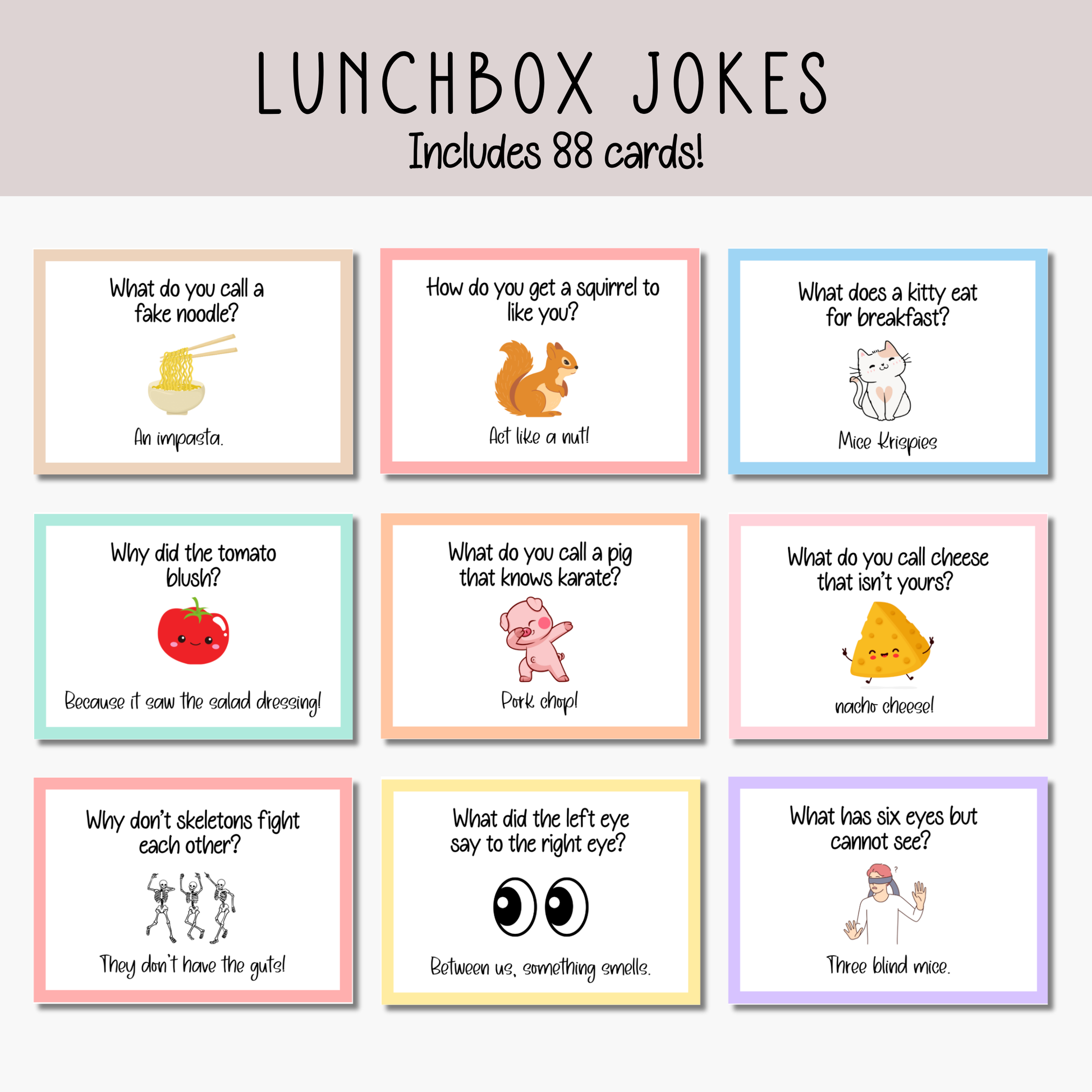 Lunchbox Jokes Cards for Kids Printable, Funny Lunch Box Notes