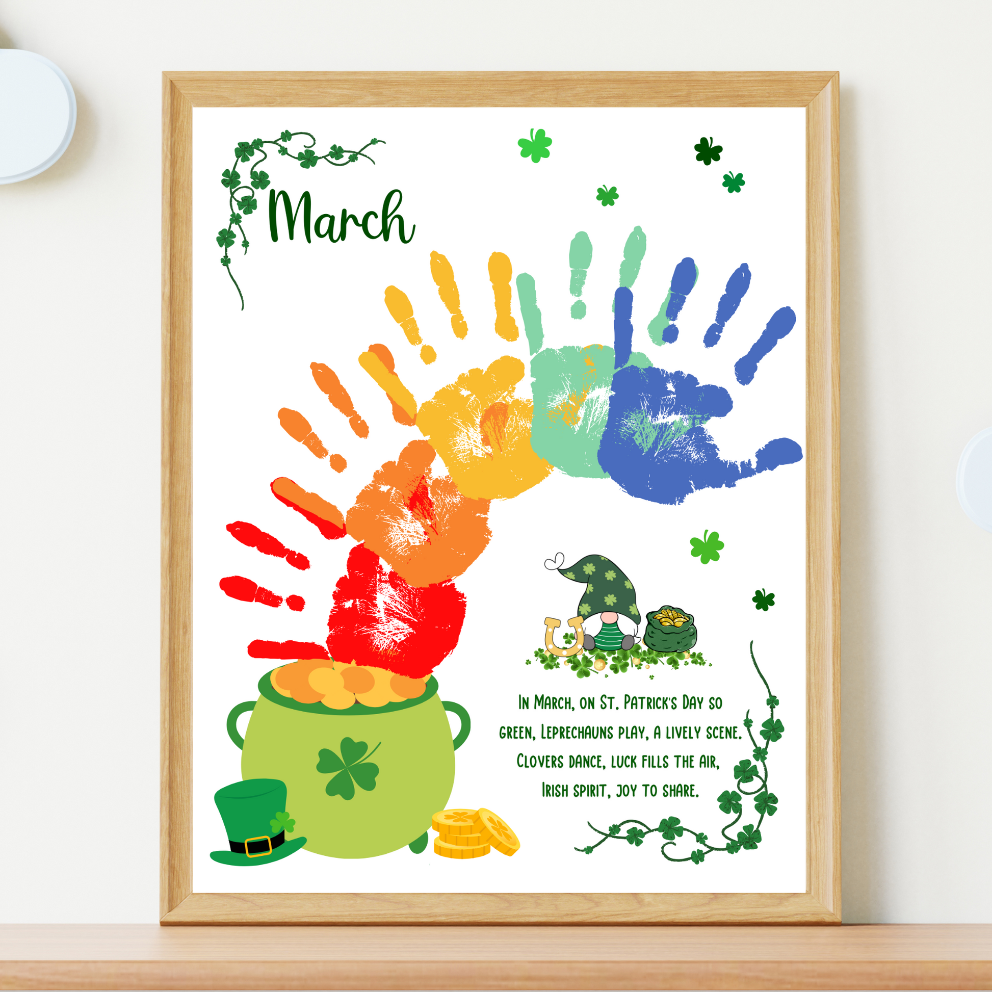 Celebrate your child’s growth and creativity with this adorable March handprint craft printable! Perfect for babies, toddlers, preschool, pre-k and kindergarten kids, this easy-to-use activity captures the magic of childhood while keeping little ones entertained. A wonderful keepsake to treasure forever, this craft is ideal for framing, gifting, or displaying at home or in the office. Just download, print, apply non-toxic washable paint to the child's hand/foot, and start creating memories! 💖