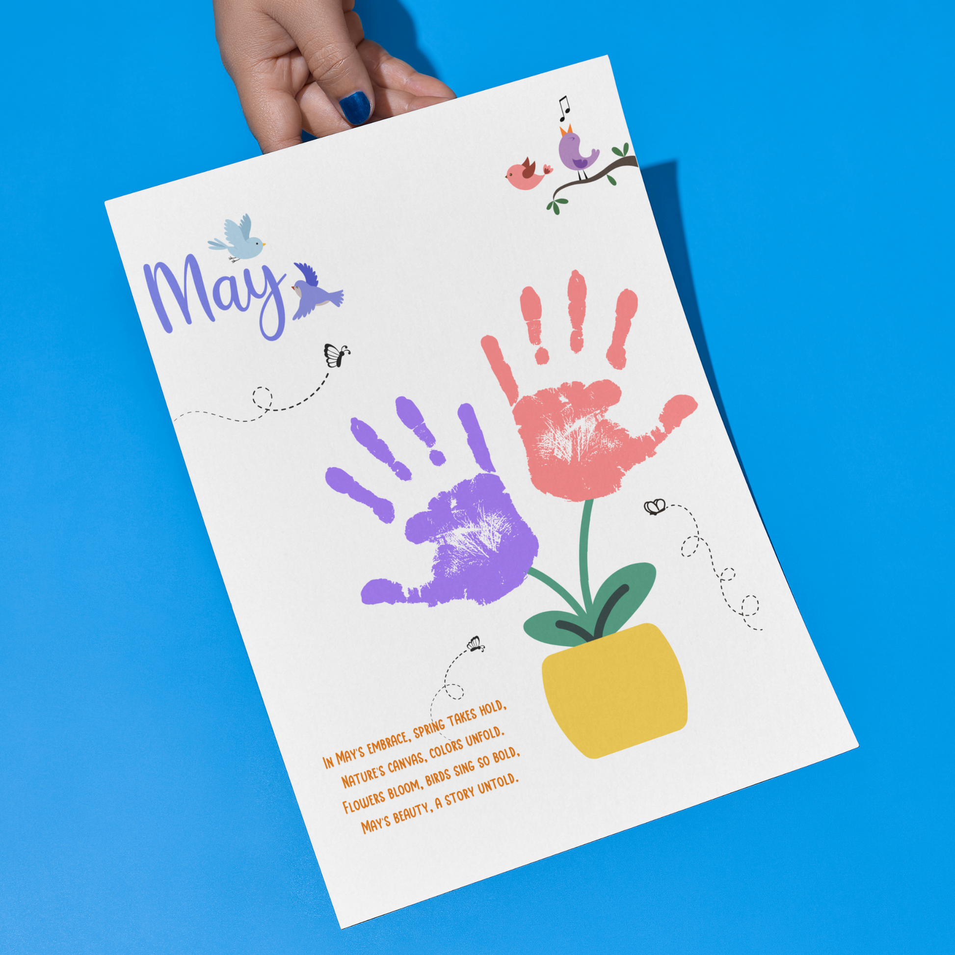 Celebrate your child’s growth and creativity with this adorable May handprint craft printable! Perfect for babies, toddlers, preschool, pre-k and kindergarten kids, this easy-to-use activity captures the magic of childhood while keeping little ones entertained. A wonderful keepsake to treasure forever, this craft is ideal for framing, gifting, or displaying at home or in the office. Just download, print, apply non-toxic washable paint to the child's hand/foot, and start creating memories! 💖