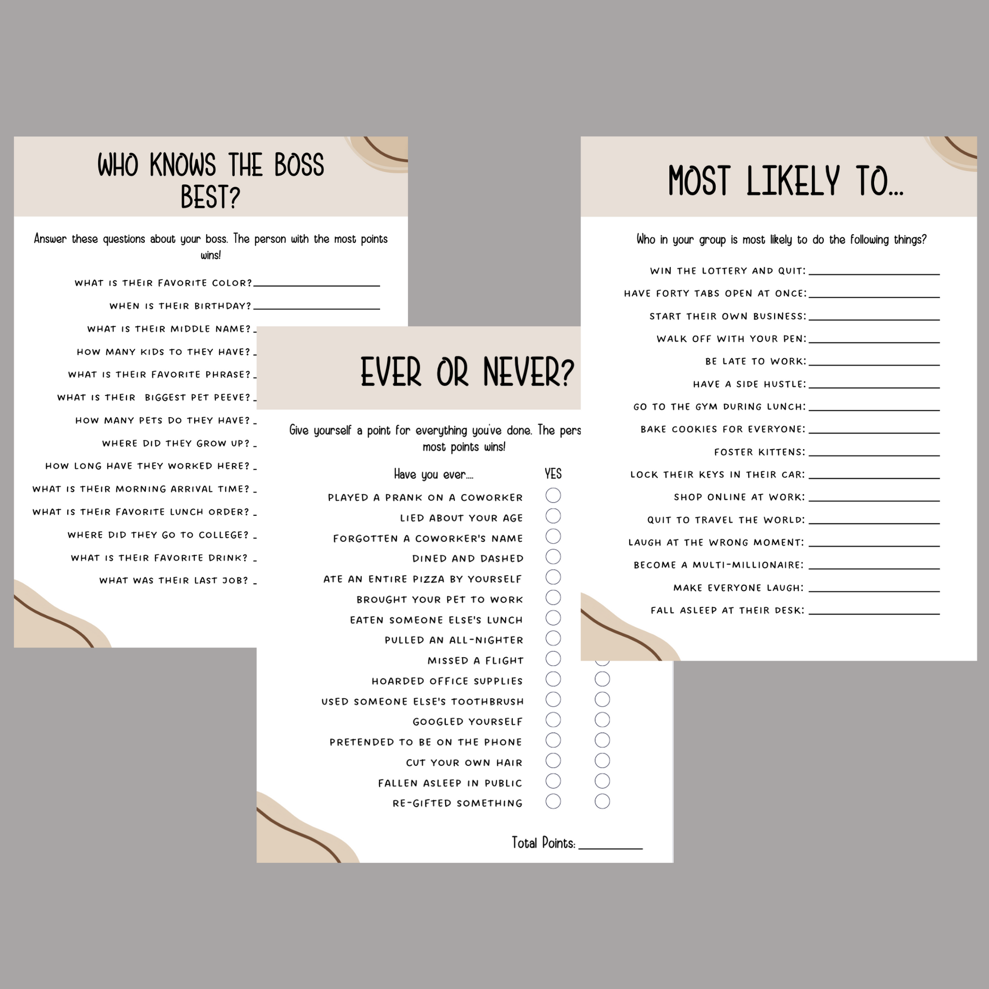 This work party games bundle is a printable PDF and an instant digital download! It includes everything you need for your next staff/ office party, team meeting, or happy hour! These are great for team building and a fun way to interact with everyone in your office!