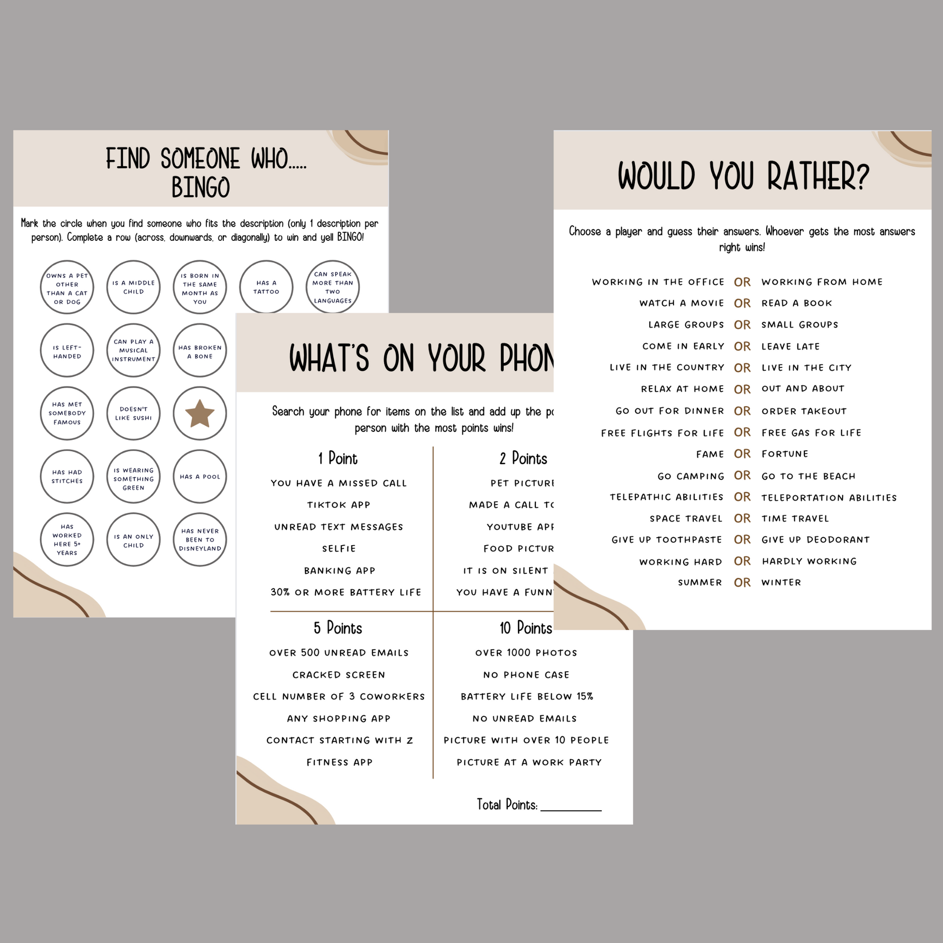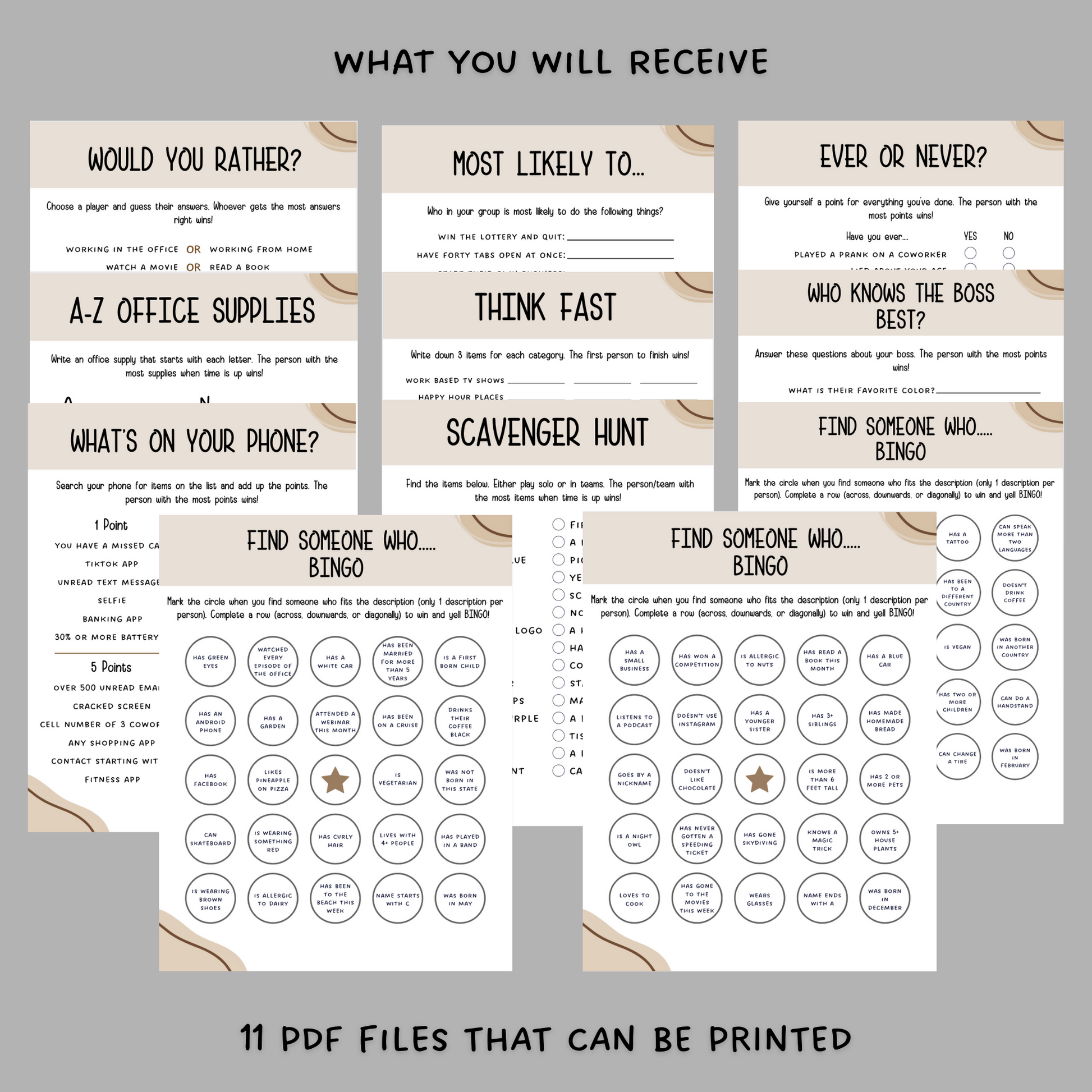 Office Party Games Printable, Work Icebreakers, Team Building Happy Hour Games