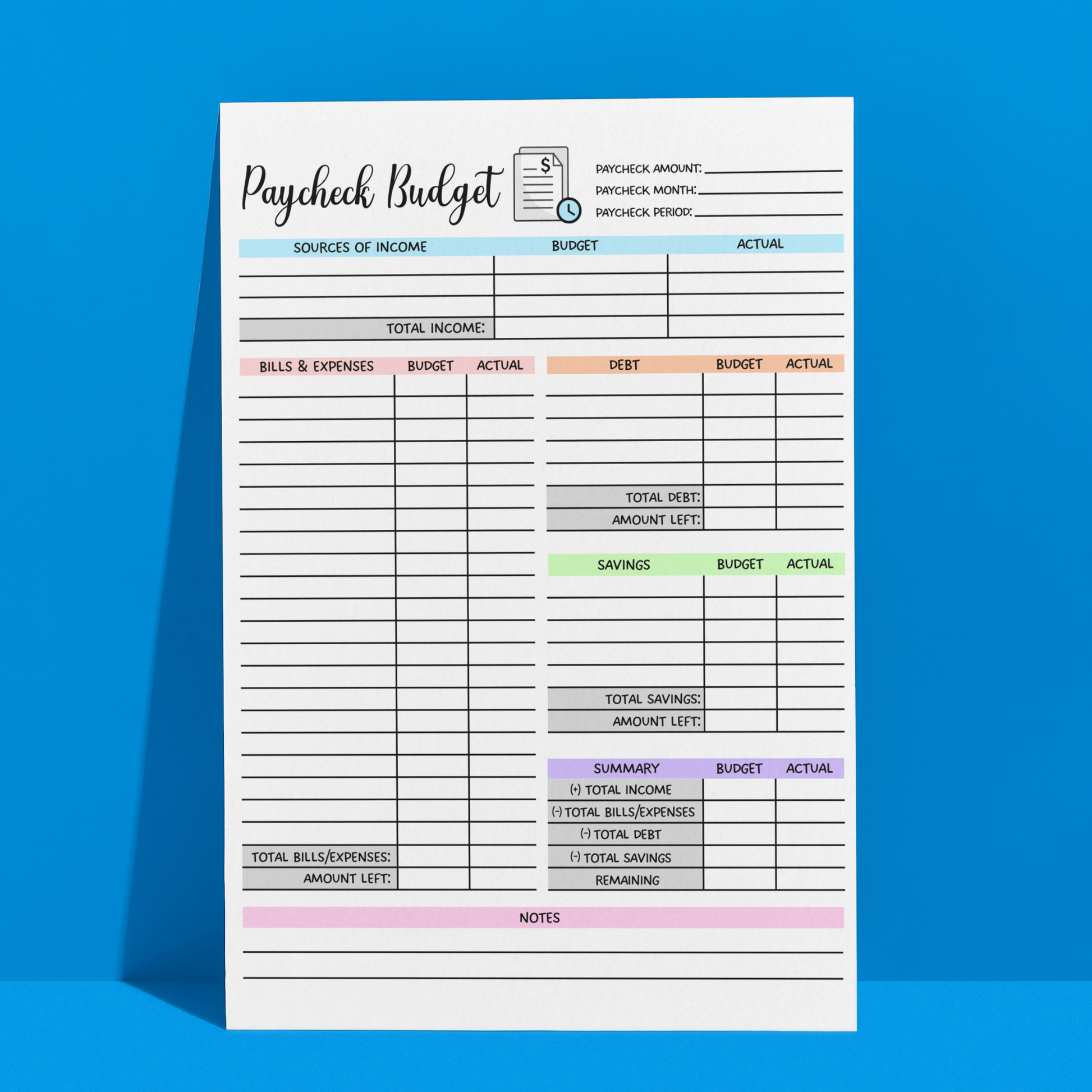 Use it according to your pay schedule - Weekly, Bi-Weekly or Monthly! This tracker gives you a clear understanding about where each dollar of your paycheck is going and has fields for income, bills & expenses, debt and savings against the actual amounts.
