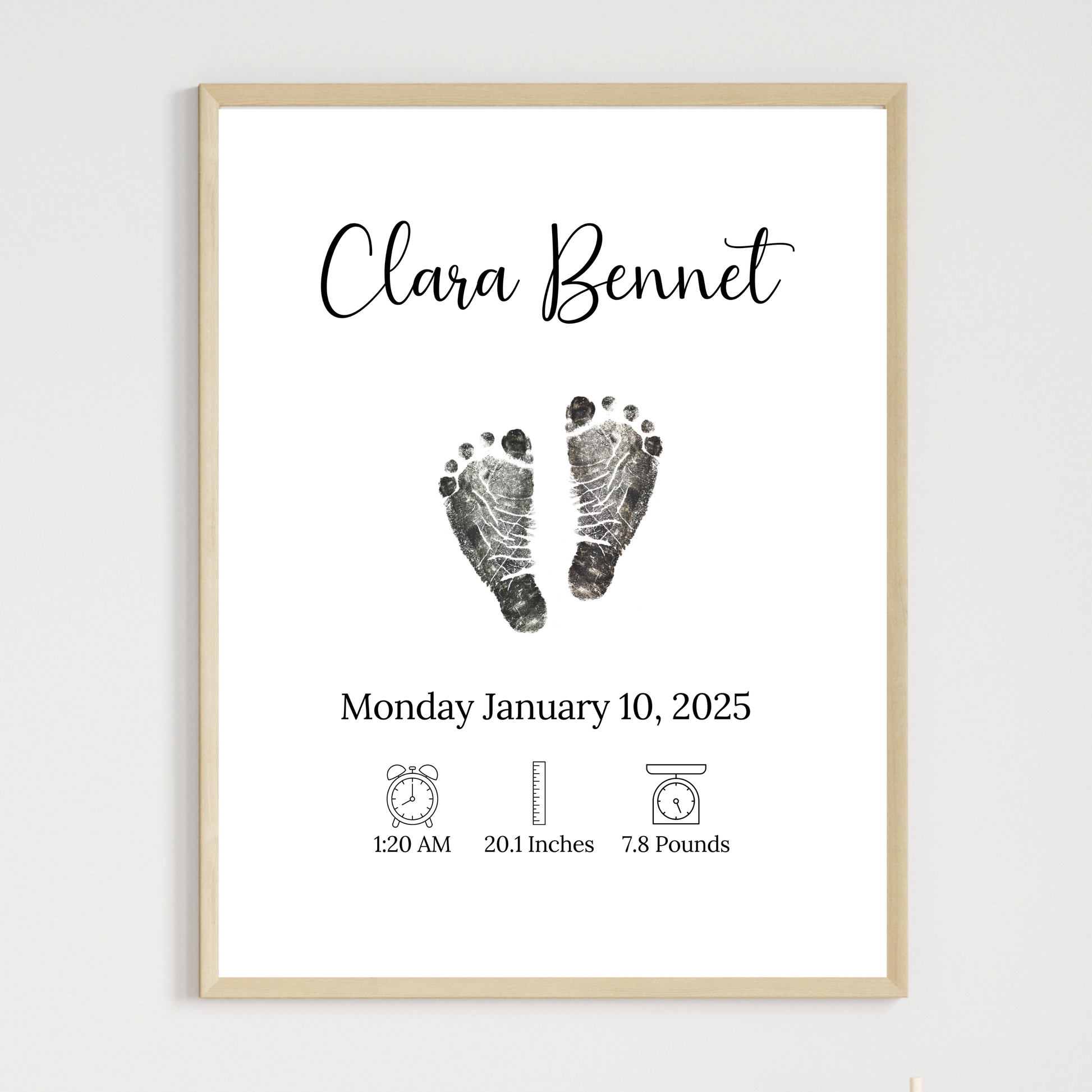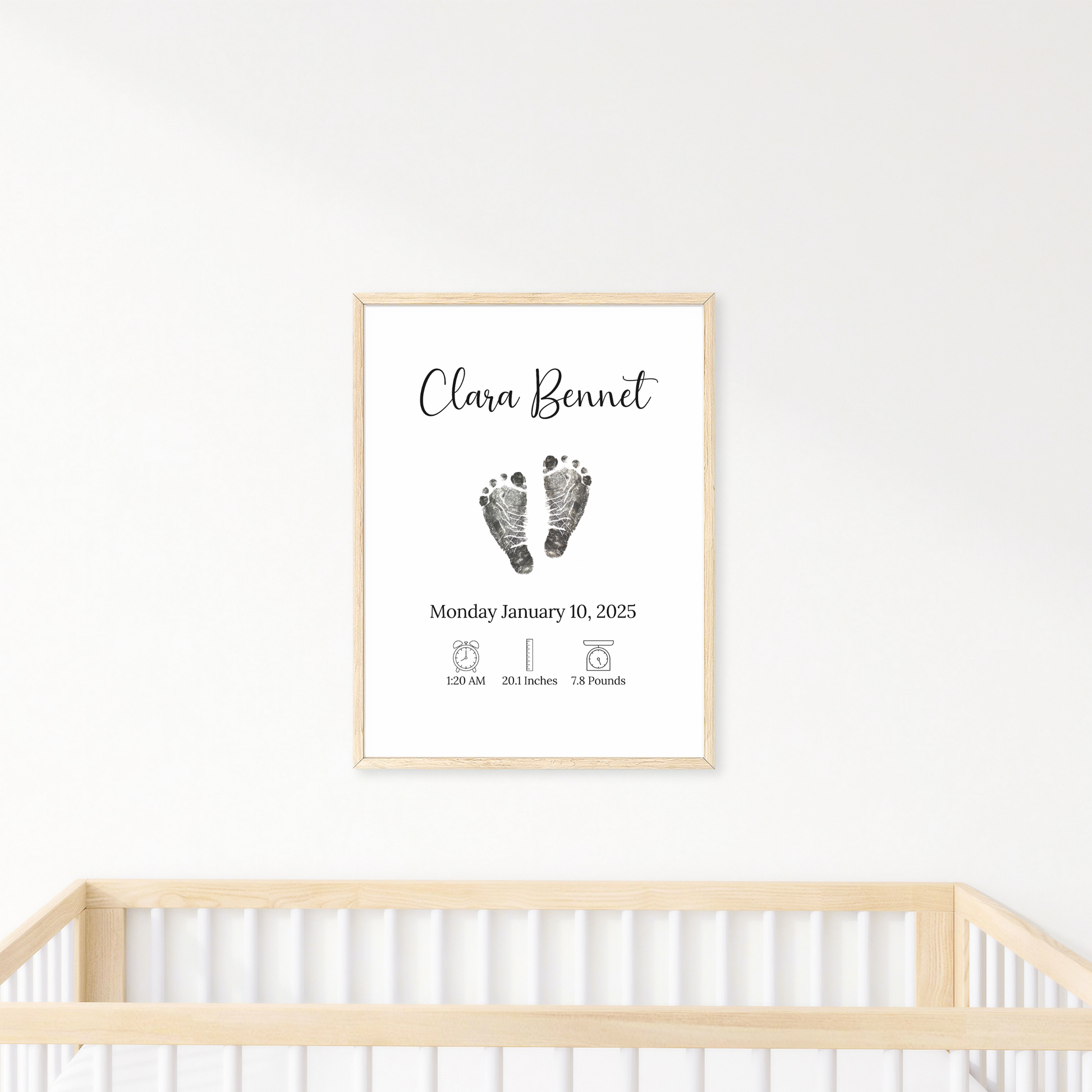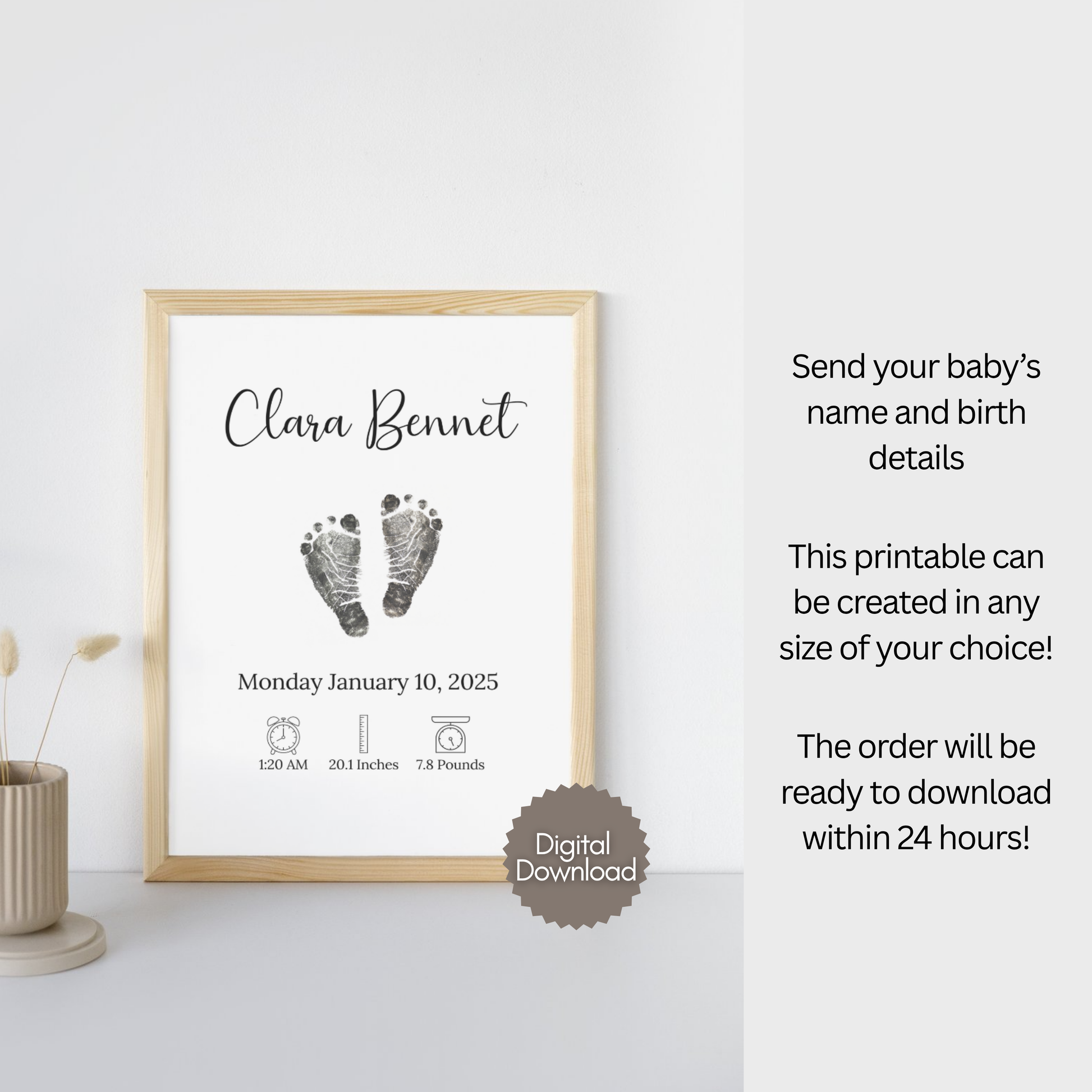 Personalized Baby Birth Announcement Printable, Newborn Footprint DIY Nursery Wall Art