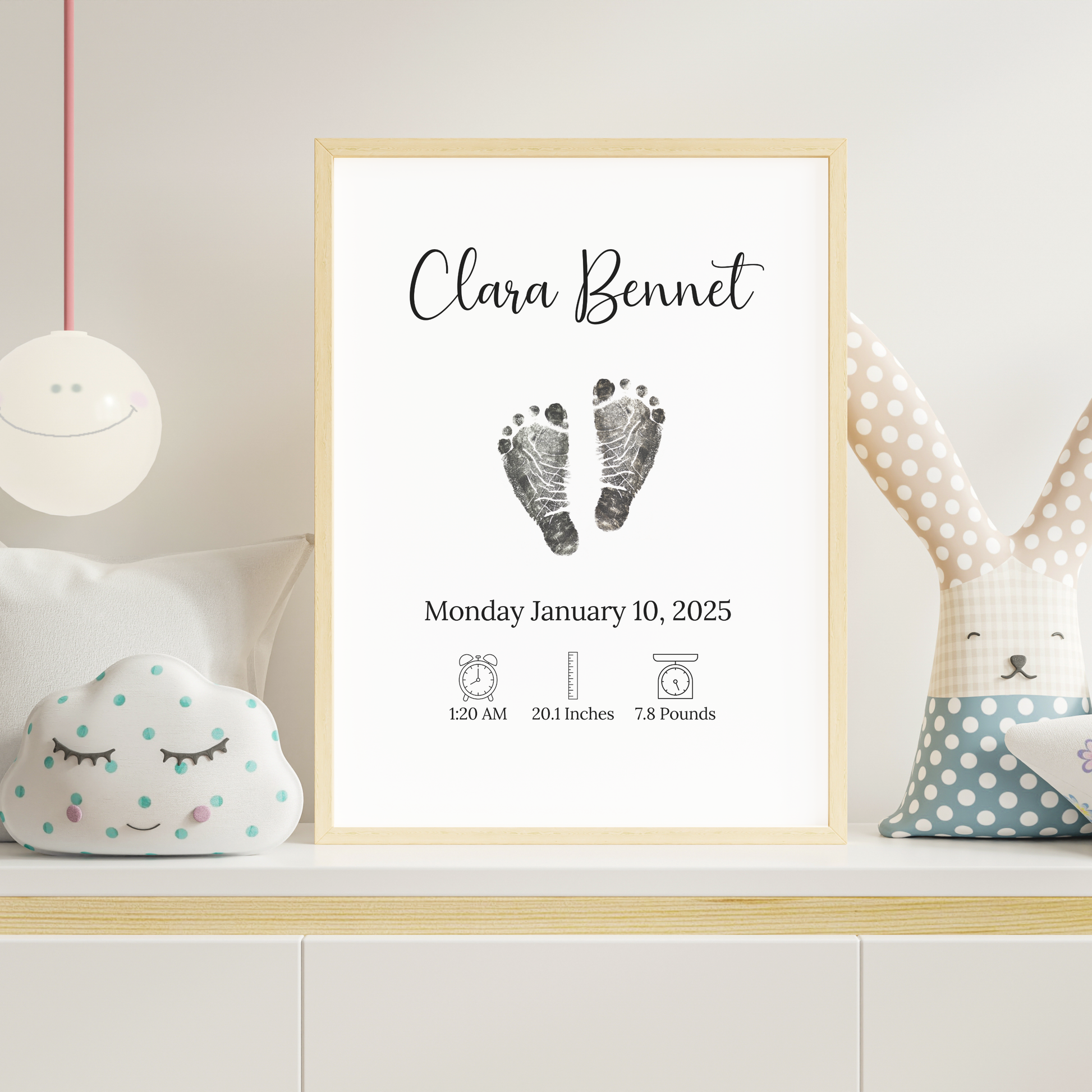 Capture the magic of your baby’s first moments with a custom birth print that’s as beautiful and unique as they are. A footprint-sized memory made with love 👣
