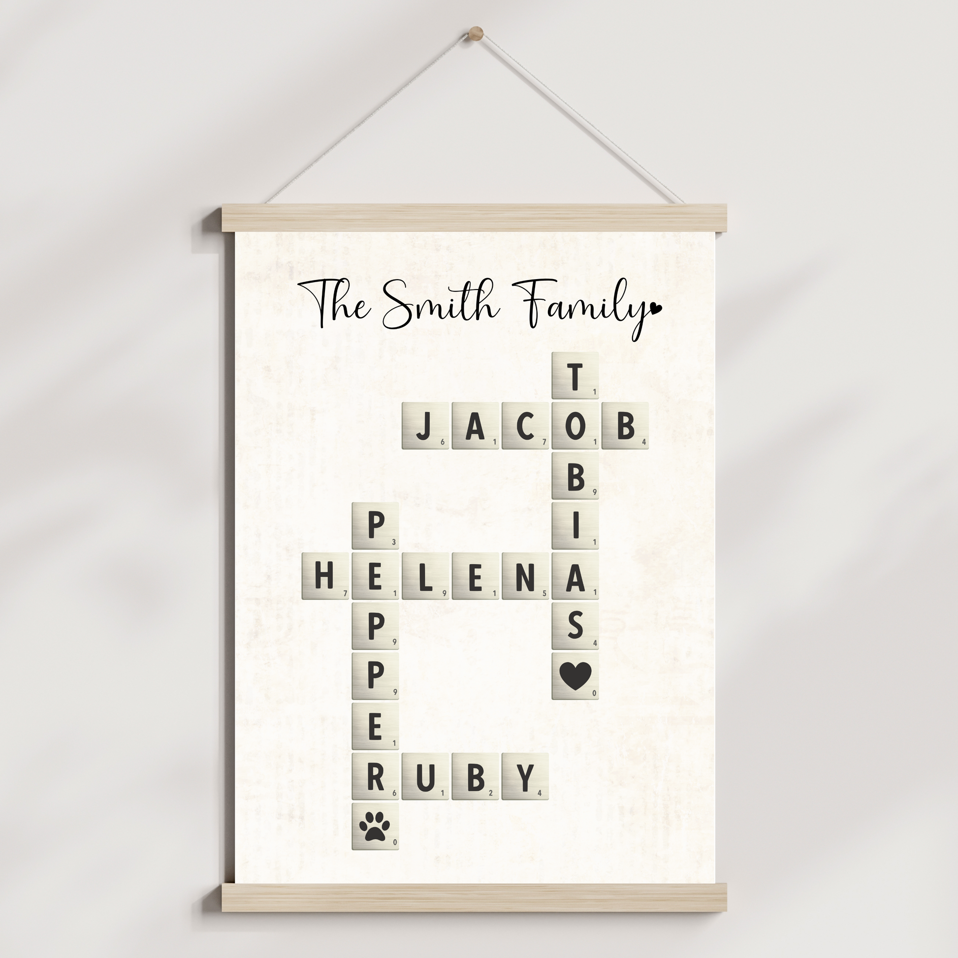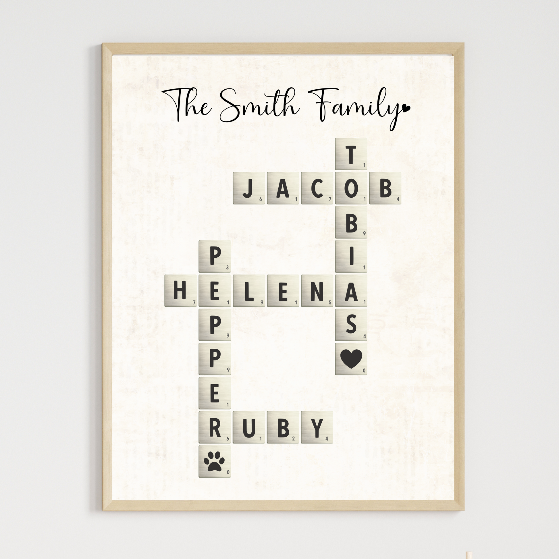 Personalized family name crossword art, scrabble tile name print, custom name puzzle gift, printable family sign with pets, DIY digital download family wall art, family name printable decor, anniversary gift for wife mom grandma, best friend name sign, custom couple crossword print, valentines wedding birthday gift idea, personalized home decor for her