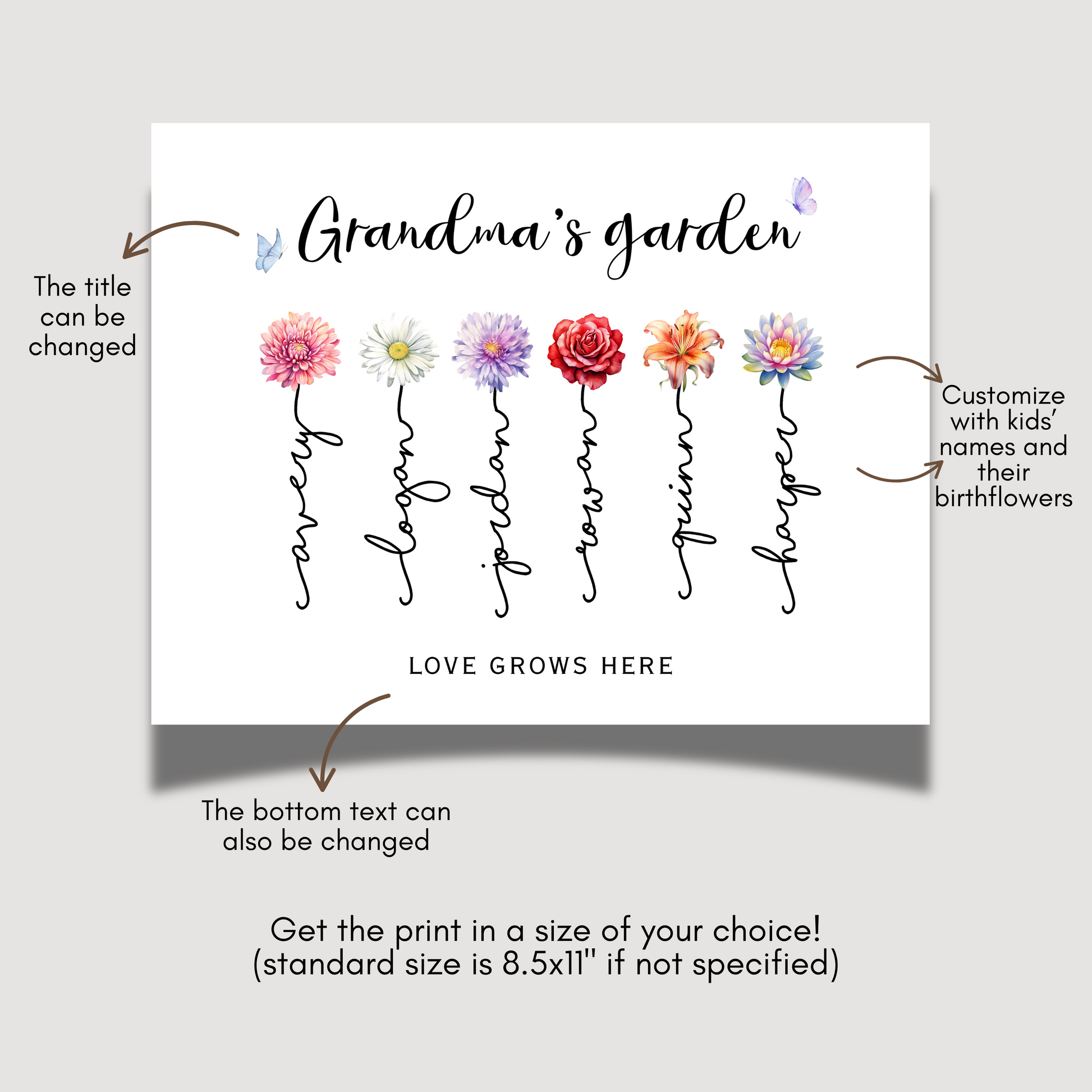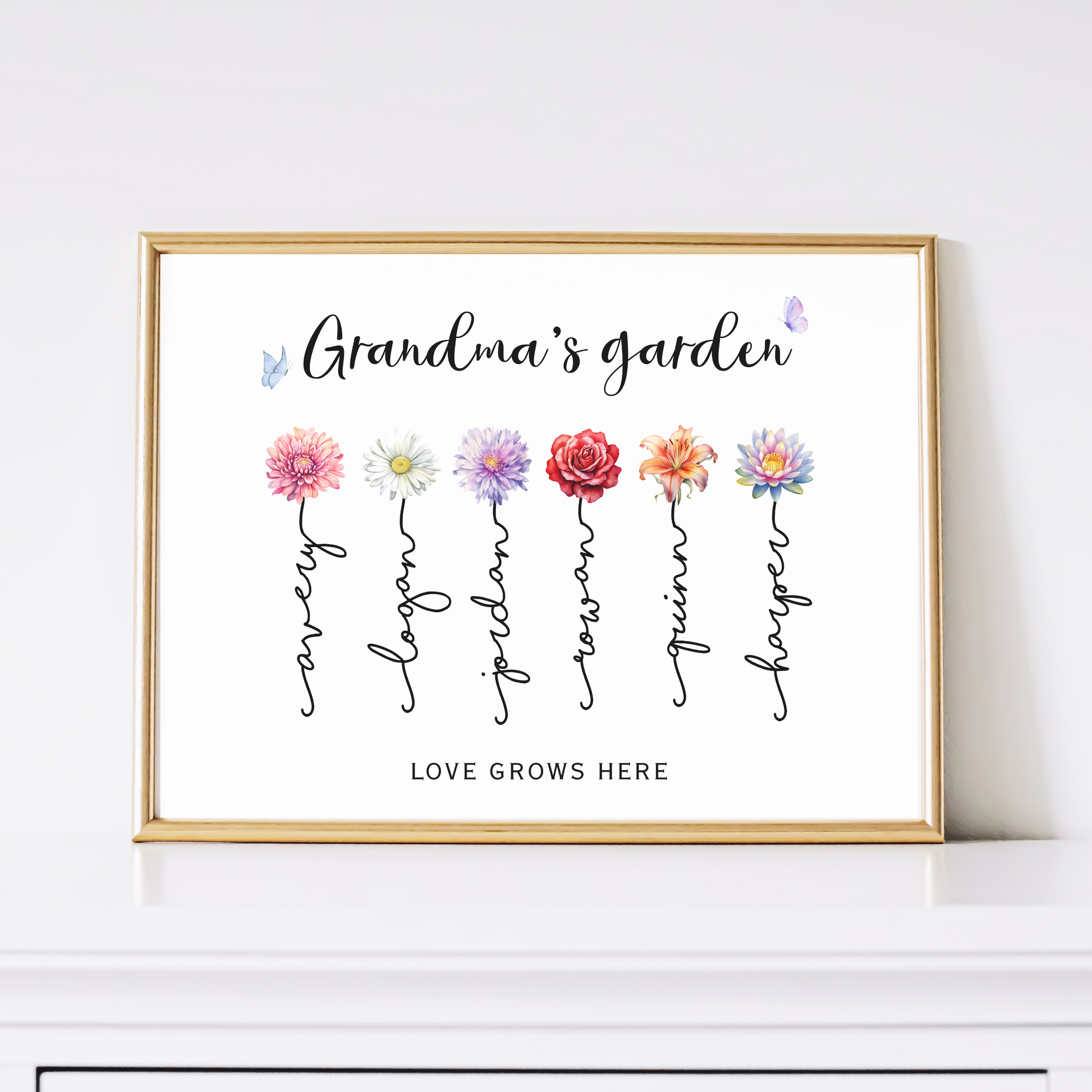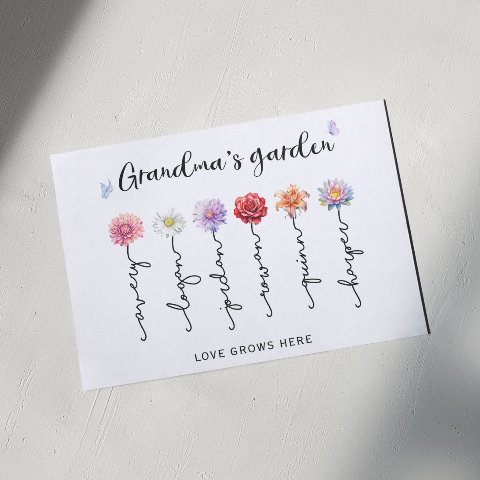 Celebrate the matriarch of your family with a print that blossoms with love, because nothing says “we love you” like her very own personalized garden of grandkids! 🌸