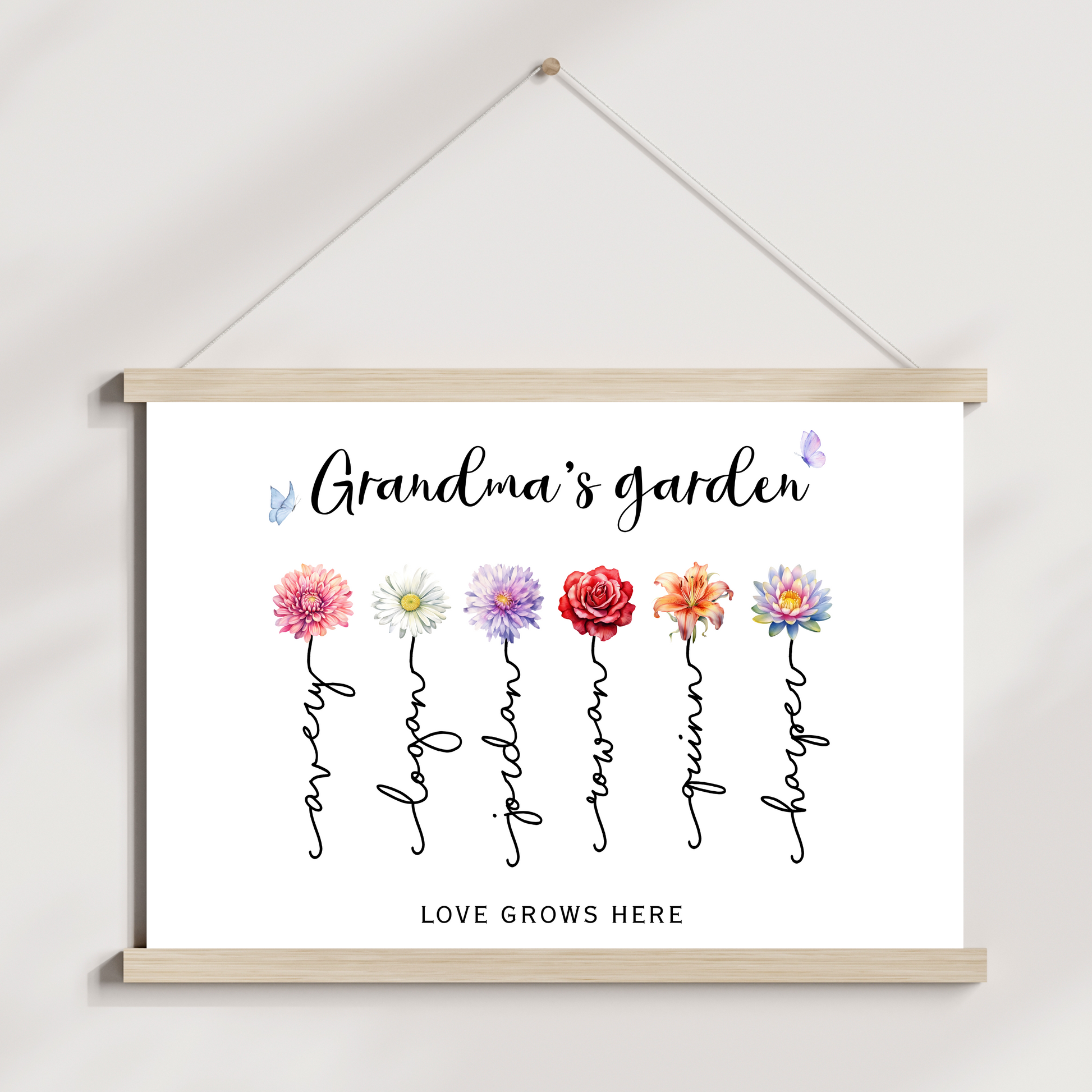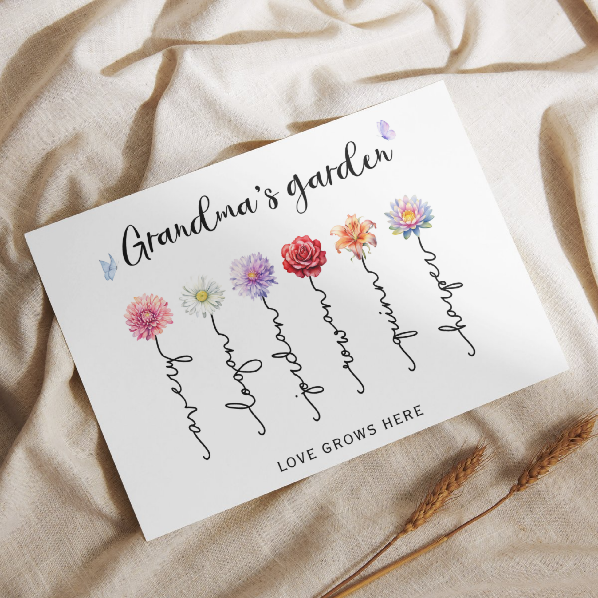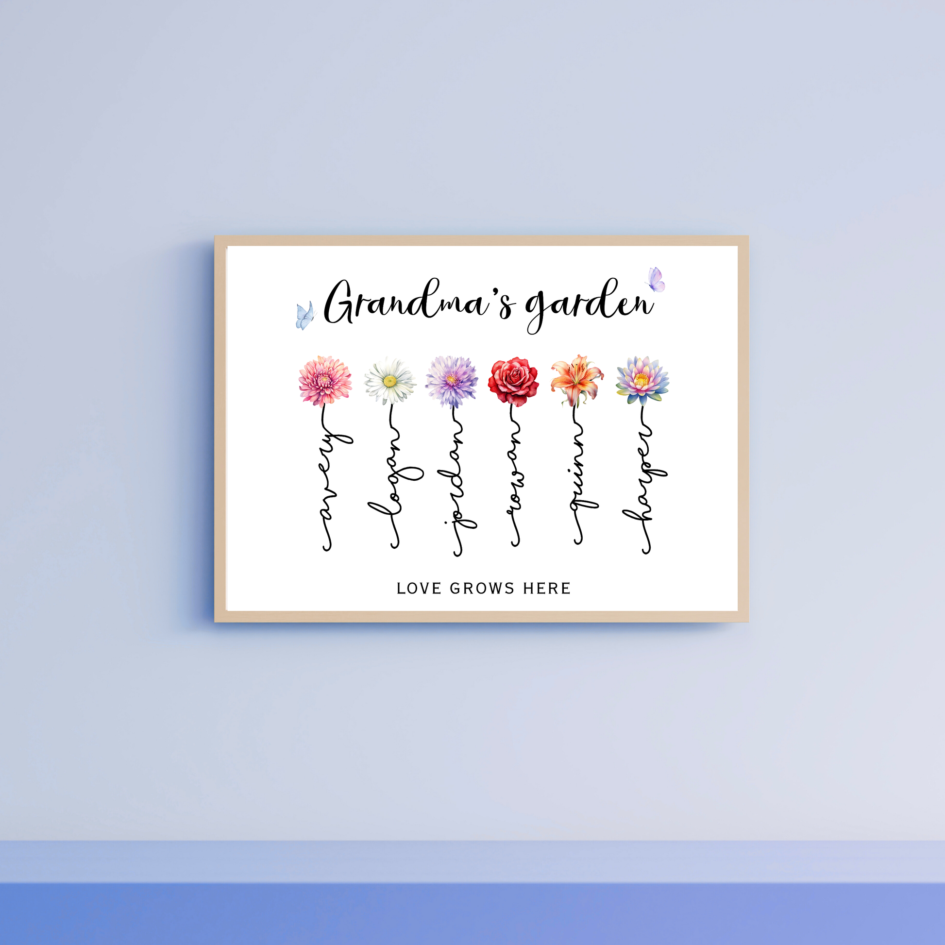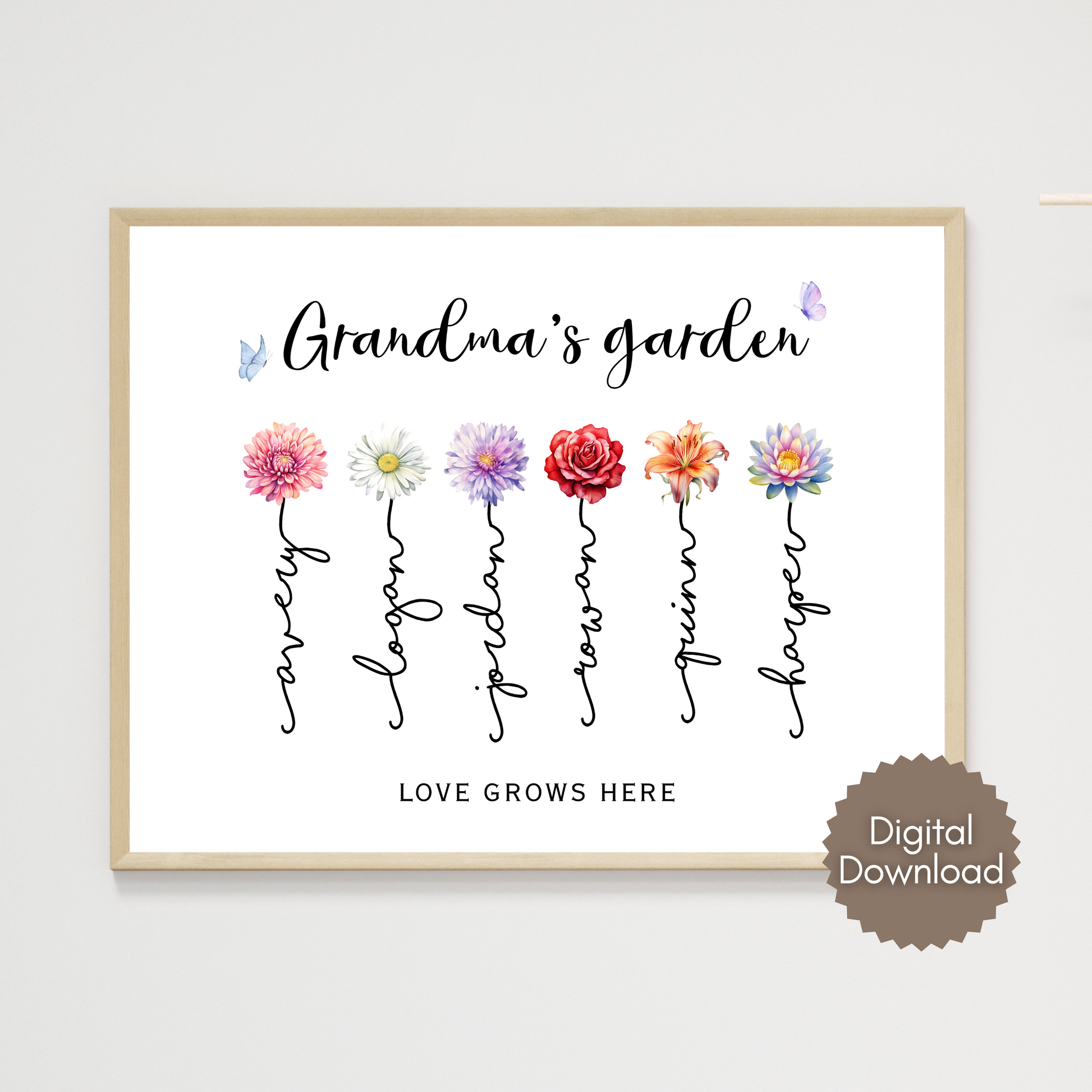 Celebrate the matriarch of your family with a print that blossoms with love, because nothing says “we love you” like her very own personalized garden of grandkids! 🌸