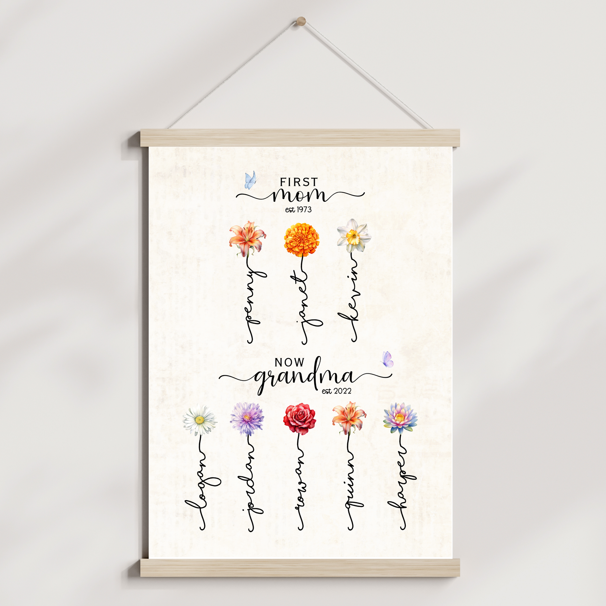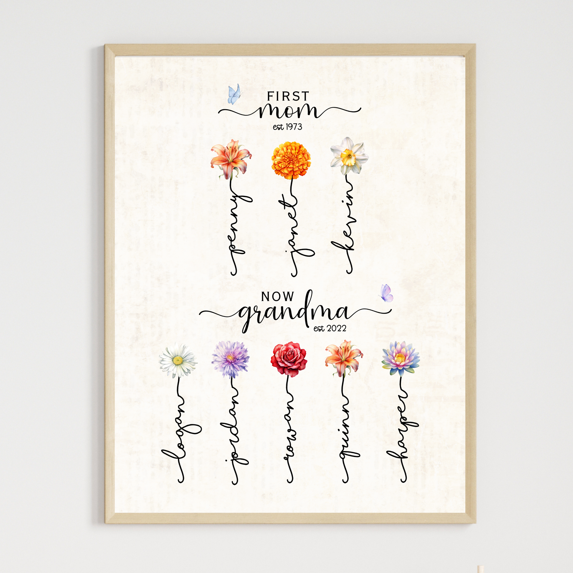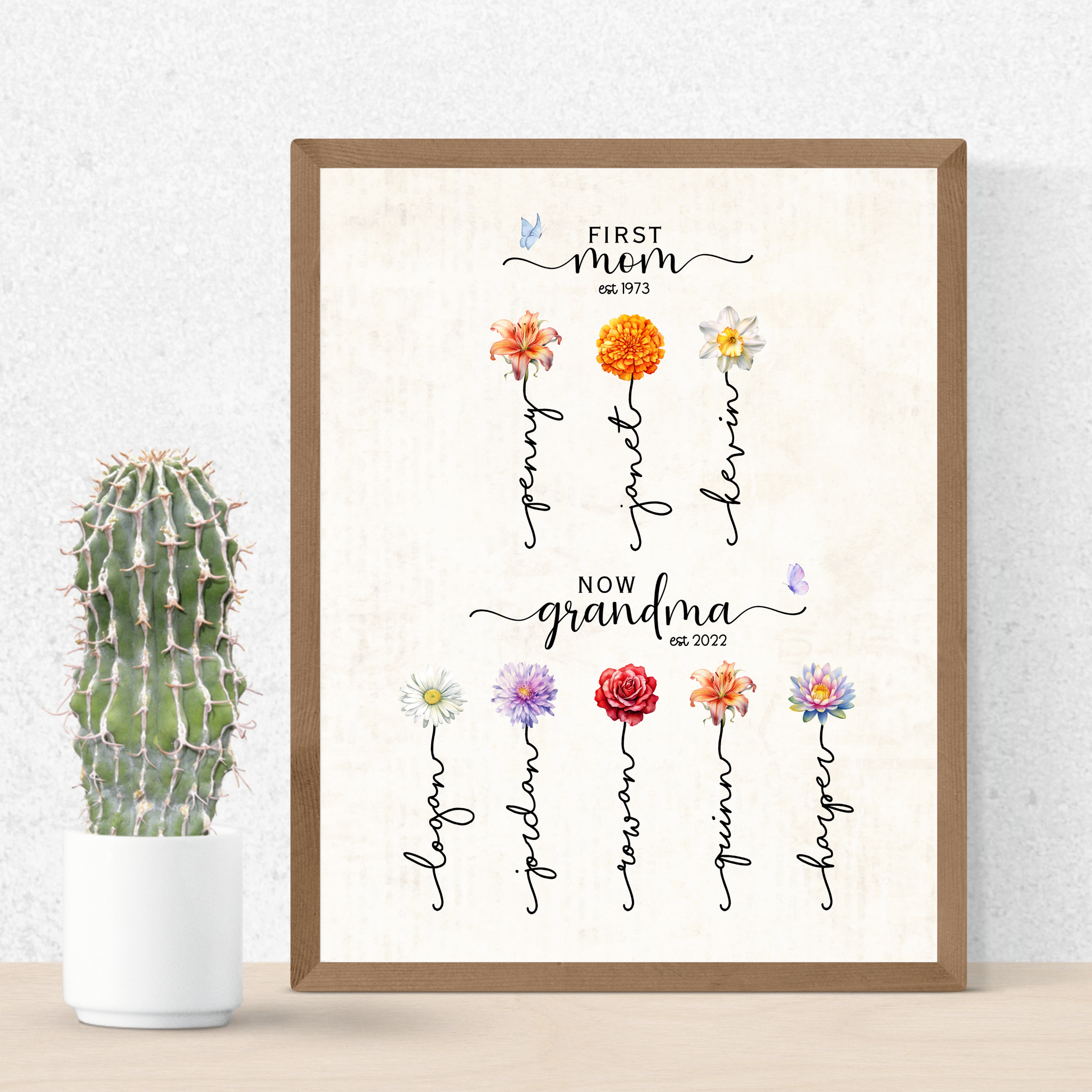 Celebrate the beautiful journey from motherhood to grandmother-hood with this Custom Birth Flower Wall Art Printable — a meaningful and heartfelt keepsake that honors both her children and grandchildren.