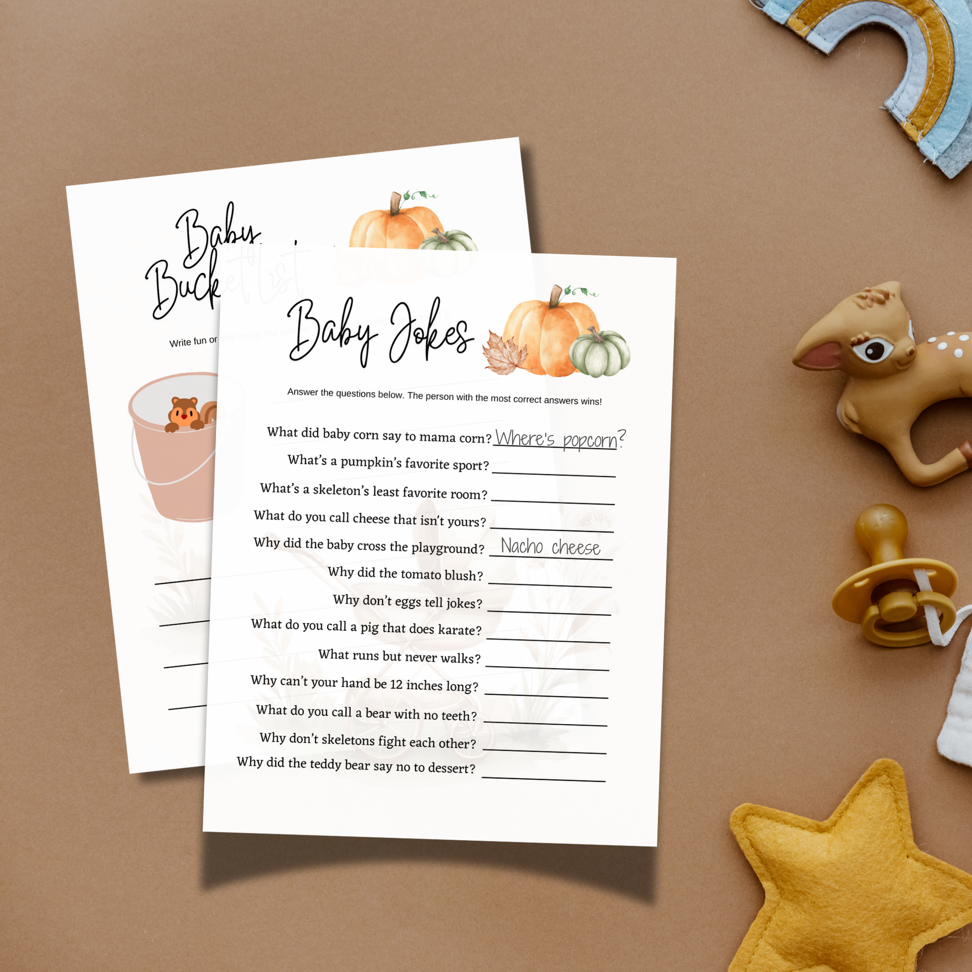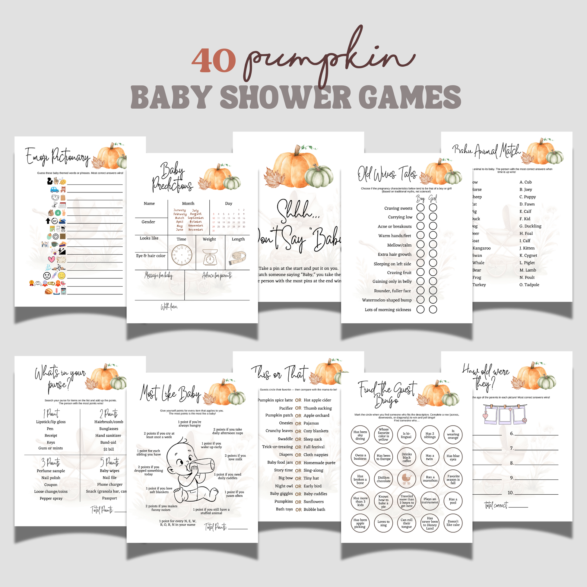 Easy to print and play, this bundle includes 40 cute and engaging baby shower activities designed to keep both adults and families entertained. With a pumpkin theme that doubles as fall party décor, it’s a stylish and affordable way to create lasting memories for mom-to-be and guests alike. 🍂