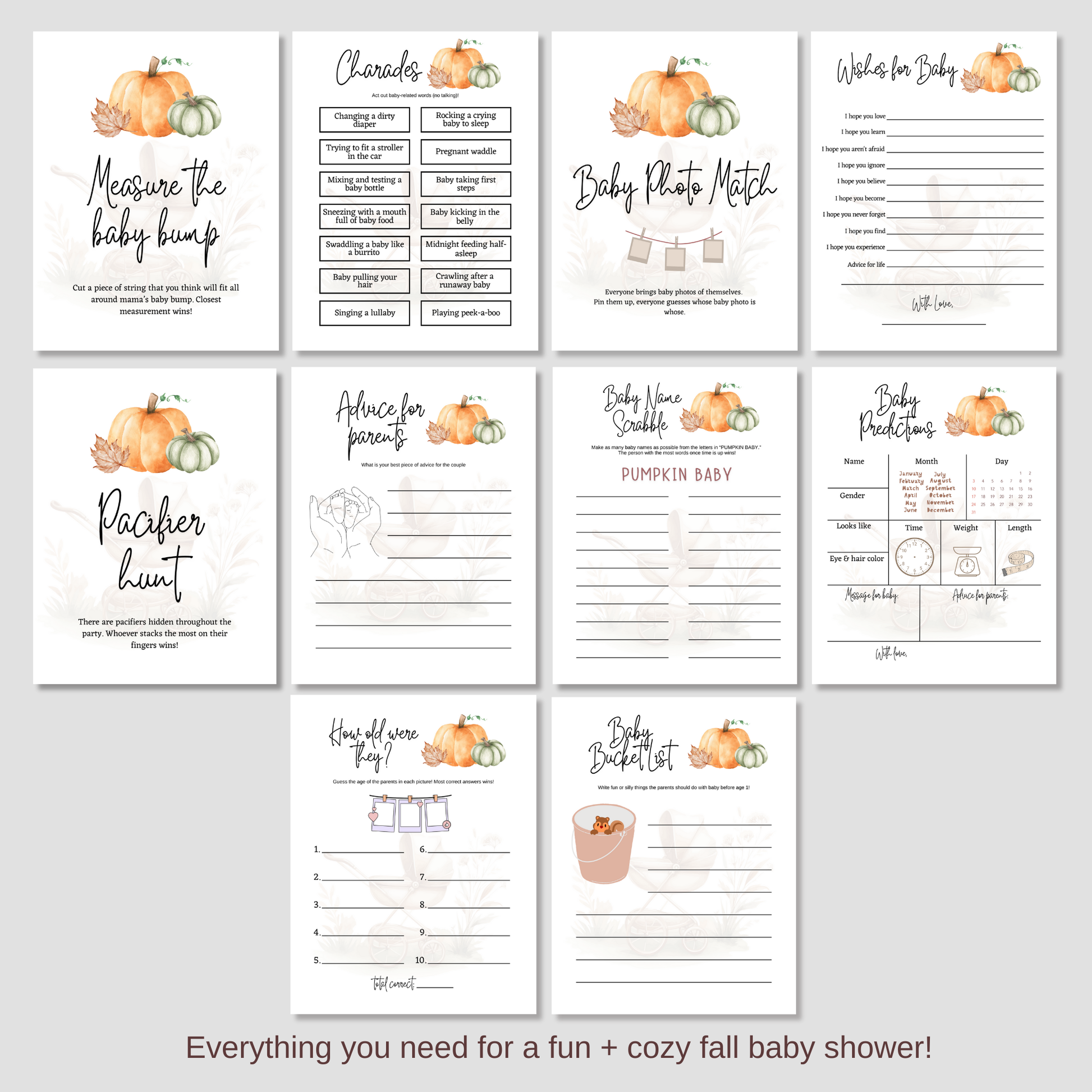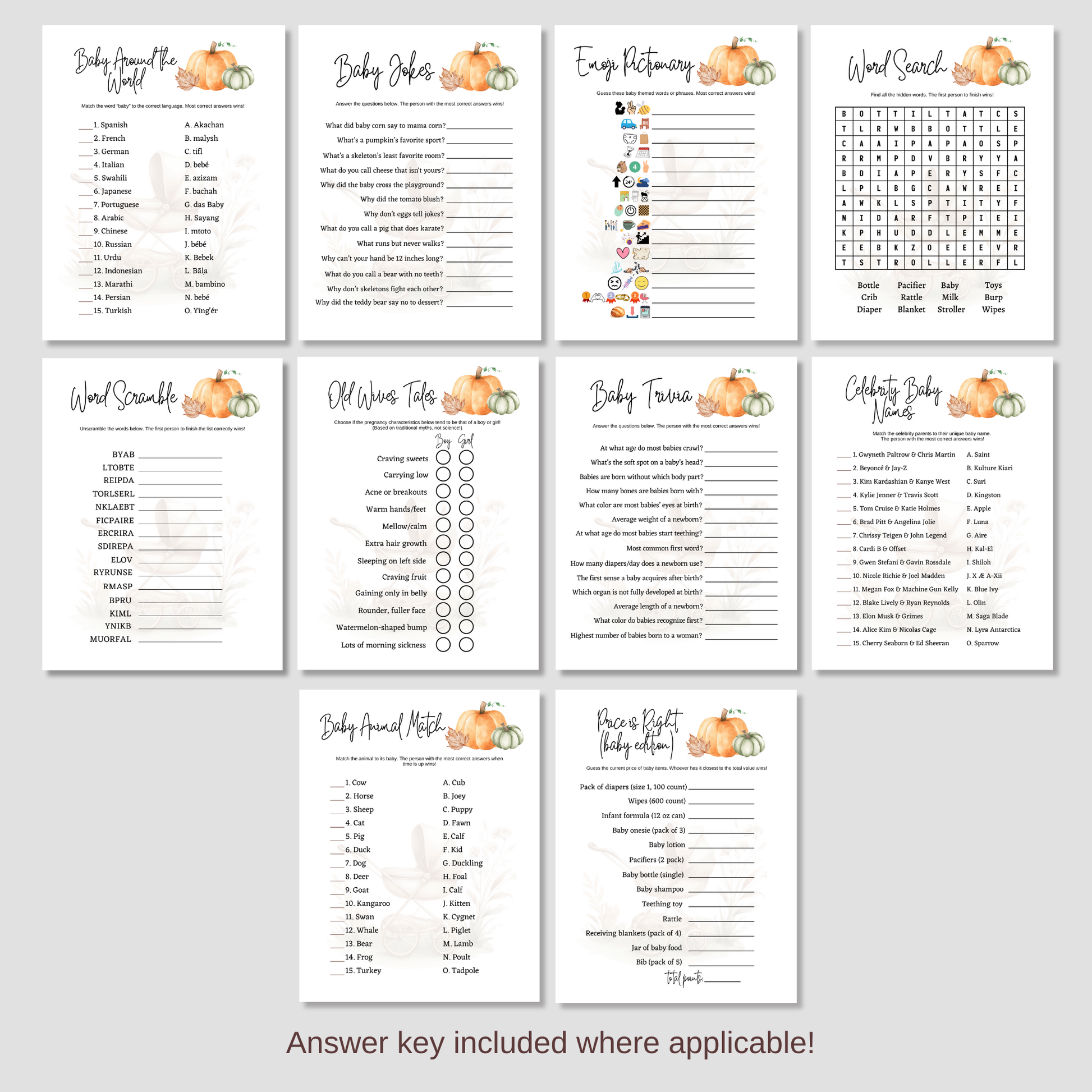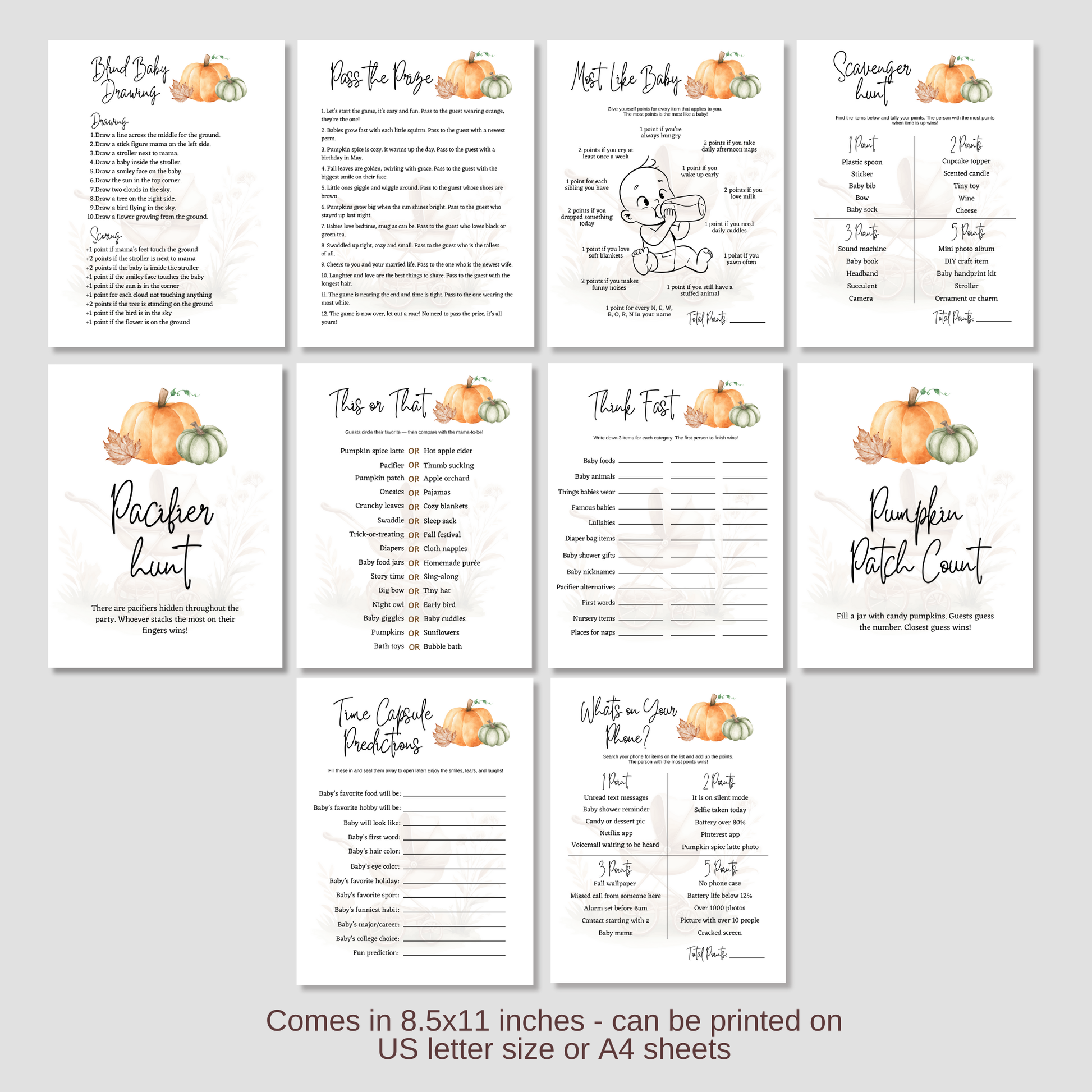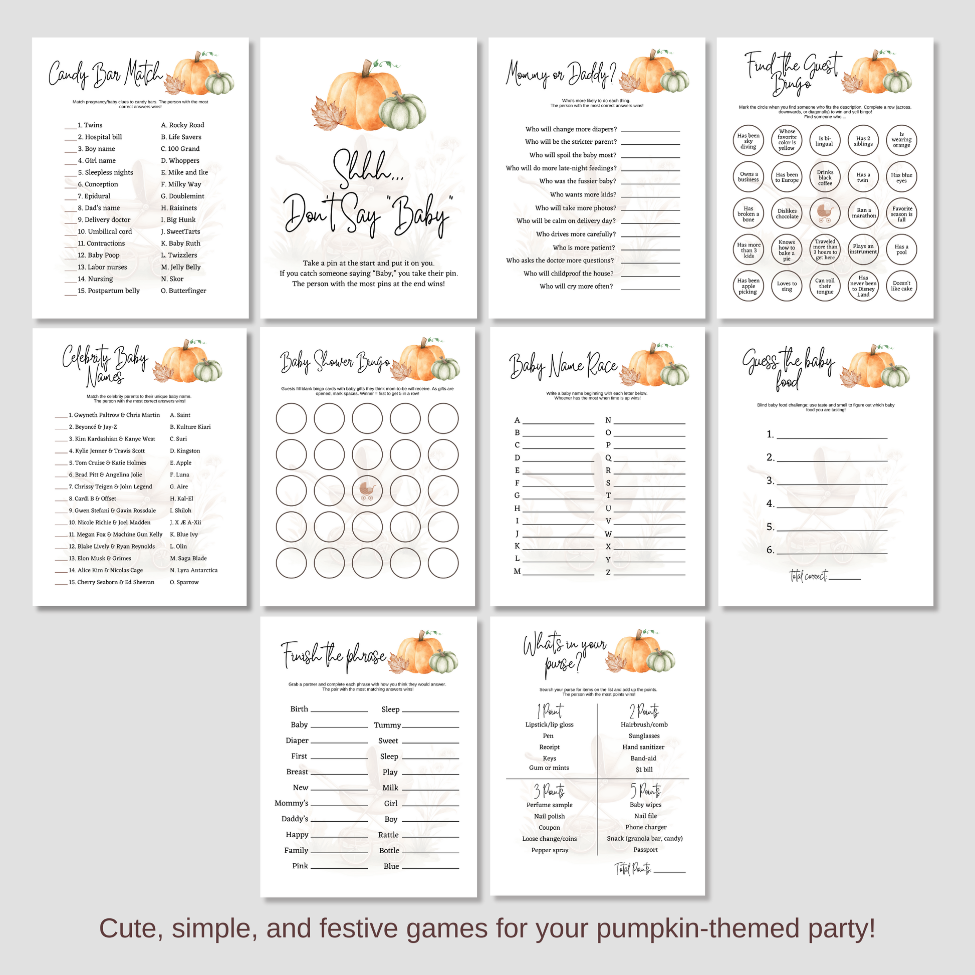 Pumpkin Baby Shower Games Printable, Fall Party Activity