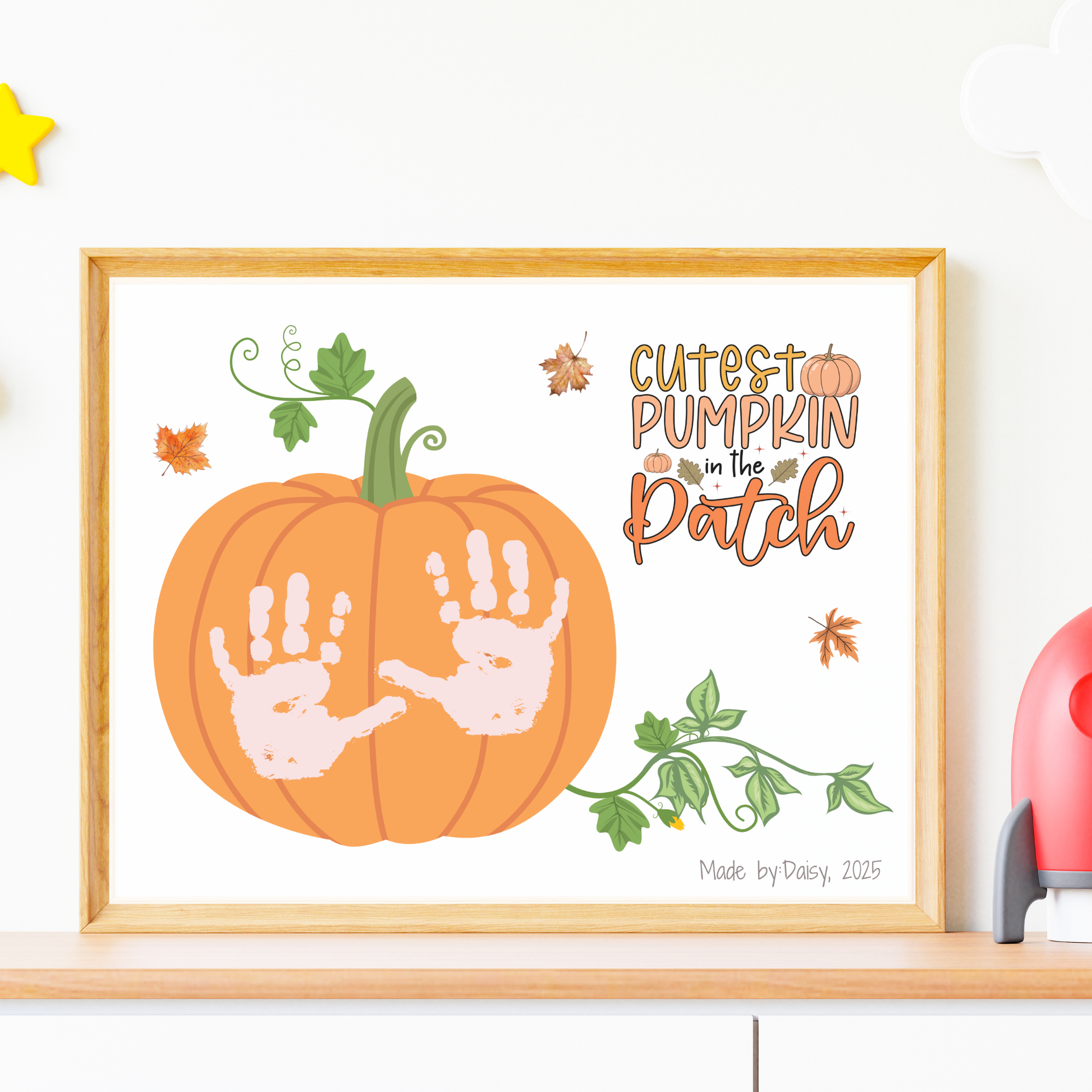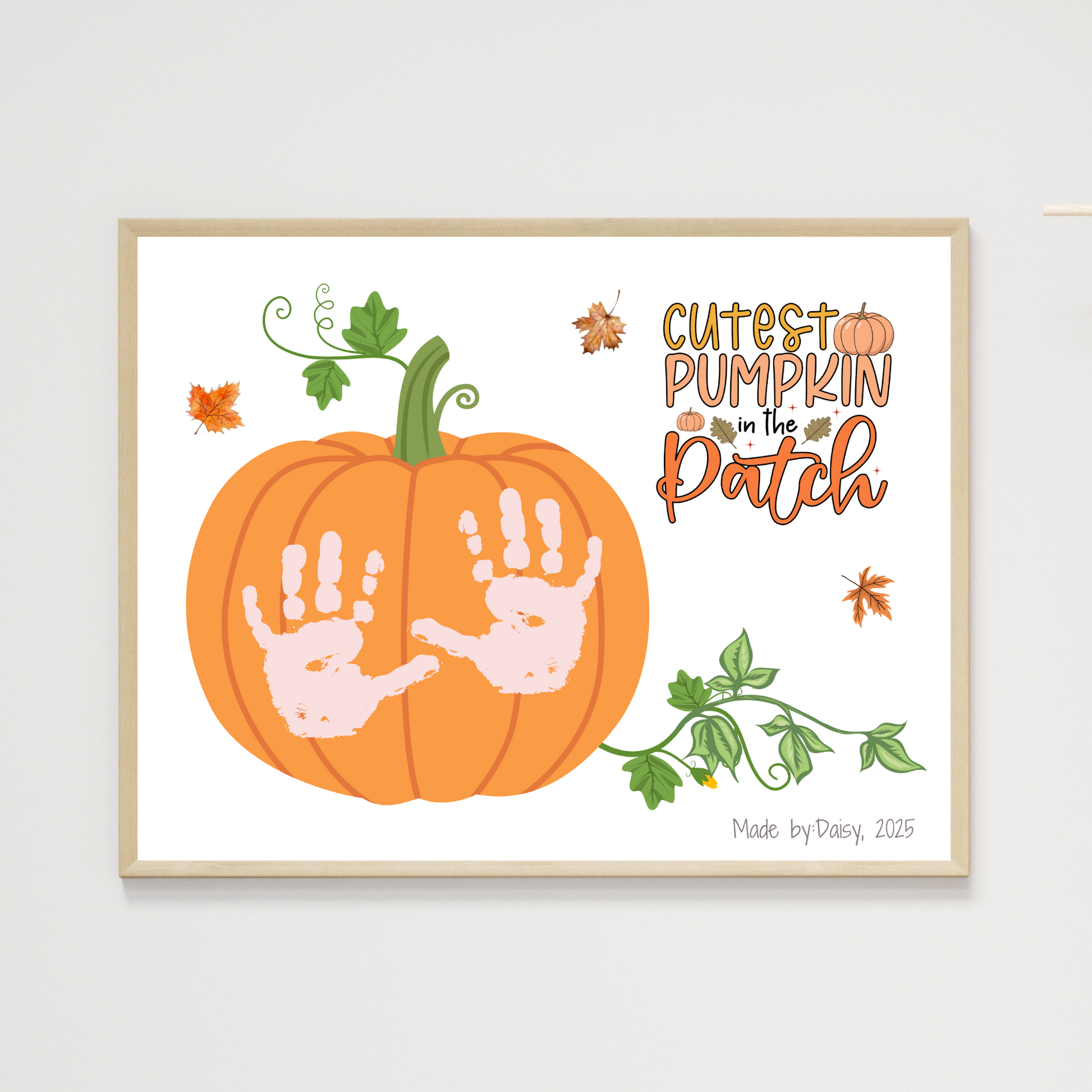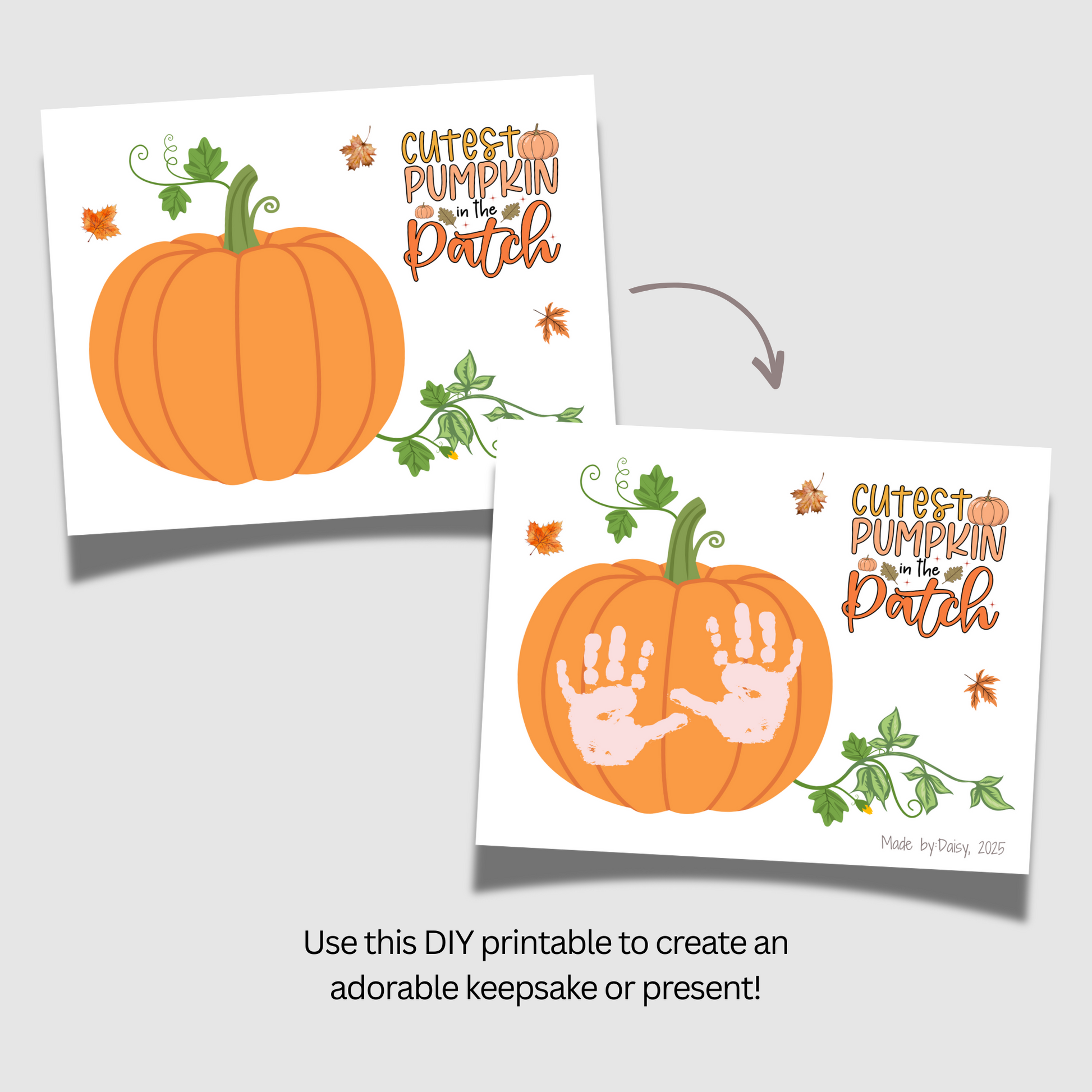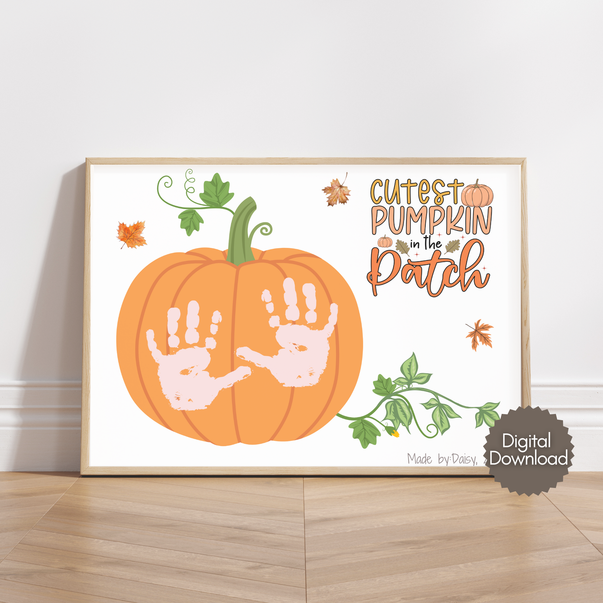 Cutest Pumpkin in the Patch Handprint Craft Printable, Fall Footprint Wall Art Template Thanksgiving Decor Personalized Gift Cute Seasonal DIY Activity for Kids, Baby, Toddler Homeschool Project Keepsake đ