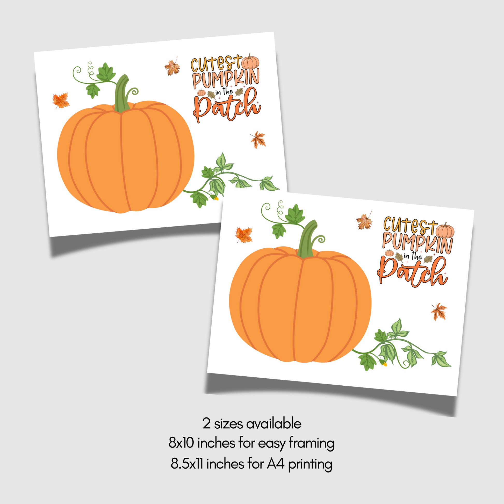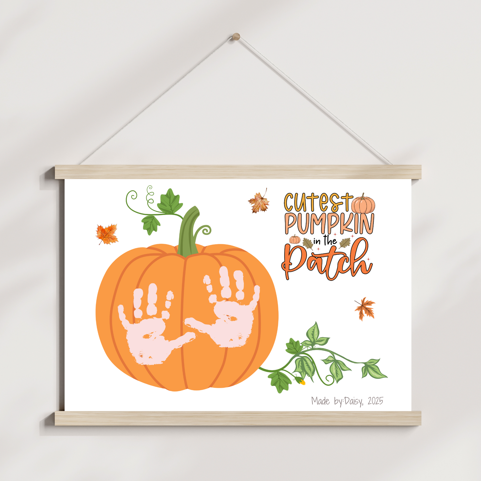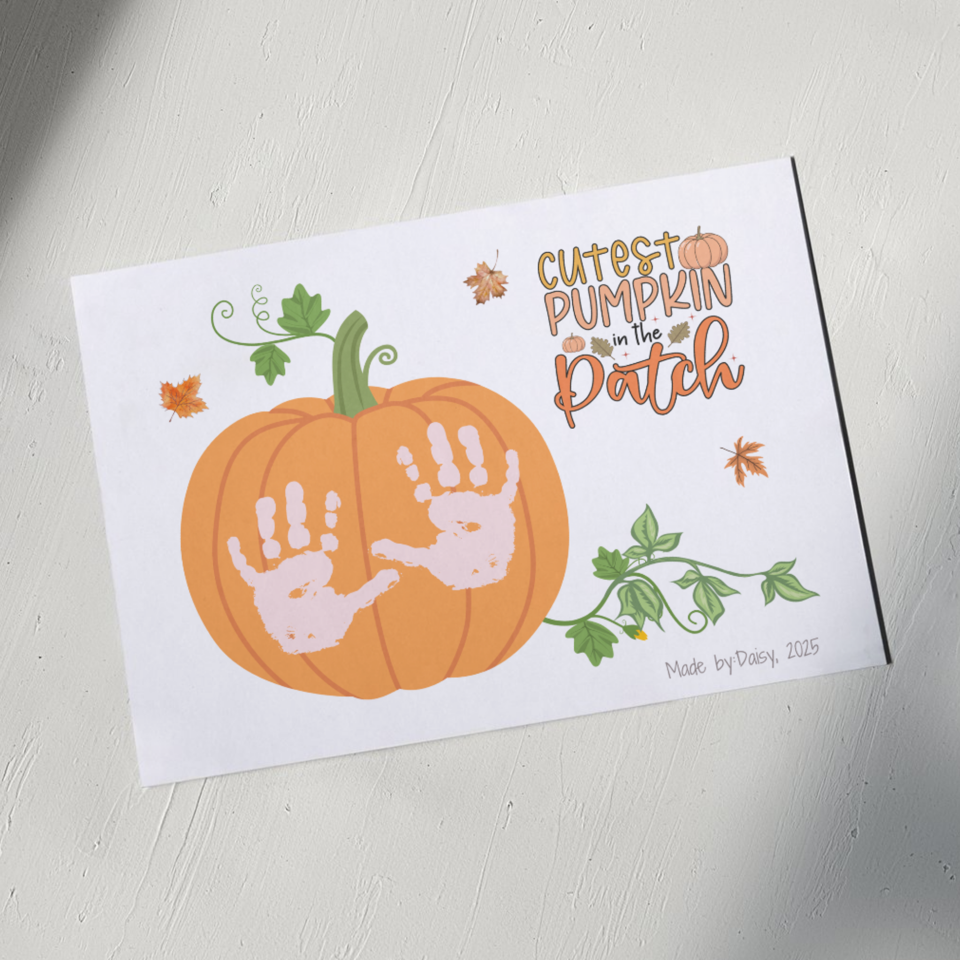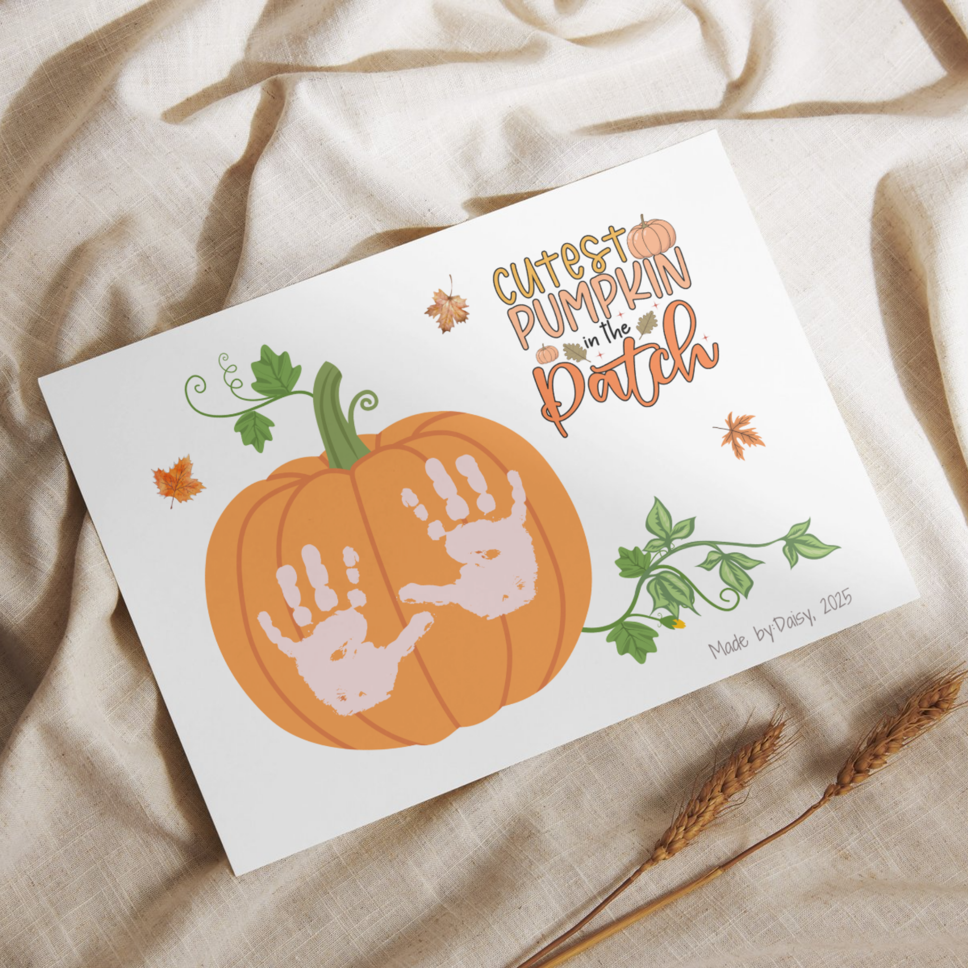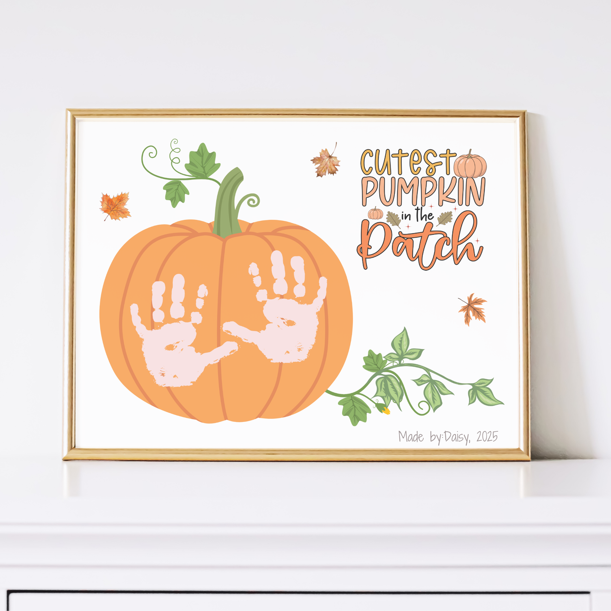 Cutest Pumpkin in the Patch Handprint Craft Printable, Fall Footprint Wall Art Template Thanksgiving Decor Personalized Gift Cute Seasonal DIY Activity for Kids, Baby, Toddler Homeschool Project Keepsake đ