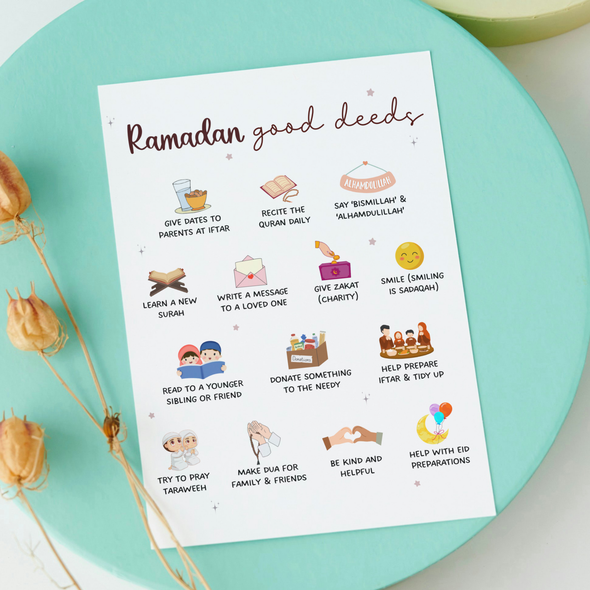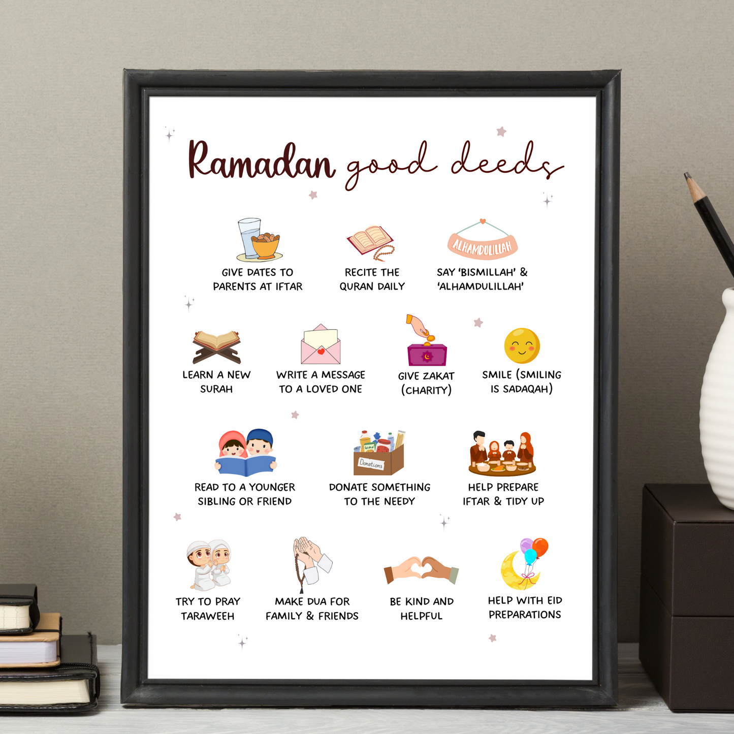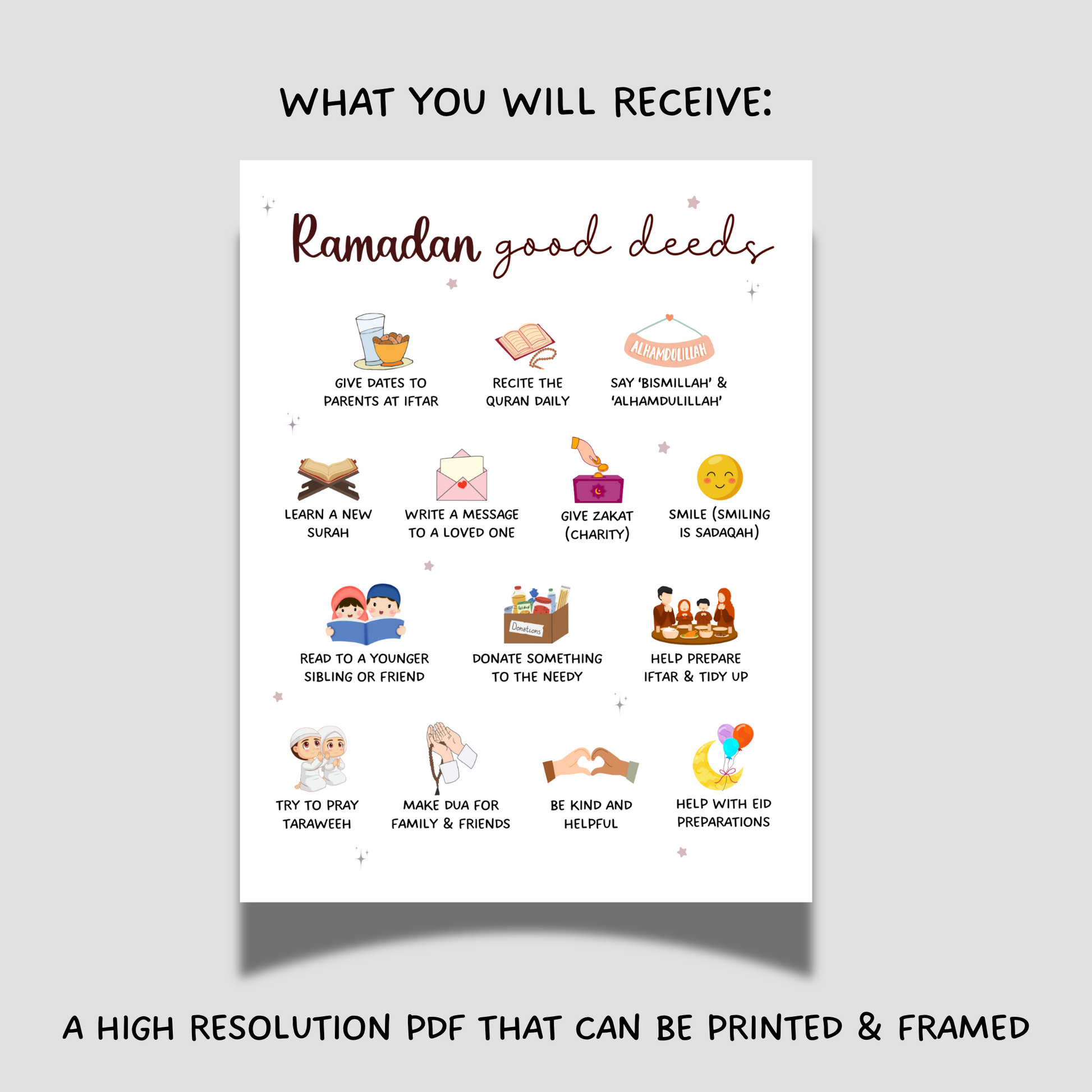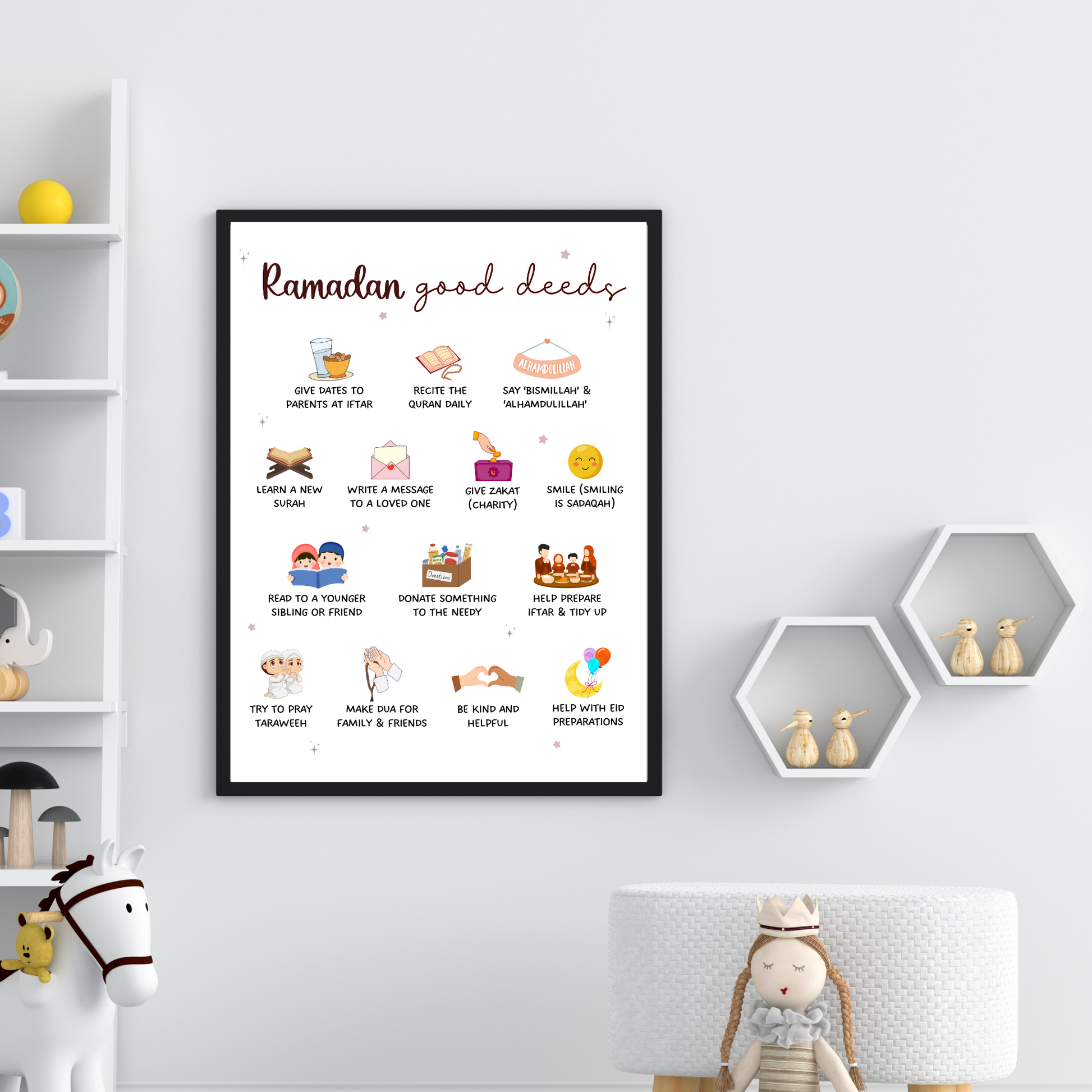 Ramadan Good Deeds Poster Printable, Islamic Wall Art For Kids
