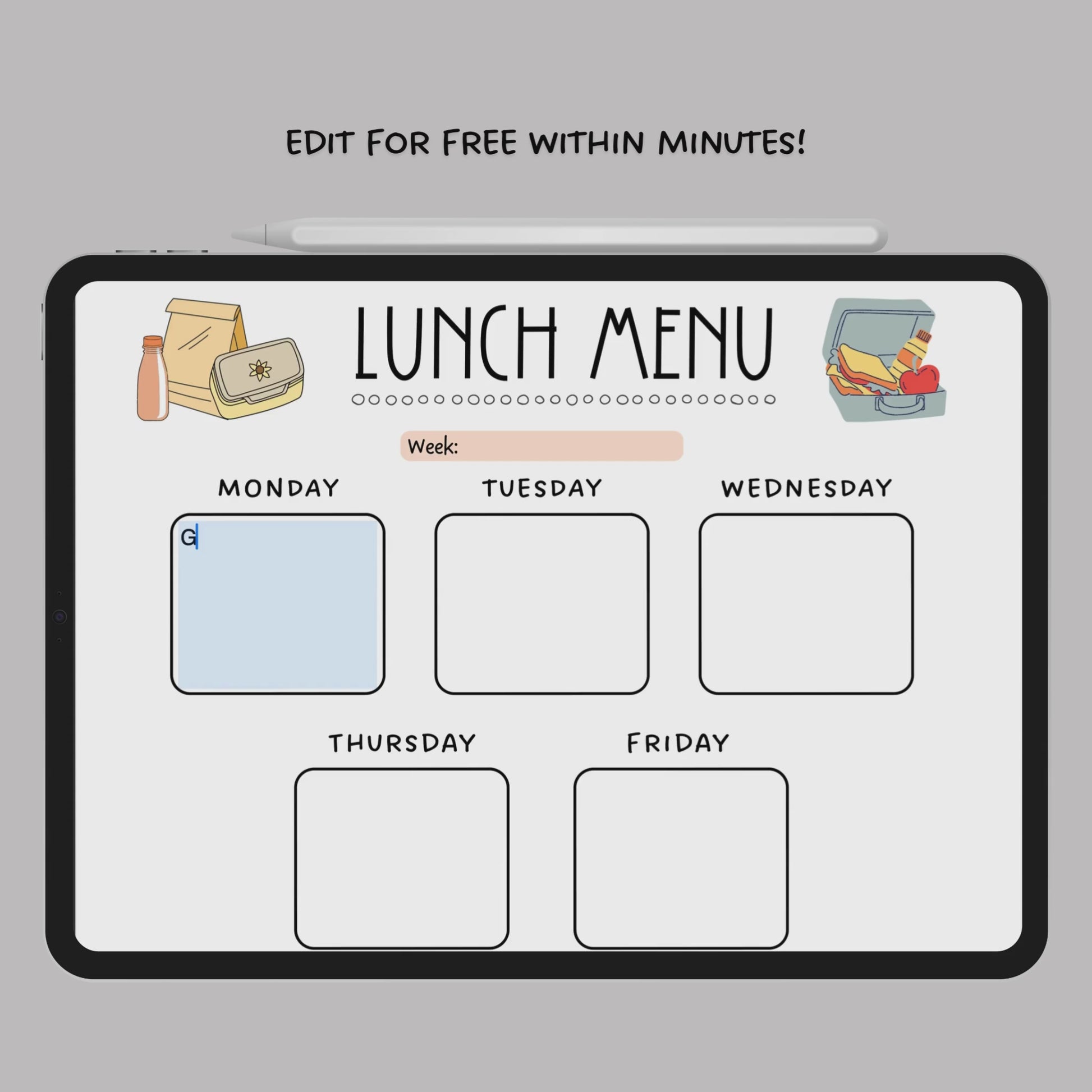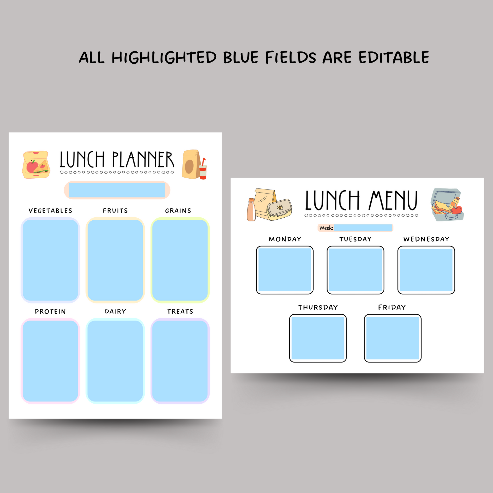 School Lunch Meal Planner Printable, Editable Lunch Menu Kids