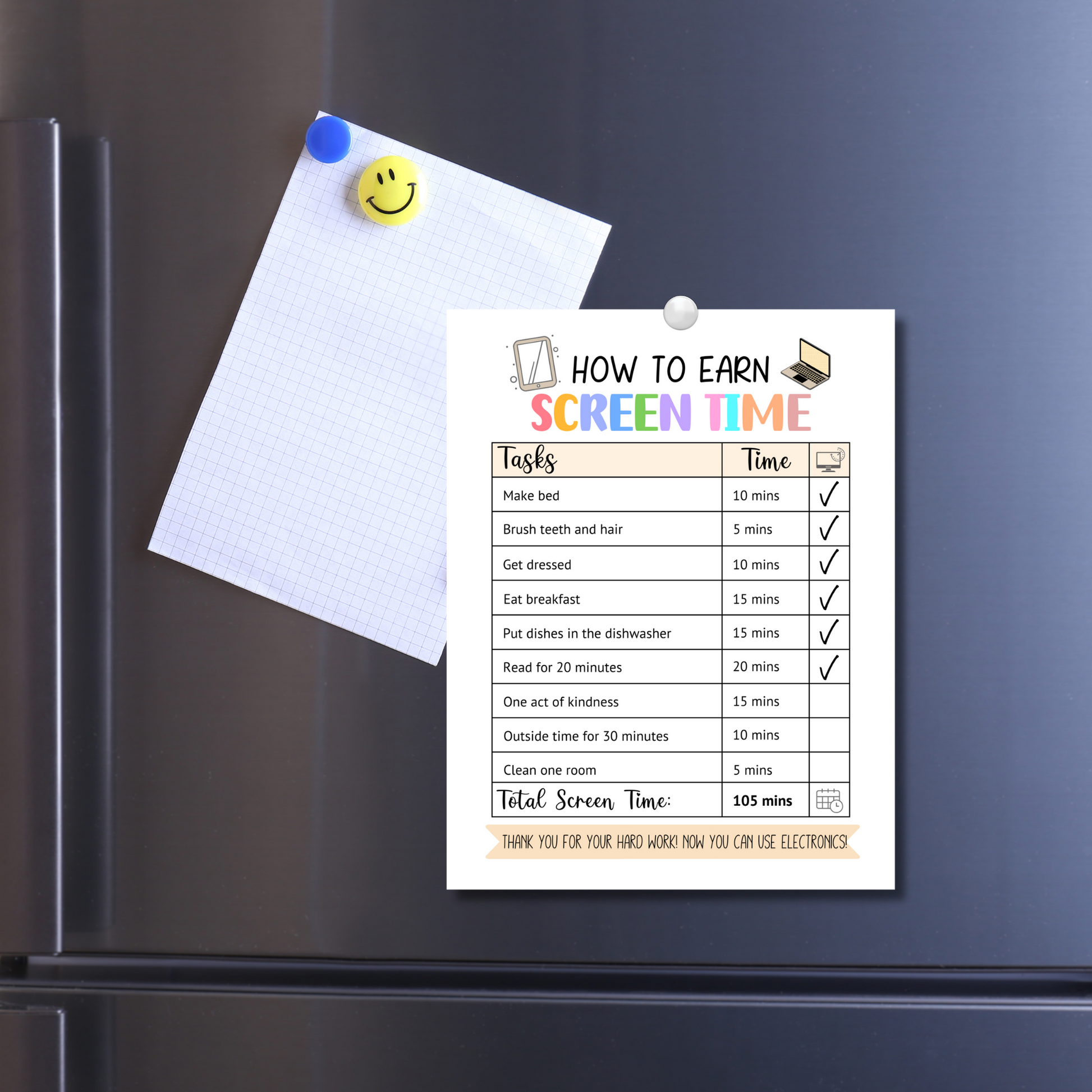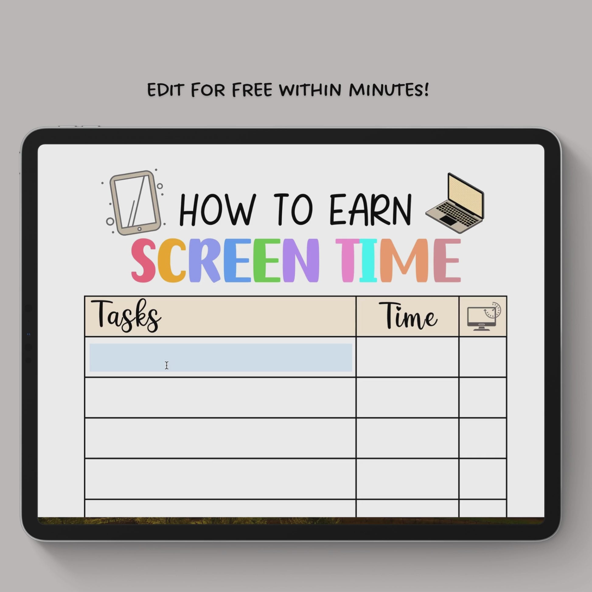 This personalized screen time chart checklist is an editable printable PDF and instant digital download. It is perfect to help kids learn about the value of hard work while earning screen time.