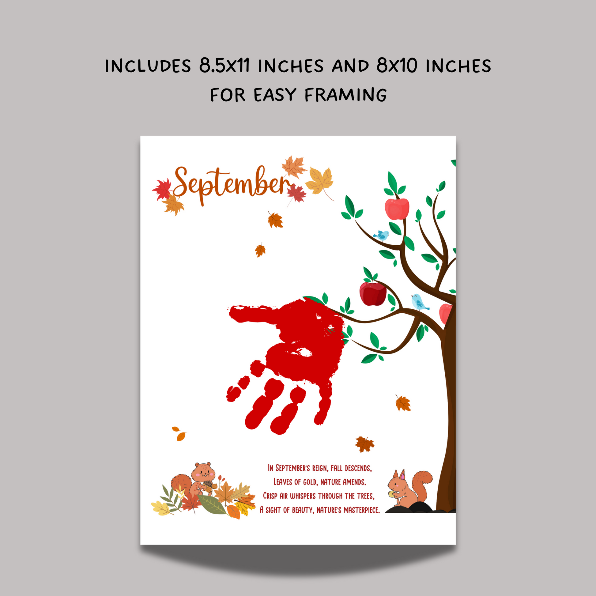 Celebrate your child’s growth and creativity with this adorable September handprint/footprint craft printable! Perfect for babies, toddlers, preschool, pre-k and kindergarten kids, this easy-to-use activity captures the magic of childhood while keeping little ones entertained. A wonderful keepsake to treasure forever, this craft is ideal for framing, gifting, or displaying at home or in the office. Just download, print, apply non-toxic washable paint to the child's hand/foot, and start creating memories! 💖