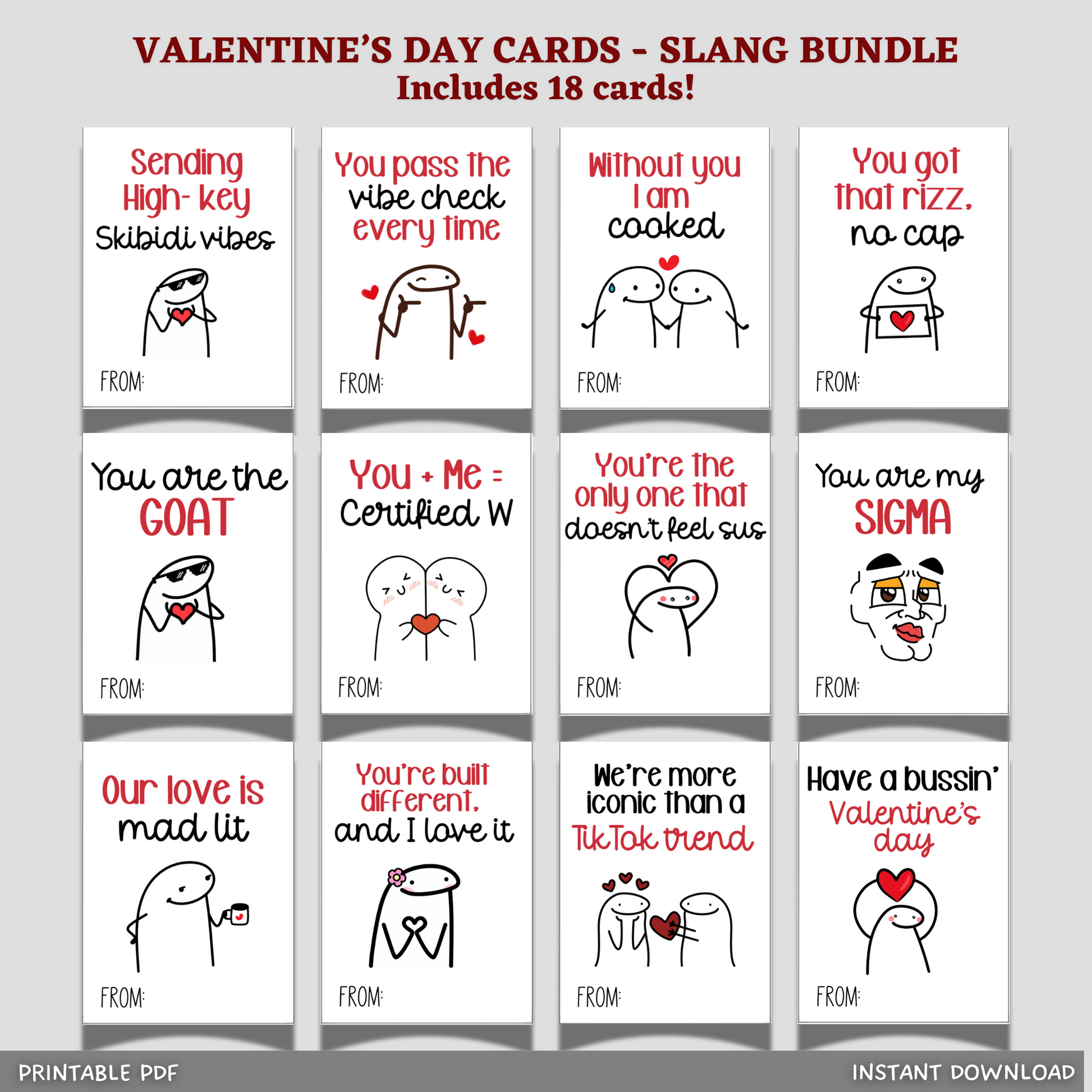 Funny Slang Valentine’s Day Cards | Digital Printable Quirky Humor Meme Valentines for Kids, Teens & Tweens, Gen Z Alpha 💕