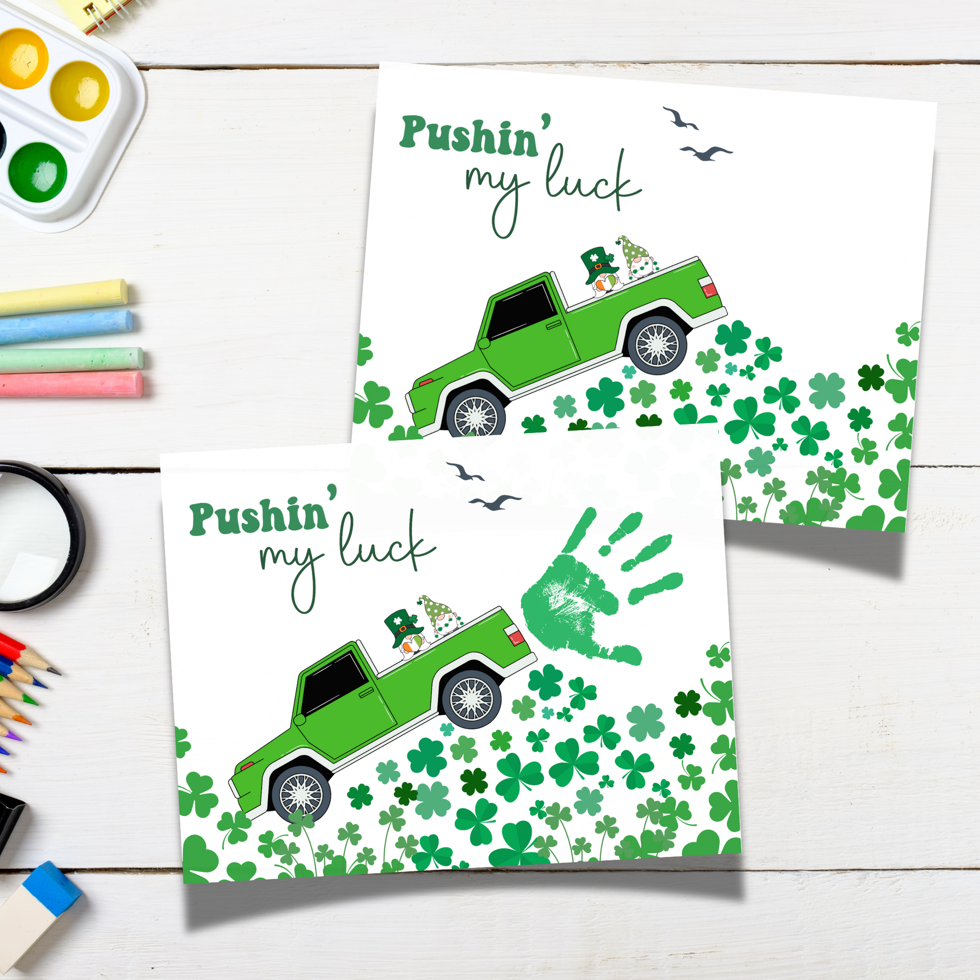 Celebrate St. Patrick’s Day with this precious handprint/ footprint craft! ✋👣 Create a fun, easy, and sentimental craft that captures your little one’s handprints or footprints! This cute art printable features the humorous phrase "pushin' my luck", making it the perfect March activity for toddlers, preschoolers, and young kids at home, daycare, or school. Whether you’re a teacher, parent, or caregiver, this St. Paddy’s Day printable is a wonderful way to create lasting memories.