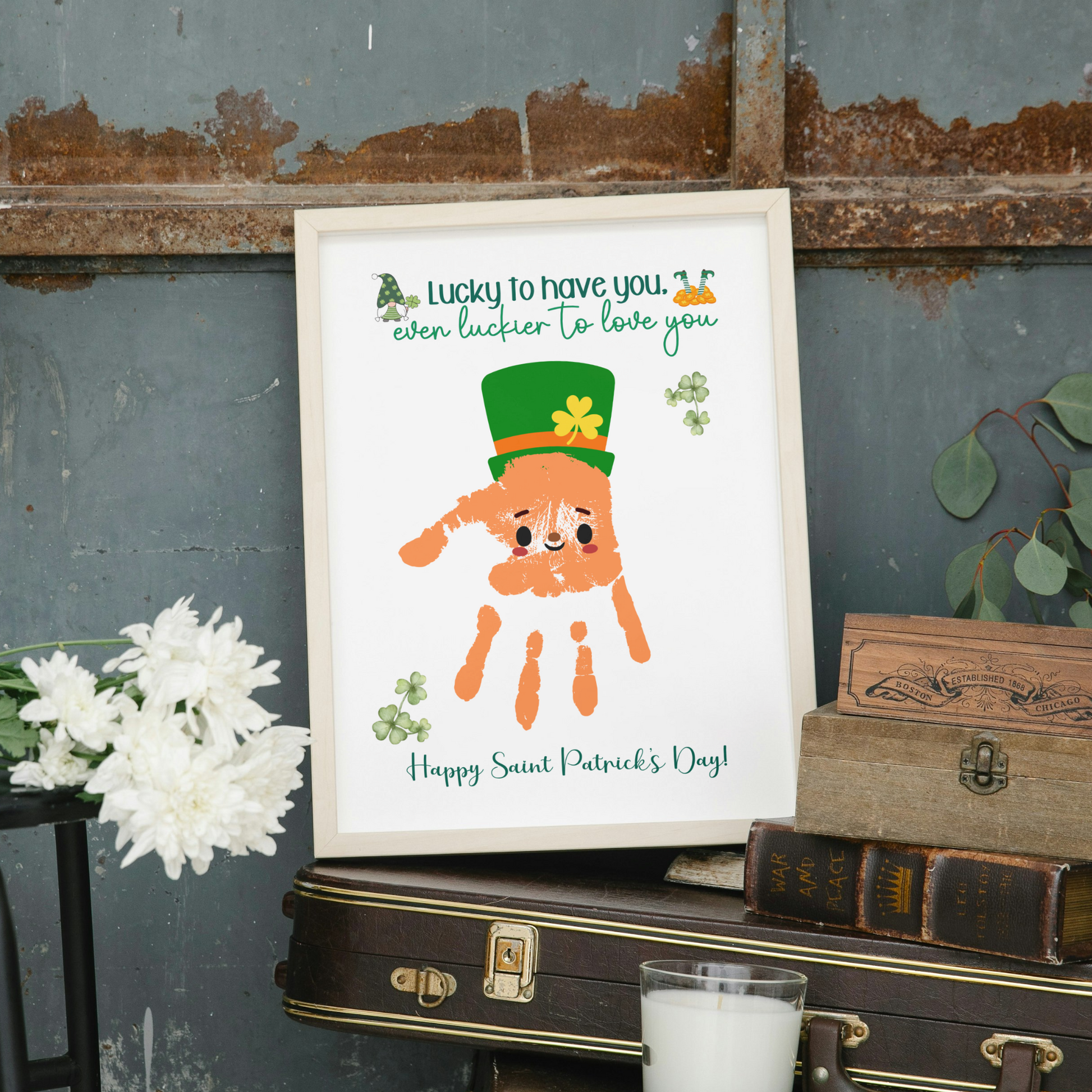 St Patricks Day Handprint Footprint Crafts Printable, DIY March Gift Art for Kids