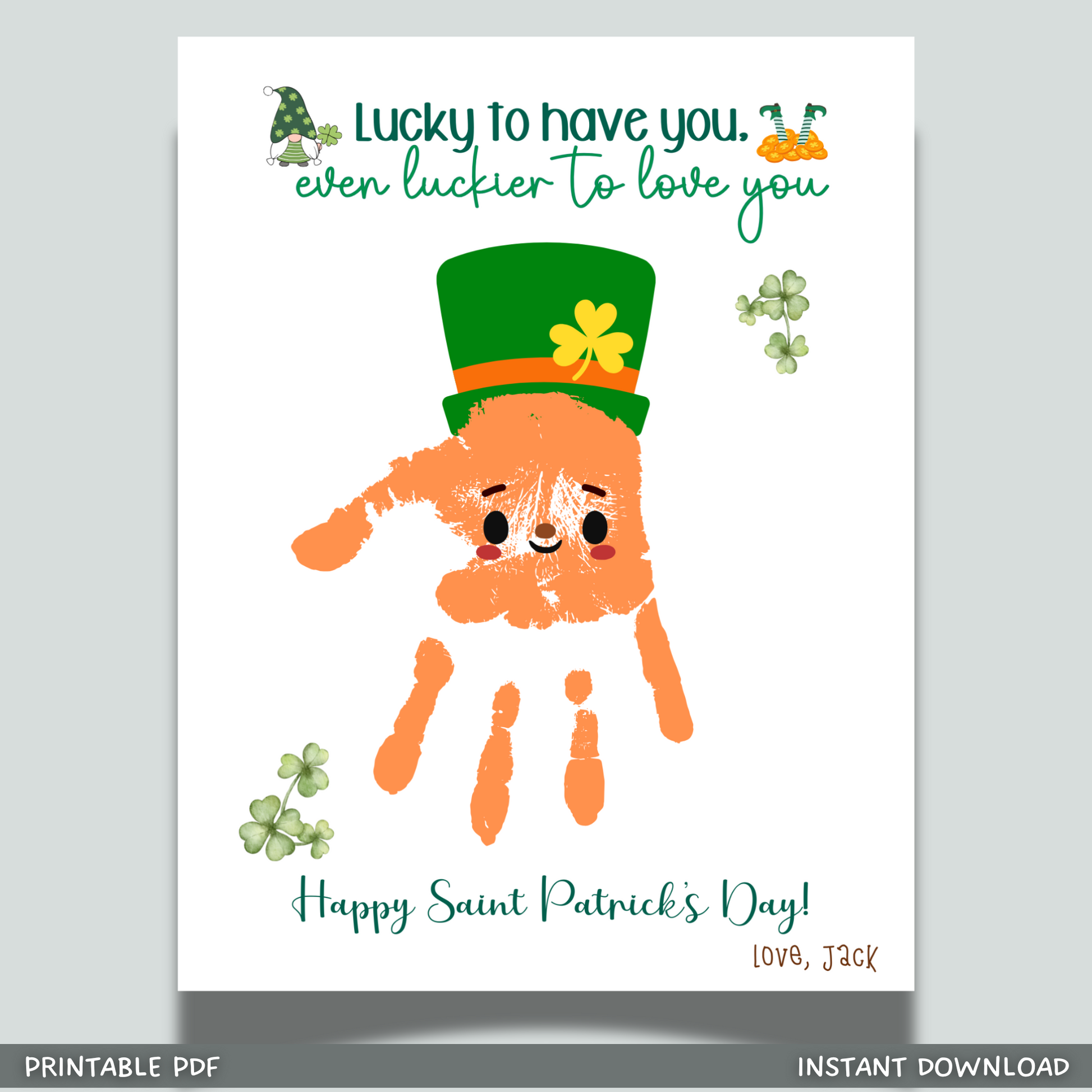 St Patricks Day Leprechaun Handprint Craft Printable, DIY Art Activity for Kids