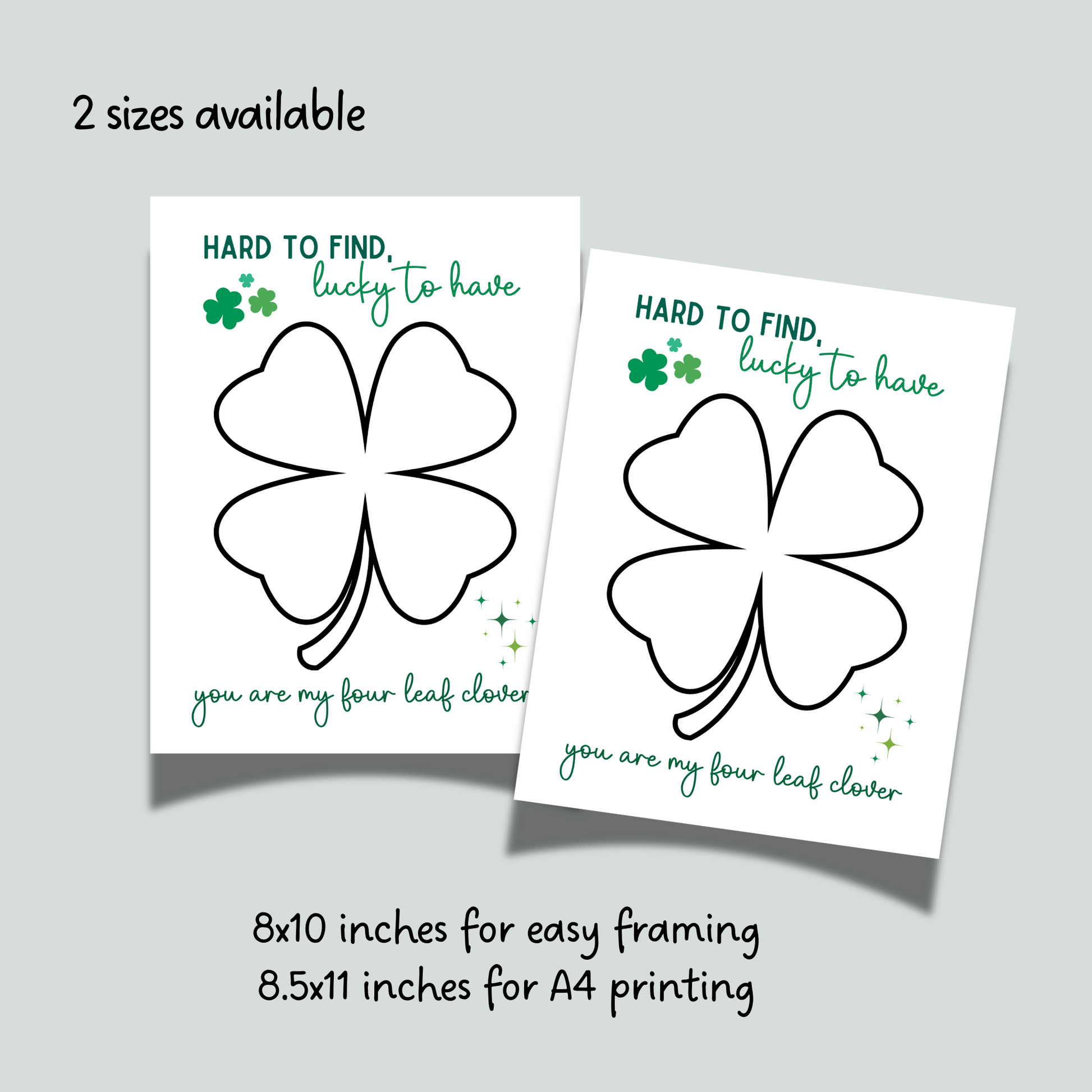 This easy St. Patrick’s Day craft is perfect for daycares, preschools, homeschool activities, classrooms, church groups, and family fun at home. The design features the heartfelt phrase: “Hard to find, lucky to have—You are my four-leaf clover!” making it a sweet keepsake to cherish for years.