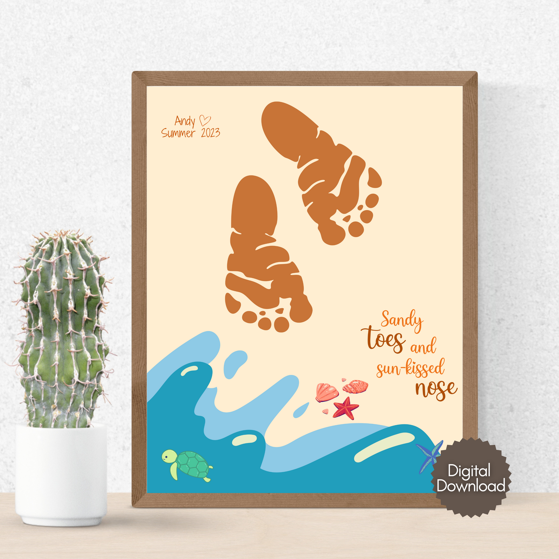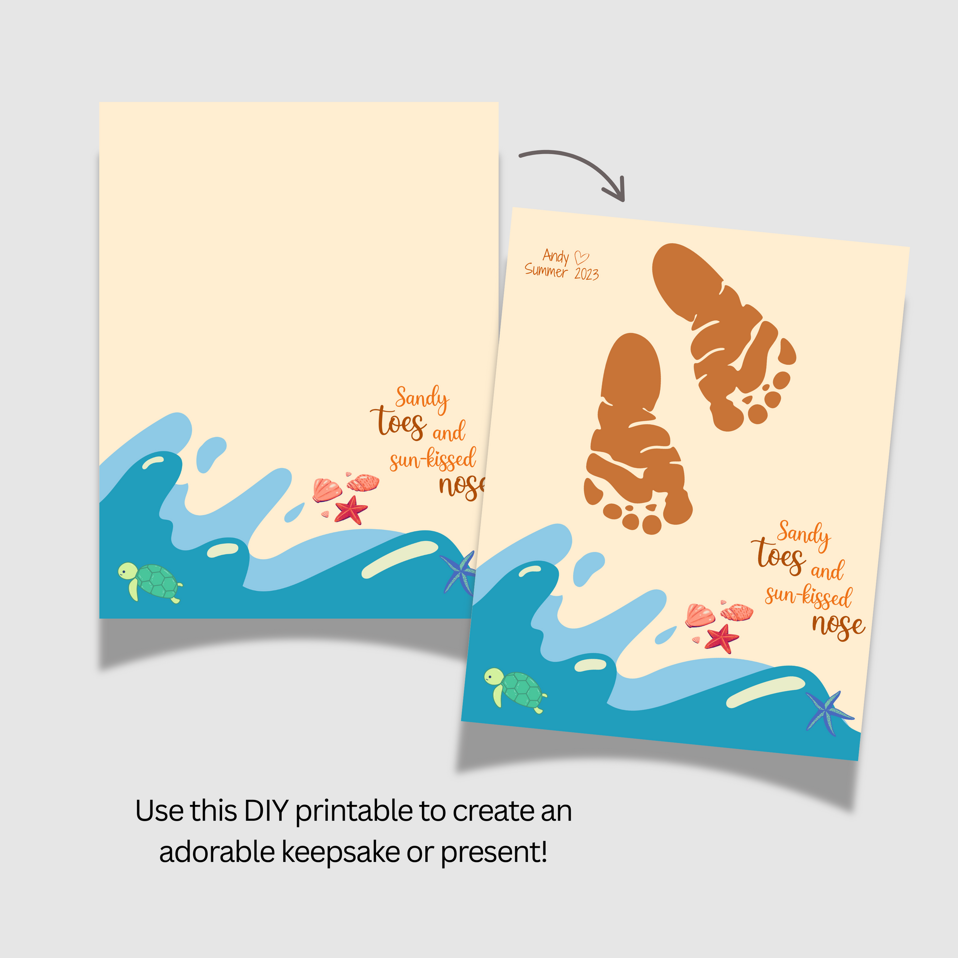 Celebrate the carefree days of summer with this adorable beach-themed instant download footprint craft! Just print, paint, and press your childâs foot to create a seaside memory that captures all the sandy giggles and sunny adventures.