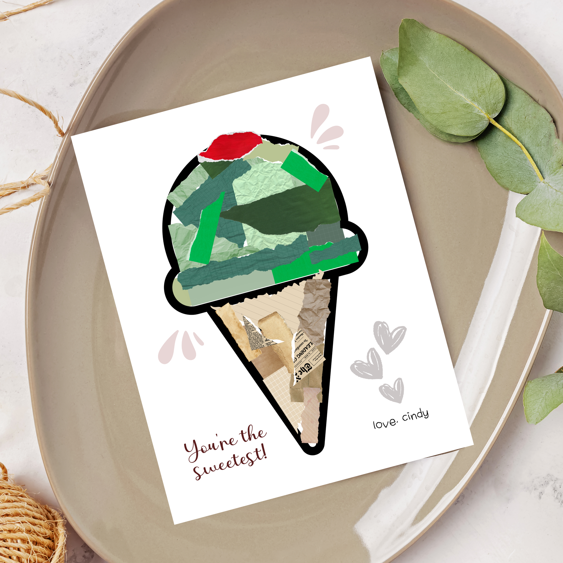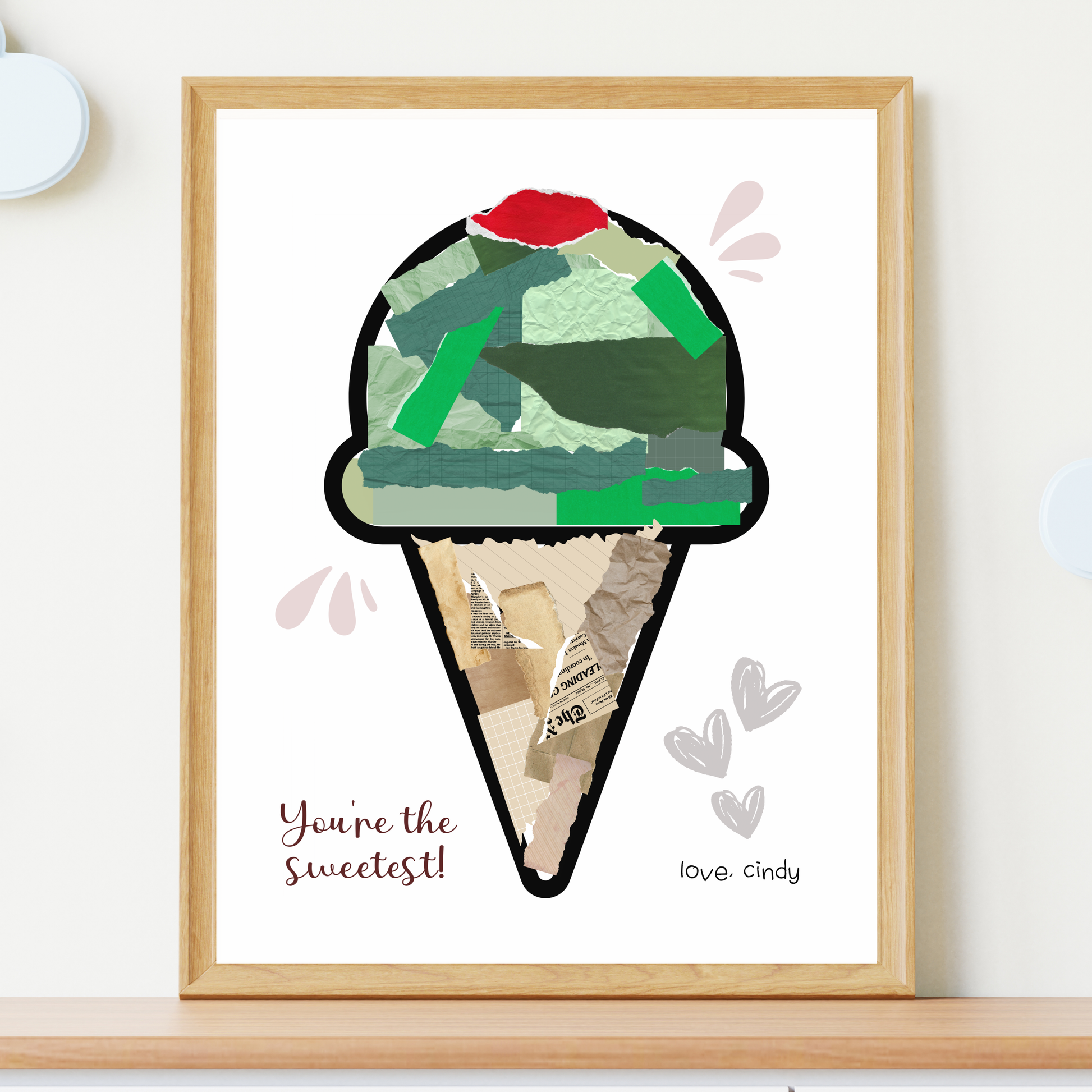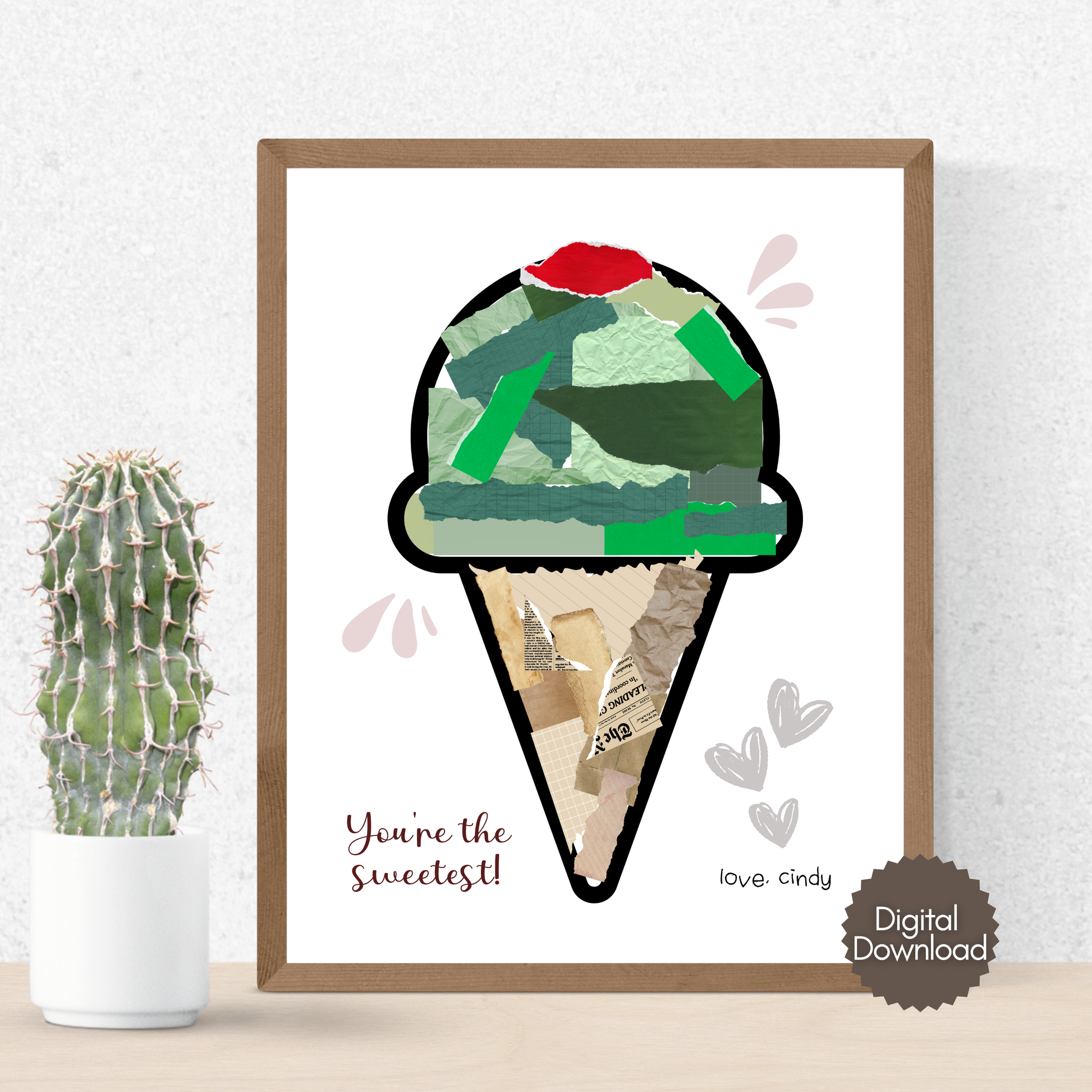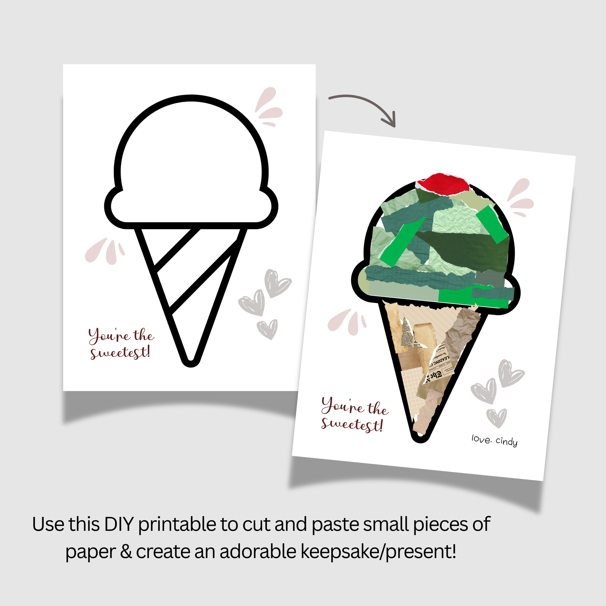 Summer Torn Paper Craft Printable for Kids, DIY Cut & Paste Activity Ice Cream Cone Template Fine Motor Skill Builder🍦