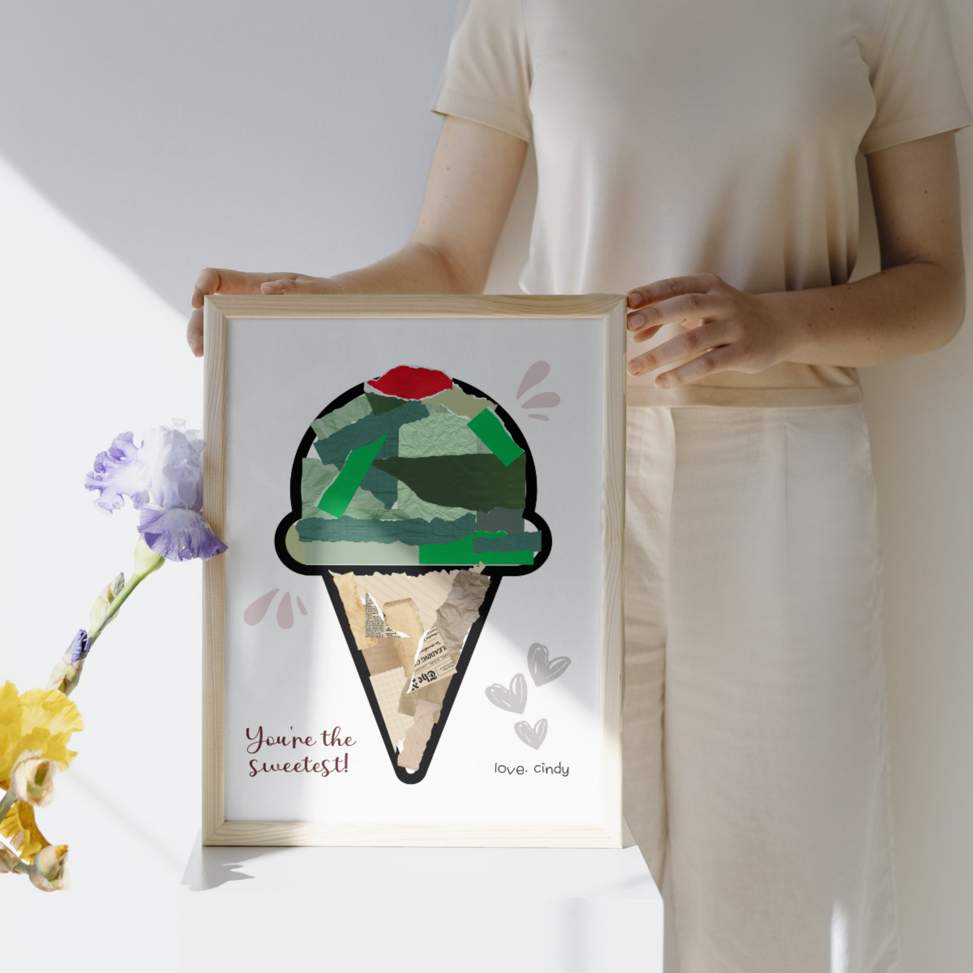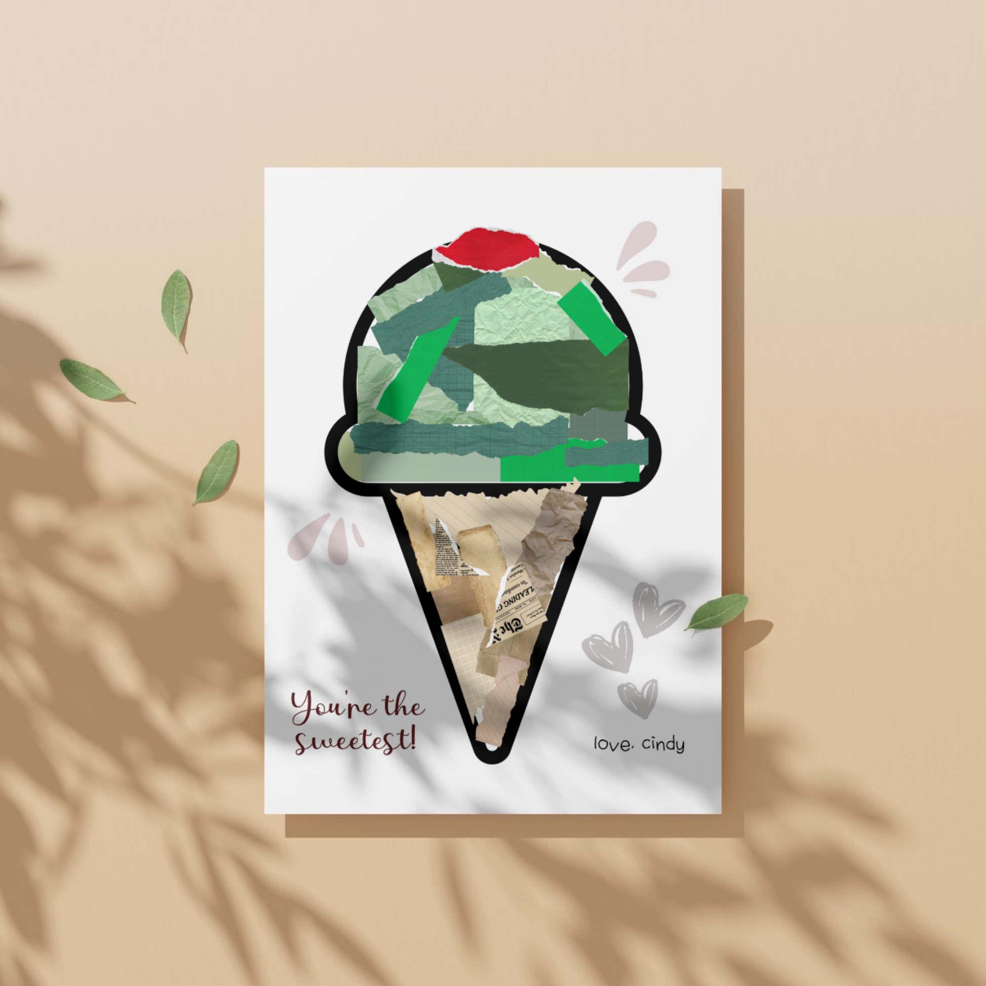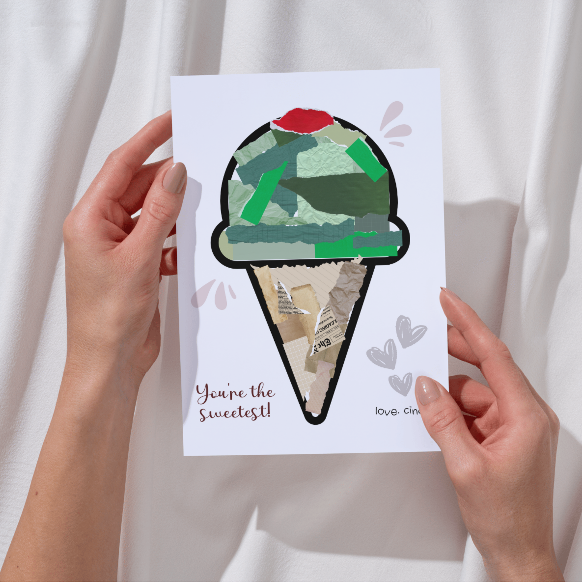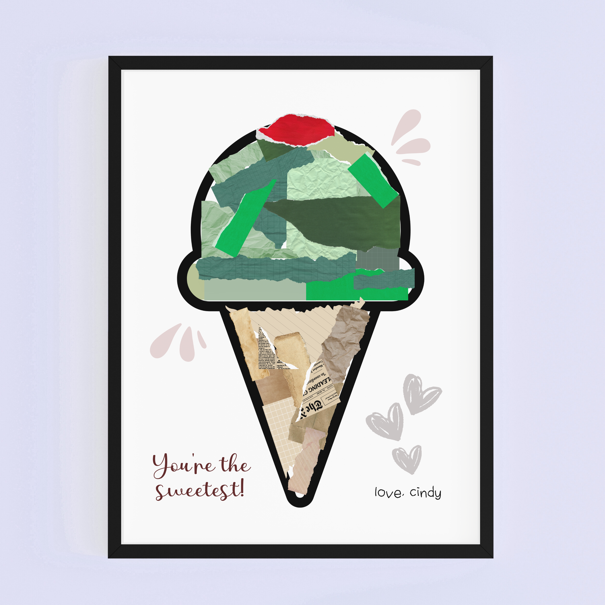 Summer Torn Paper Craft Printable for Kids, DIY Cut & Paste Activity Ice Cream Cone Template Fine Motor Skill Builder🍦