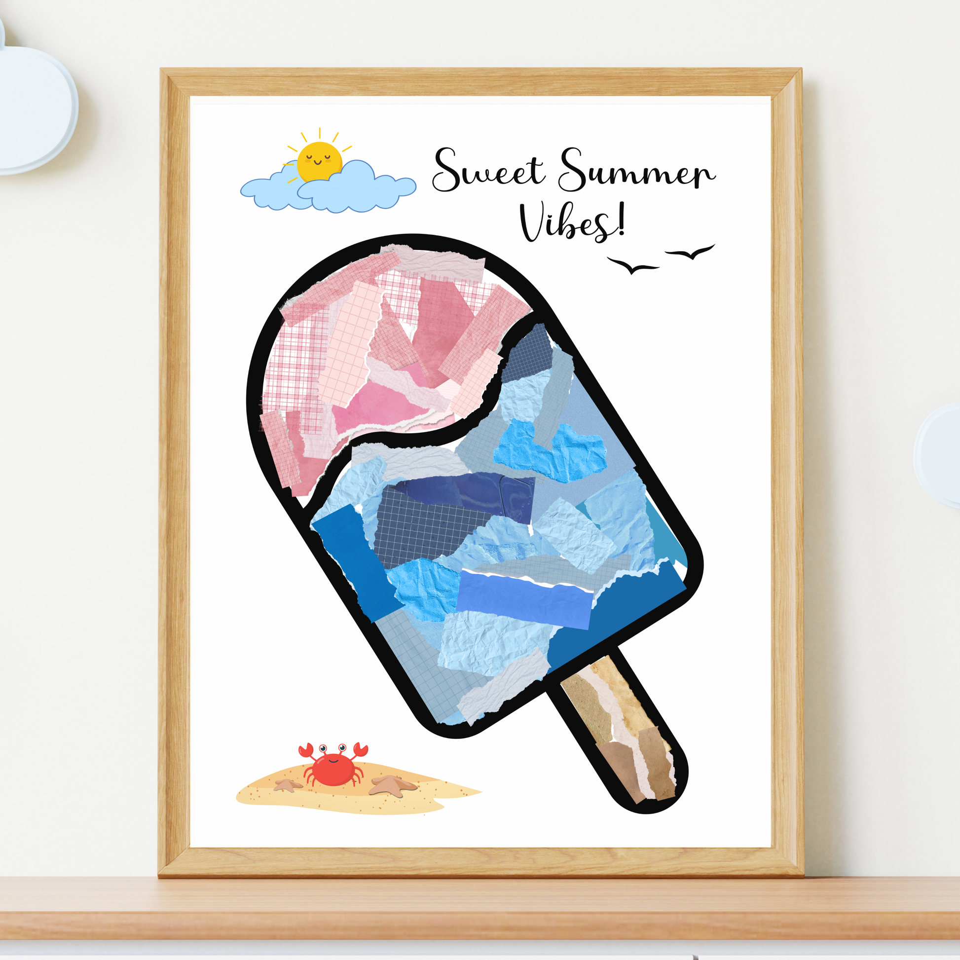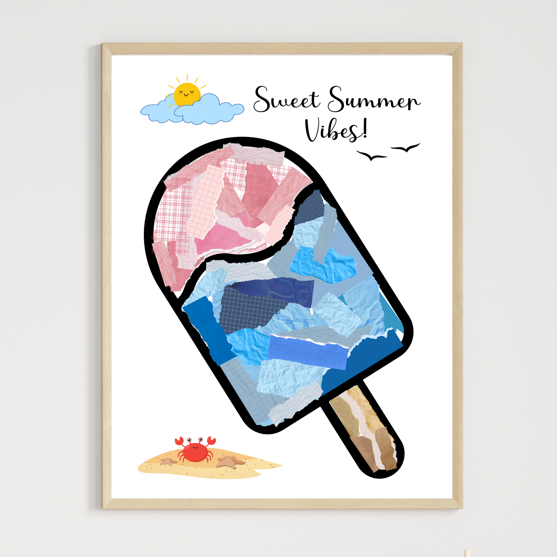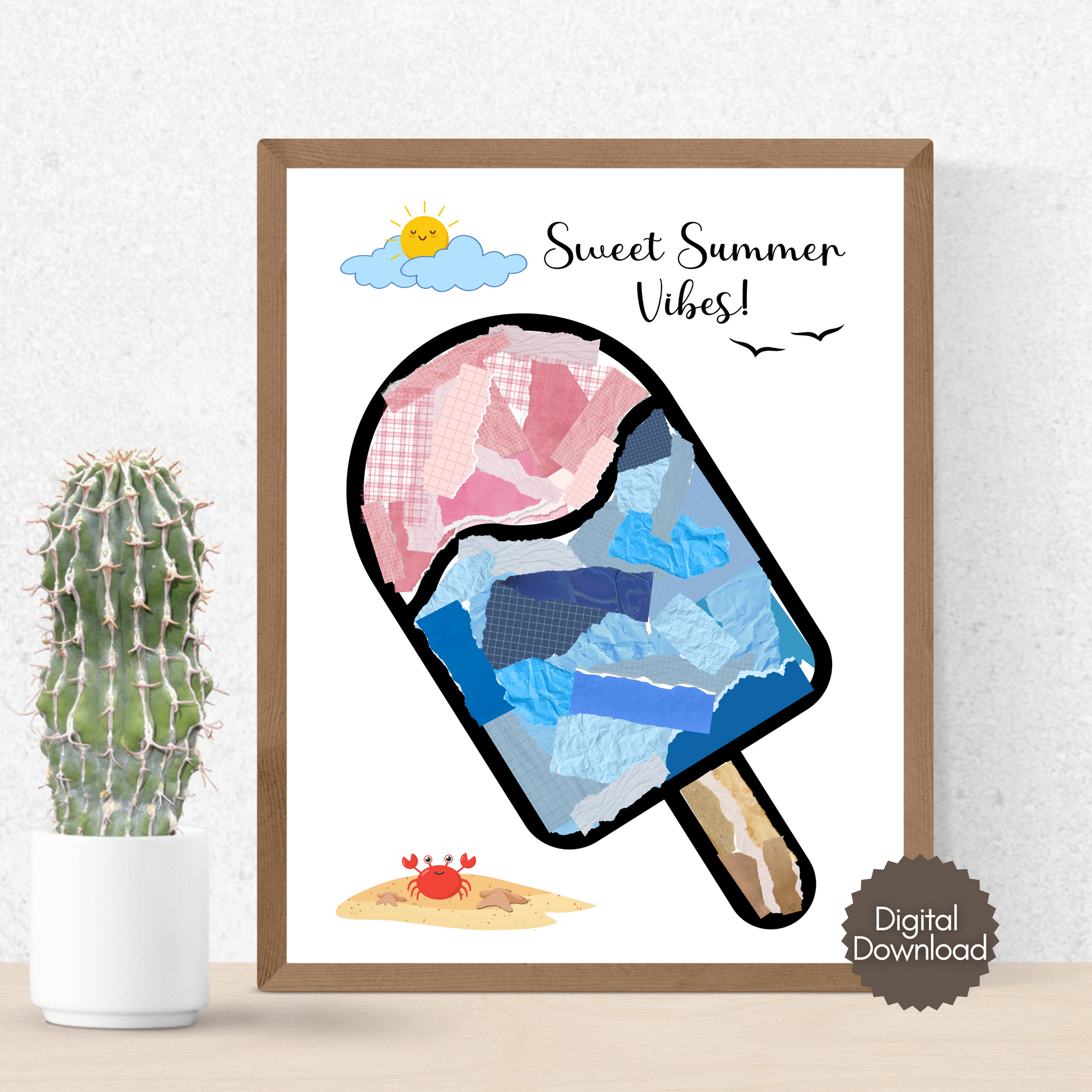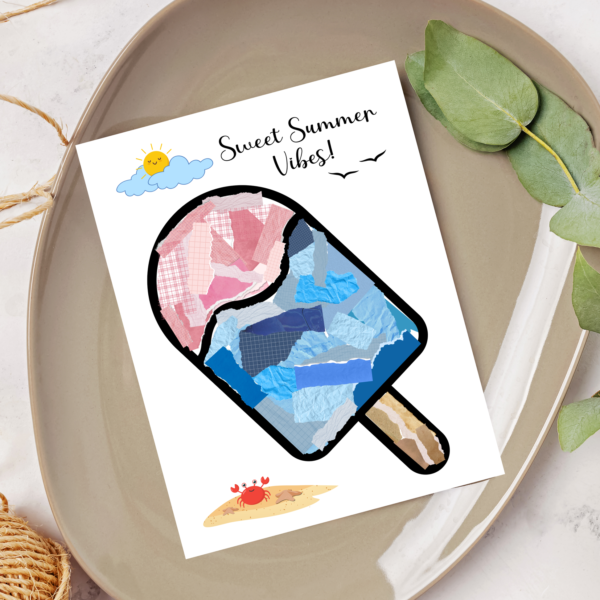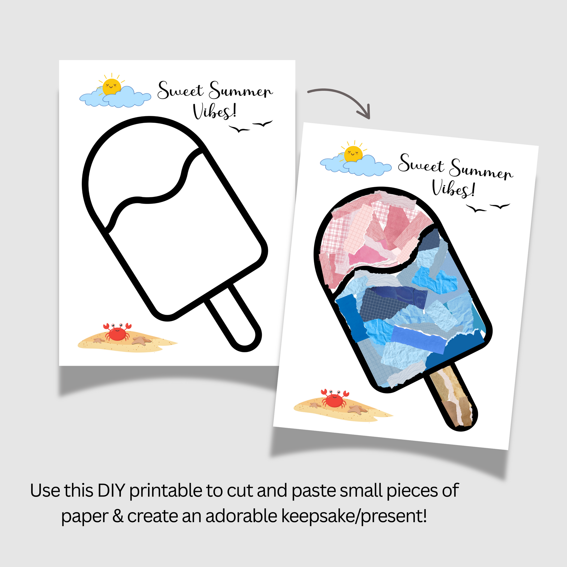 Summer Themed Torn Paper Crafts Printable, DIY Ice Cream Art for Kids