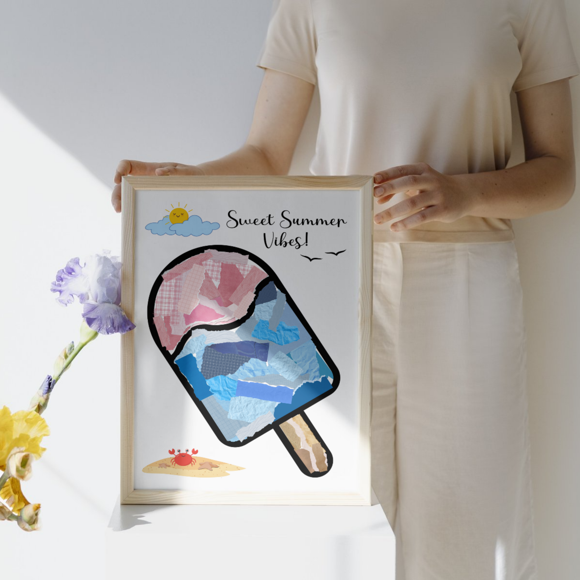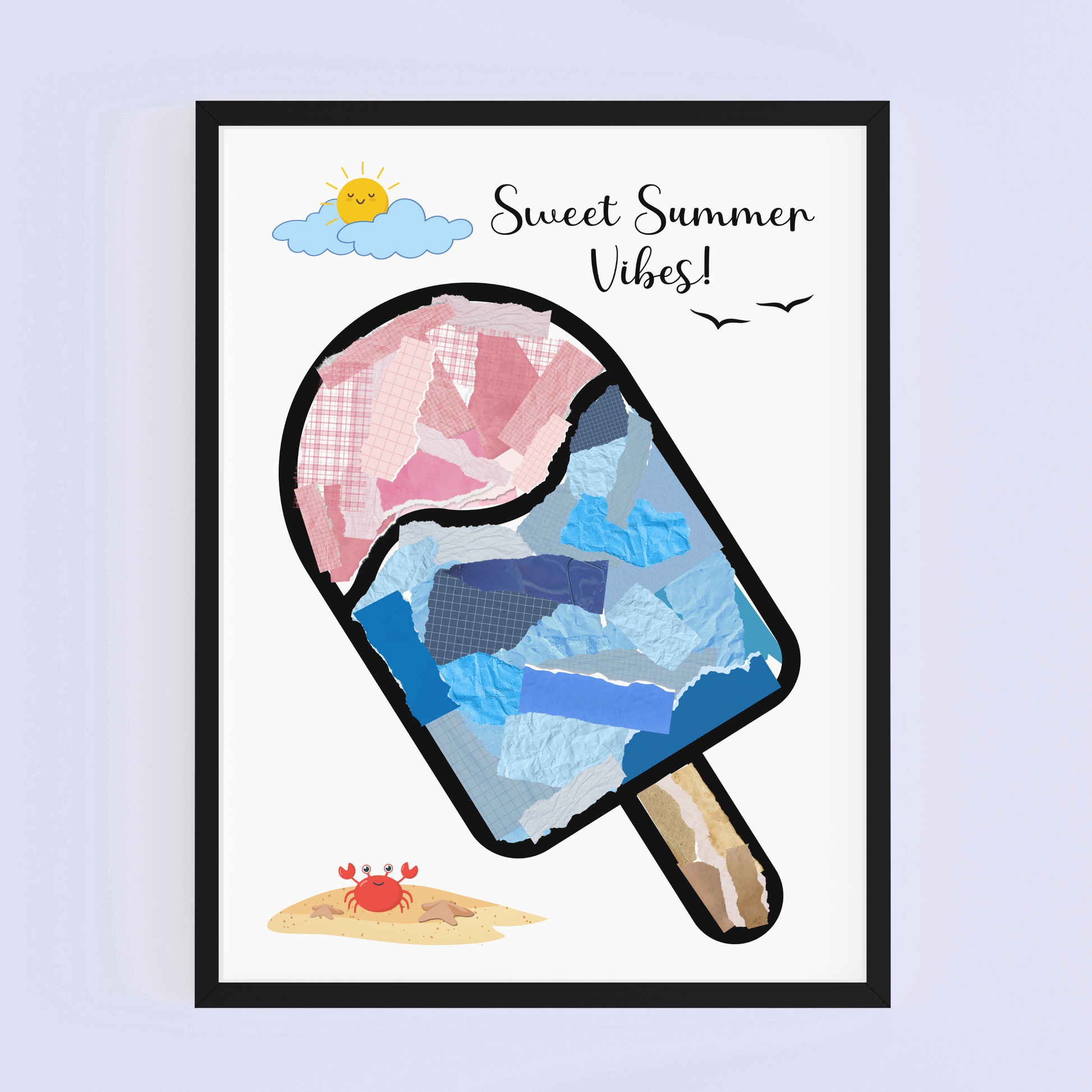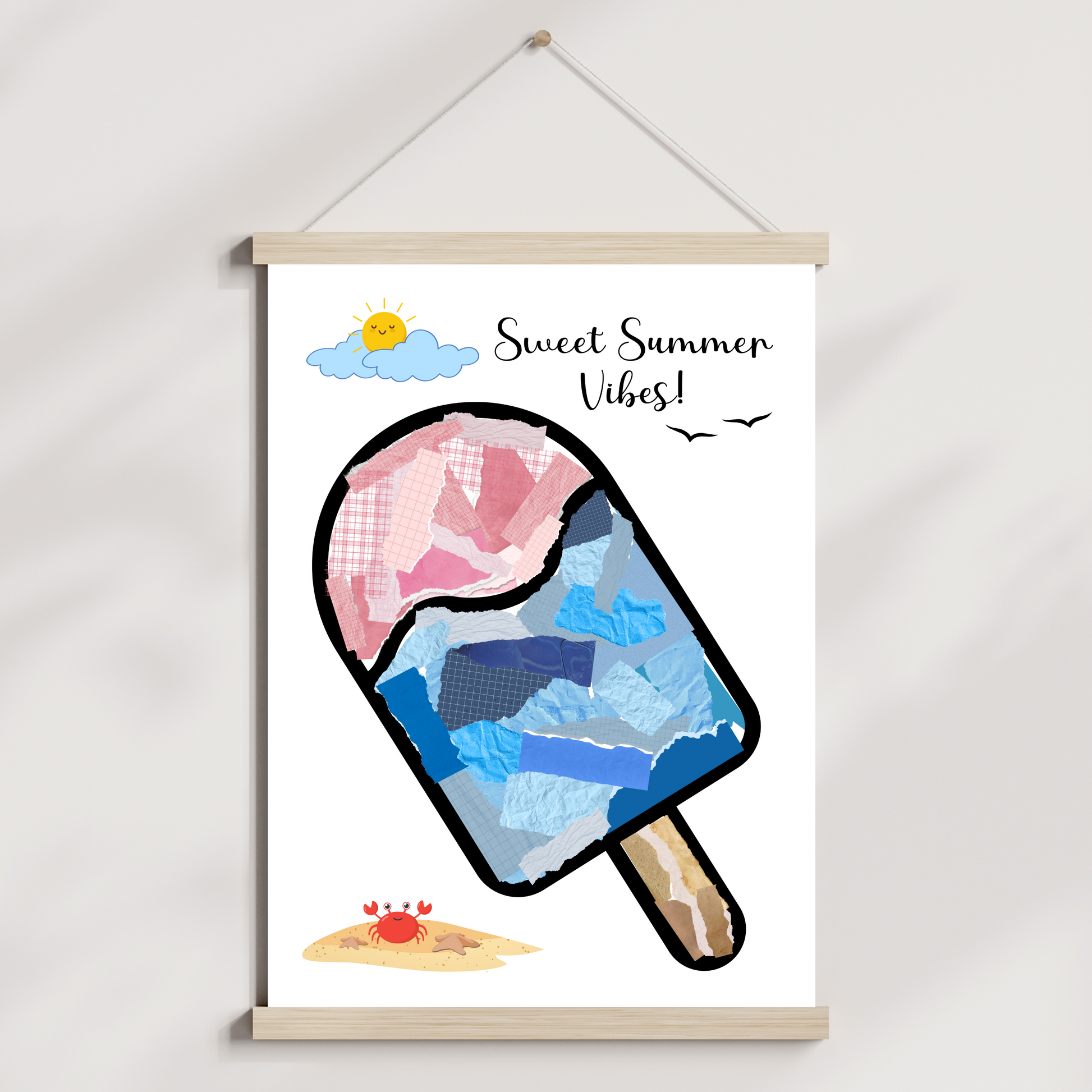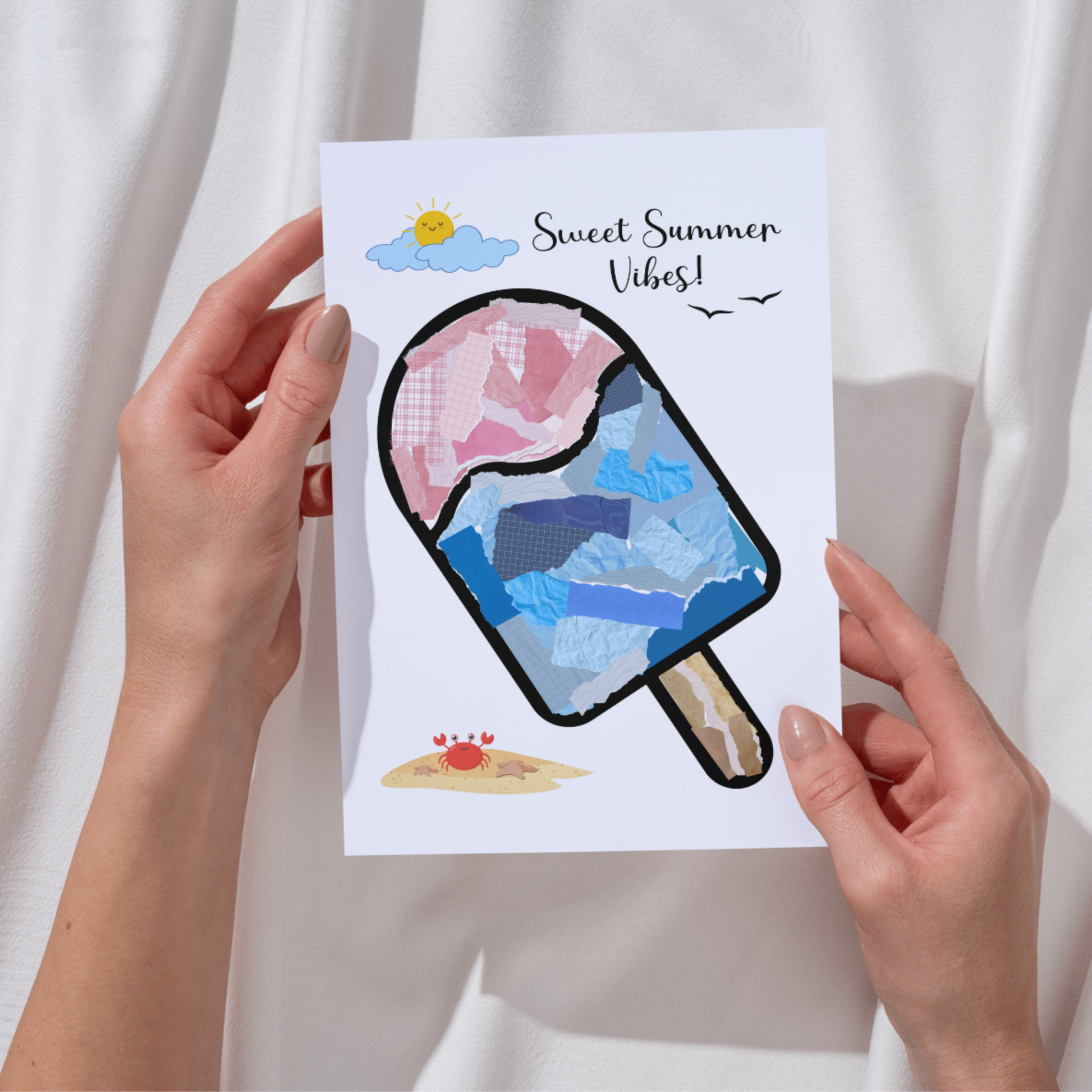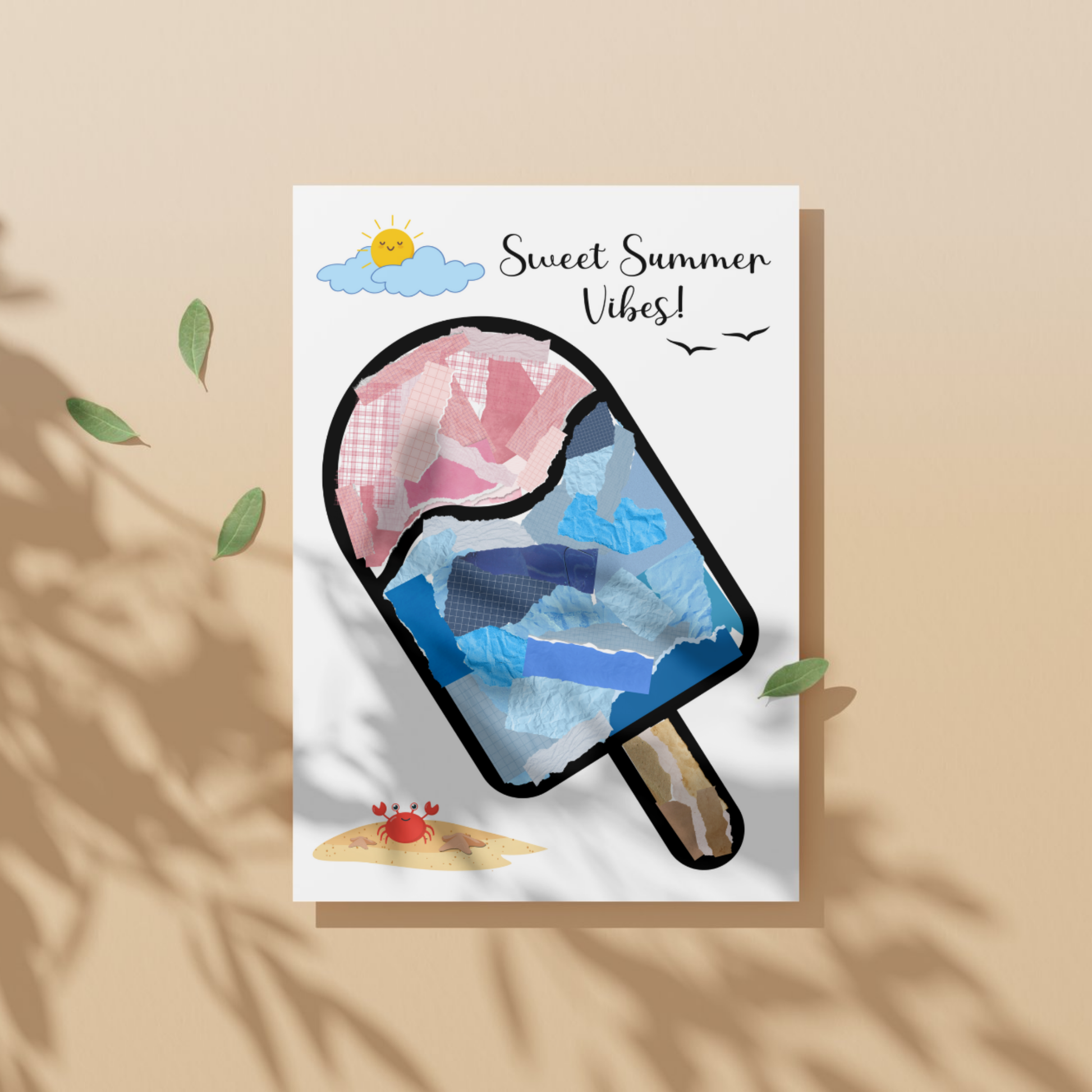 Summer Themed Torn Paper Crafts Printable, DIY Ice Cream Art for Kids